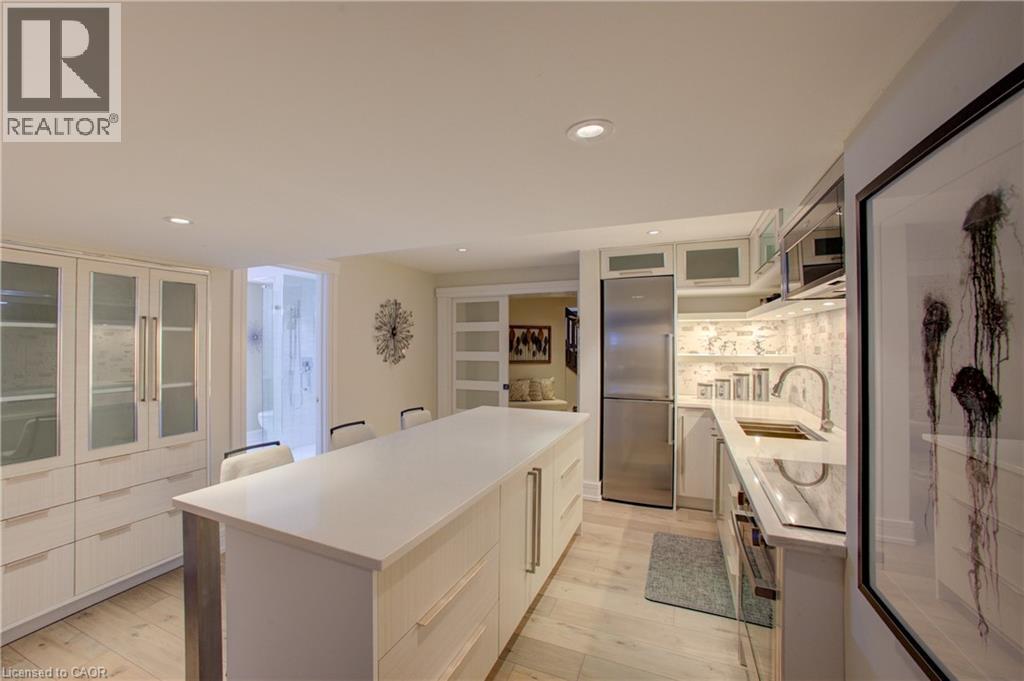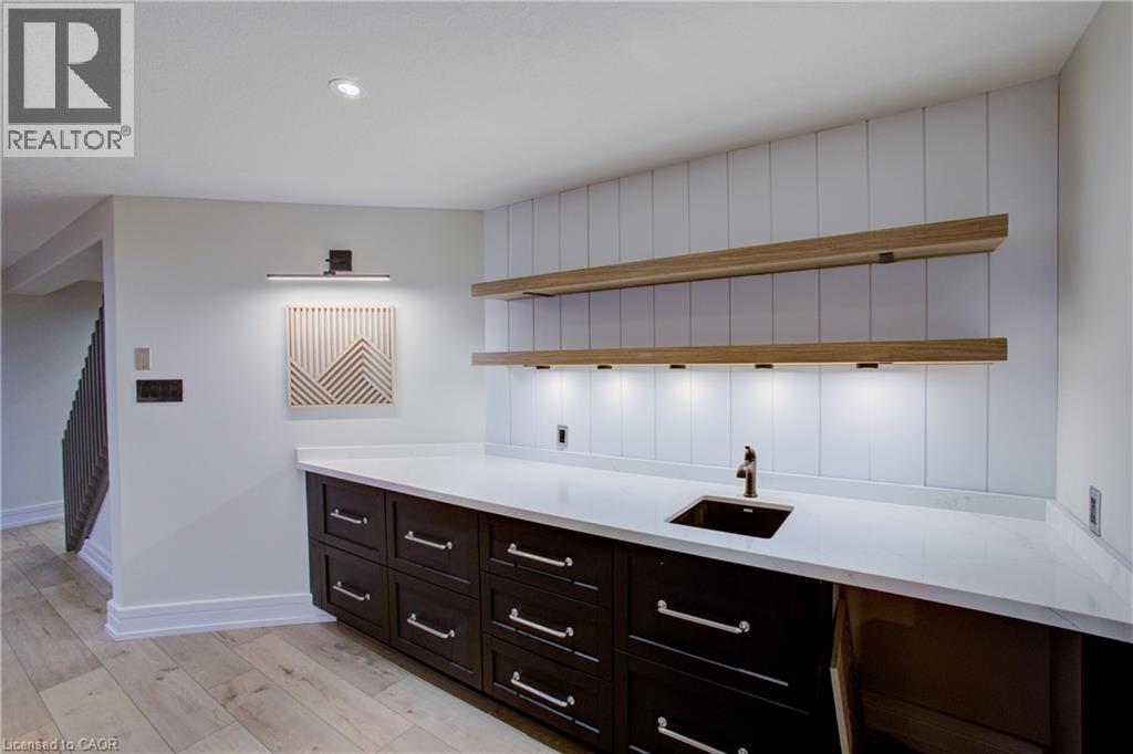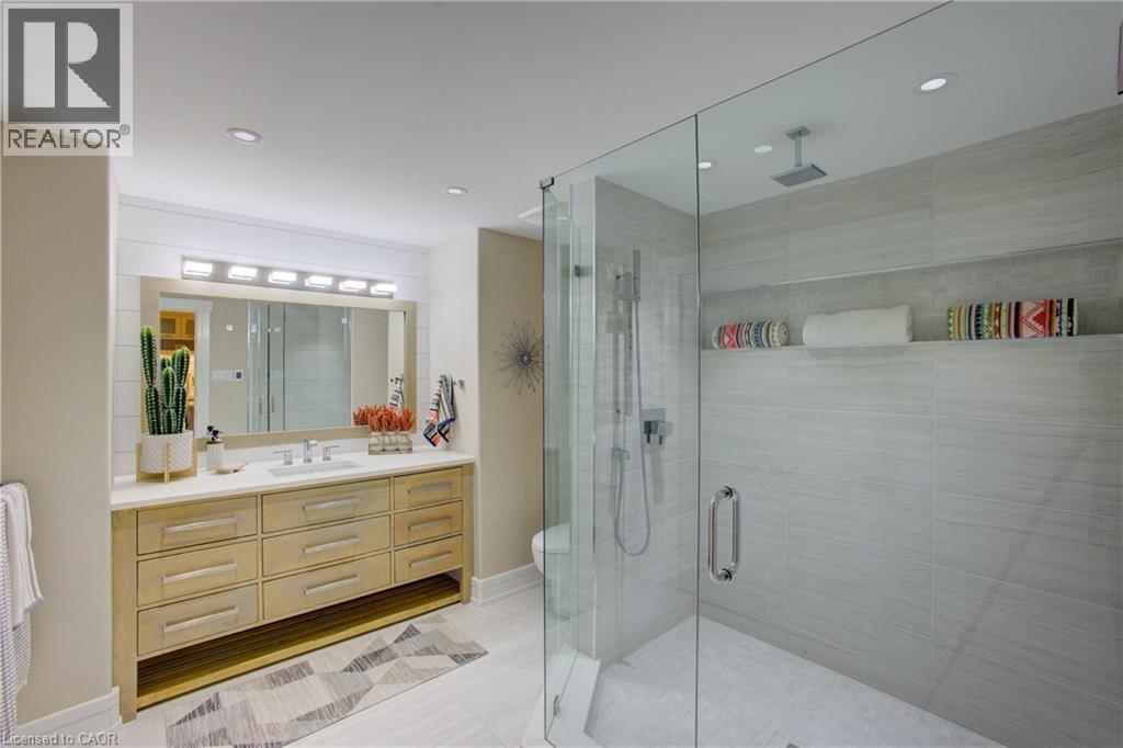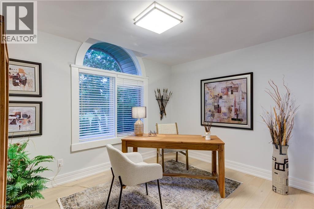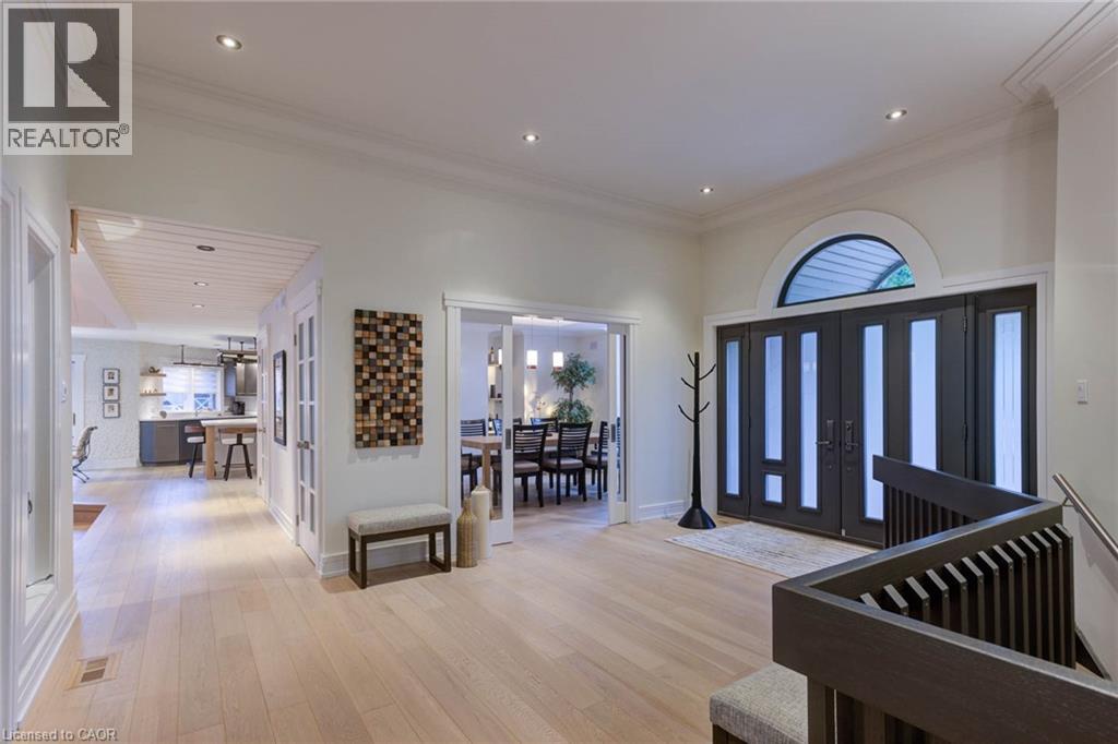 Luxurious Multi-Generational Living in Heidelberg. This custom-built bungalow blends West Coast Boho flair with rustic modern elegance, offering over 6,435 sq. ft. of extraordinary living space. Tucked away on a desirable private street just minutes from St. Jacobs Farmers’ Market and North Waterloo, this expansive home is designed for both lifestyle and comfort. The oversized double-car garage provides direct access to a fully finished in-law suite—ideal for multi-generational living or hosting guests. A grand foyer opens to an airy layout with a formal dining area and a sunken great room featuring vaulted ceilings, custom beams, and a wood-burning fireplace, all overlooking the chef-inspired kitchen with a spacious island. A tucked-away laundry room and powder room add convenience. The main level offers three bedrooms/home office options, including a primary retreat with its own fireplace and a stunning atrium-inspired ensuite filled with natural light. Three full bathrooms complete this floor. The walkout lower level has been newly updated with lighter paint, a wet bar, desk area, and modern finishes, enhancing its potential as a private suite. It includes an additional bedroom, full bathroom, and versatile living space. Outdoors, the beautifully landscaped yard is a true sanctuary with rock gardens, perennials, fire pit, waterfall, gazebo, and hot tub. With three separate patios, a shed with gas hookup, and a yard with pool potential, the possibilities for entertaining and recreation are endless. Gas lines for a BBQ or heater are already in place. A home of unparalleled character and function—this one is a must-see. Book your private showing today! (id:64974)