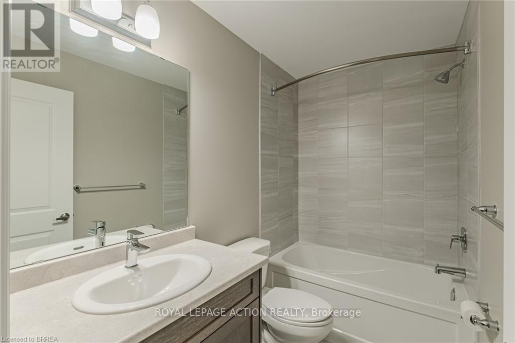 Check out this Move-In Ready & freshly painted End-Unit Townhouse in West Brantford! Step inside the foyer to an inviting open-concept main floor, flooded with natural light from large windows and enhanced by soaring 9-foot ceilings and elegant LVP flooring flows seamlessly through the main level. The modern kitchen features abundant cabinetry, a central island, stainless steel appliances, and quartz countertops. Adjacent to the kitchen is a cozy dinette with sliding doors that open to the backyard-perfect for indoor-outdoor living. The main floor also offers a spacious living room and a convenient 2-piece powder room. Upstairs, you'll find three generously sized bedrooms. The bright primary suite includes a walk-in closet and a private ensuite. Two additional bedrooms share a large 4-piece bathroom, and the upper-level laundry adds everyday convenience. The unfinished basement offers a rough-in bath and provides a blank canvas for extra living space, ideal for a home office, gym, or rec room. Whether you're an investor or a first-time homebuyer, this home is ready for immediate occupancy if needed. Close to schools, plazas, walking trails, and parks, this home is in the perfect family-friendly neighbourhood. (id:64974)