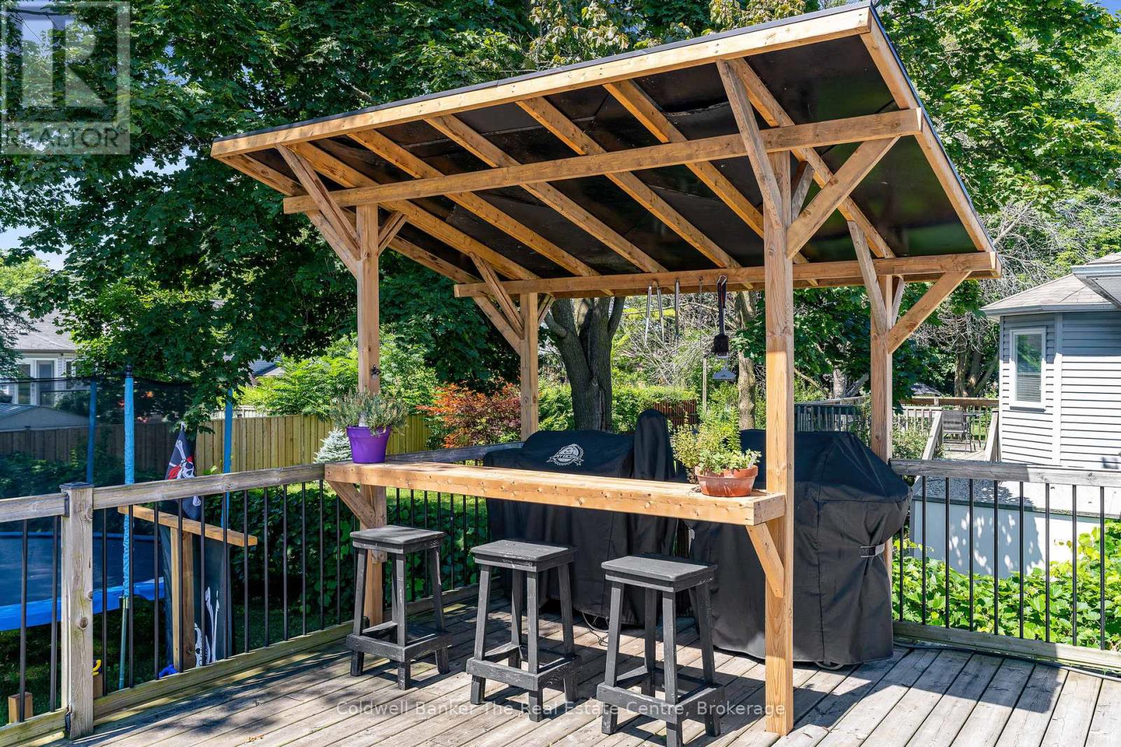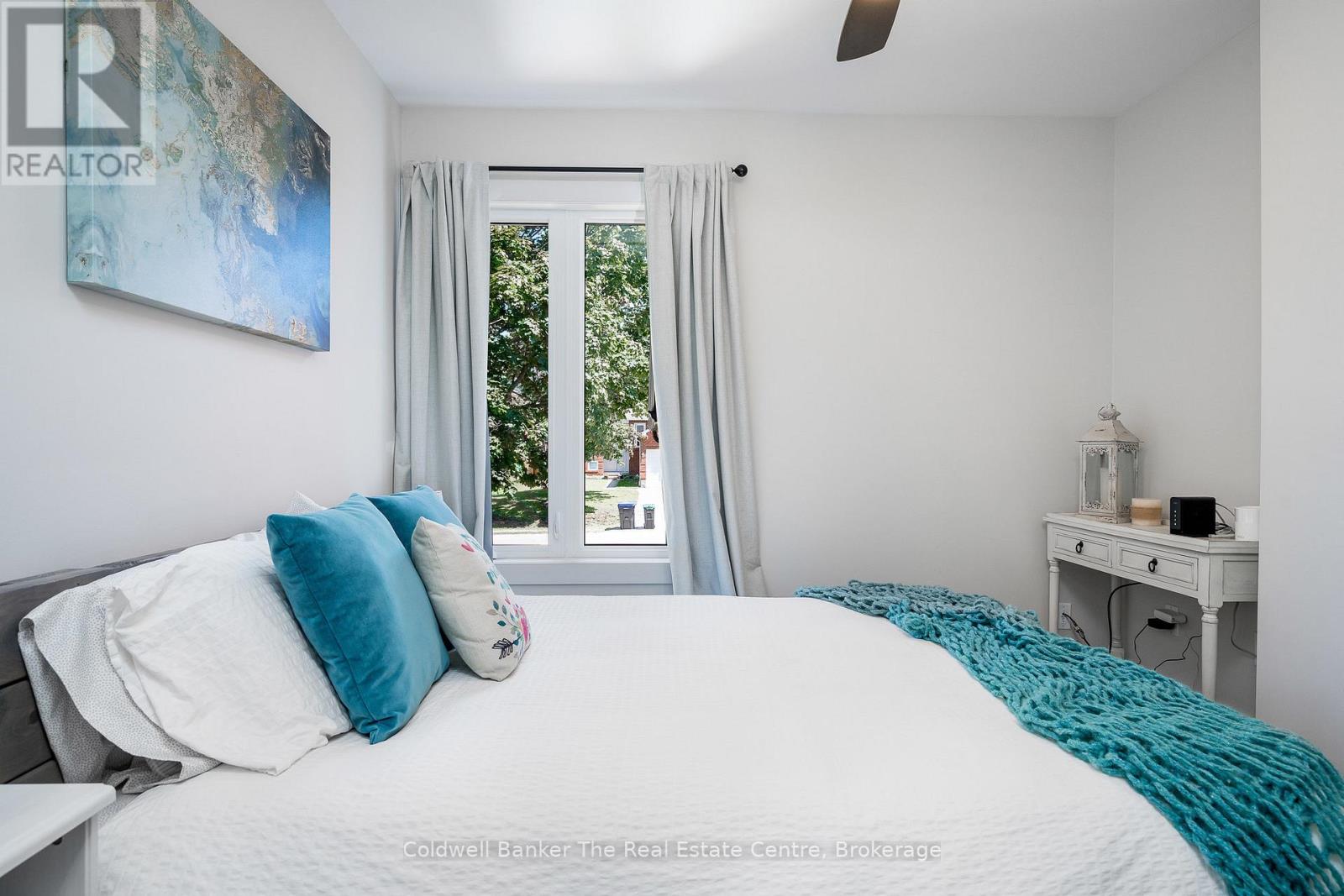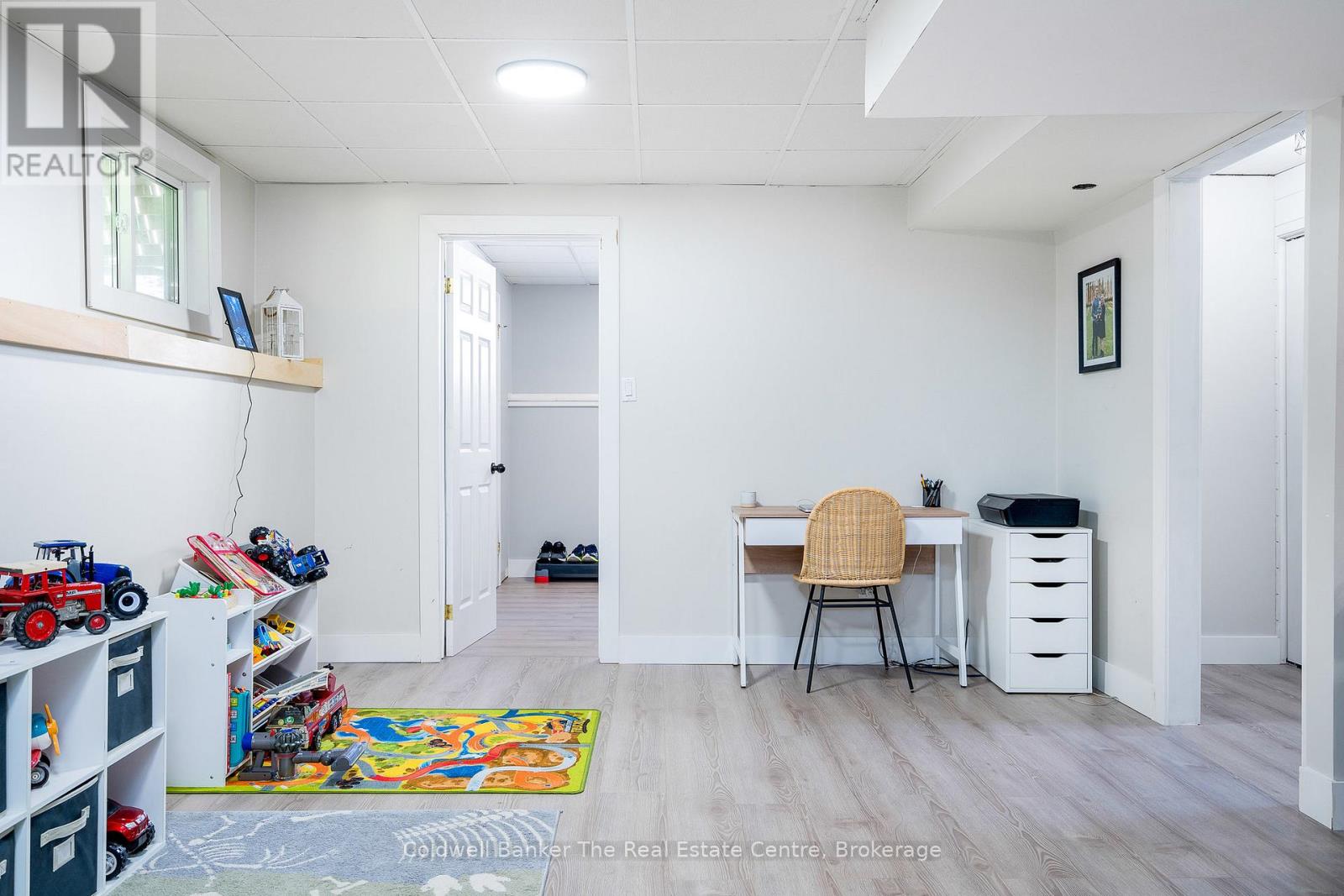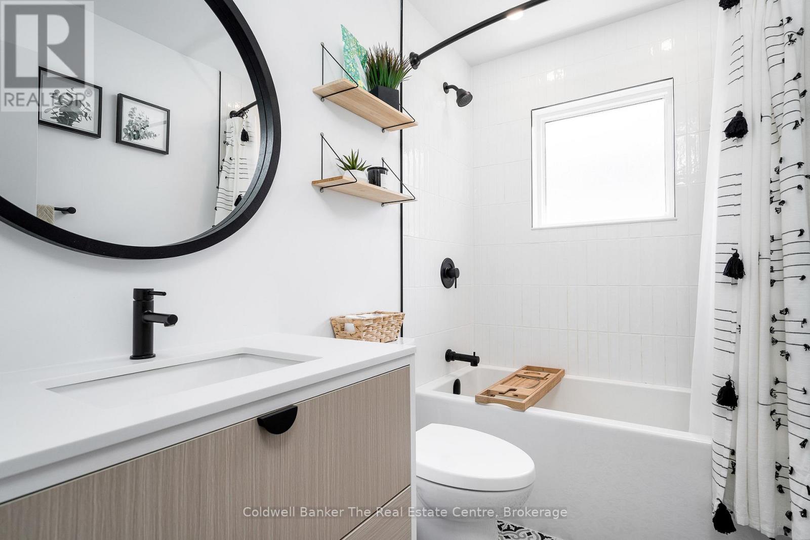 Welcome to this fully renovated raised bungalow nestled in a mature, family-friendly area of Wasaga Beach. Surrounded by tall, established trees and set in a quiet, convenient location, this home offers the perfect balance of comfort, style, and lifestyle amenities. The property features three well-appointed bedrooms on the main floor and a bright, open-concept layout designed for modern living. The heart of the home is the newly renovated kitchen, showcasing a large quartz island, updated cabinetry, and contemporary finishes-ideal for cooking, gathering, and entertaining. This space flows effortlessly into the main living and dining areas, creating a warm and inviting environment filled with natural light. This home has been thoughtfully updated throughout, including new electrical completed in 2019 and new windows installed in 2021 and 2022, providing improved efficiency and peace of mind. New Garage Door 2019 with R16. New shingled roof 2016, Updated Furnace 2014. The finished basement extends your living space with a cozy fireplace, perfect for relaxing evenings or hosting guests. There's also a generous workout area, providing flexibility for fitness, hobbies, or additional family space. Outside a large backyard deck that's perfect for BBQs and outdoor dining, along with a practical storage shed for tools and seasonal items. Home is located within walking distance to parks, beaches, shops and restaurants, perfect location for families, retirees and investors. (id:64974)