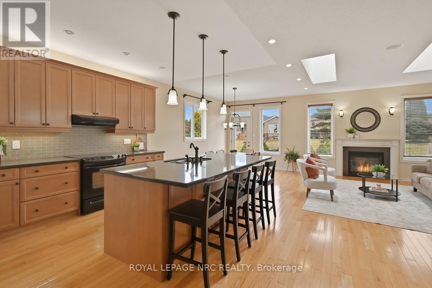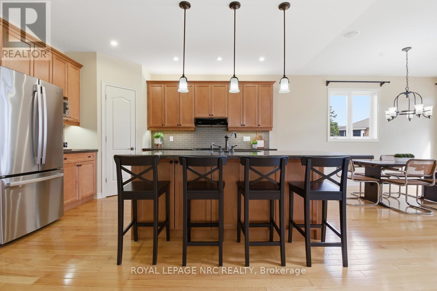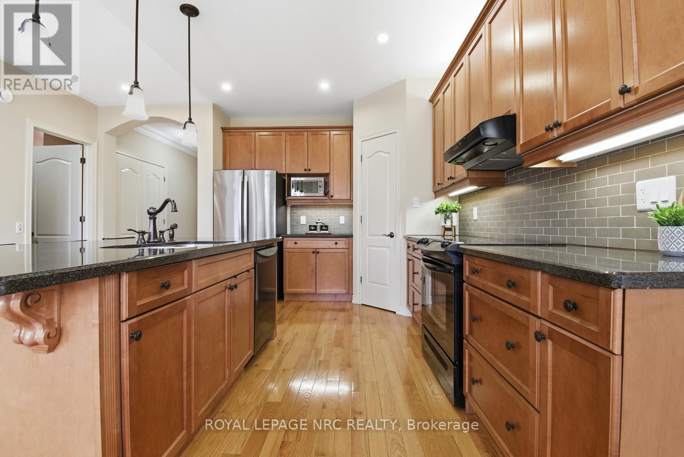Absolutely wonderful! This end unit townhome was the model home! The upgrades and design are evident the second you pull into the double driveway. From the enchanting curb appeal of the stone work and front patio, to the exquisite interior the quality is impressive. This meticulously maintained end unit rests on a pie shaped lot with plenty of yard space to enjoy your summer months here. This great community has a clubhouse with sweet amenities including an indoor saltwater pool, hot tub, sauna, library, large party room with kitchens, pickle ball courts, tennis courts, and work out facilities. The monthly association fee of $300 covers monitored home security, snow removal all the way to your front door, grass cutting and trimming, and access to the community centre. Your first glimpse inside reveals the extra wide hallway and large foyer. The terrific vaulted ceilings, open concept and wide hallways show off this spacious home. You'll feel like you are in a detached home with the ease of a townhome. The end unit, of course provides loads of natural light throughout. Two full bathrooms on the main are great for guests. The front bedroom could also be a main floor office or dedicated dining room. Smart hardwoods throughout the main floor for easy cleaning and freshness. The spacious kitchen/great room is an excellent place for entertaining. Appliances included. If more space is what you need for all your hobbies, this lower level with its high ceilings is just what you dreamt about. A rec room with its own gas fireplace and two more bedrooms are a great place for guests. An open bonus office space will keep all your work are out of sight, with yet loads more space in the utility room as well as the furnace room! You won't feel like you are downsizing here, rather, you can simplify, lock and go, and still have the space you had in your detached home, with the perks of this great community and clubhouse. (id:64974)