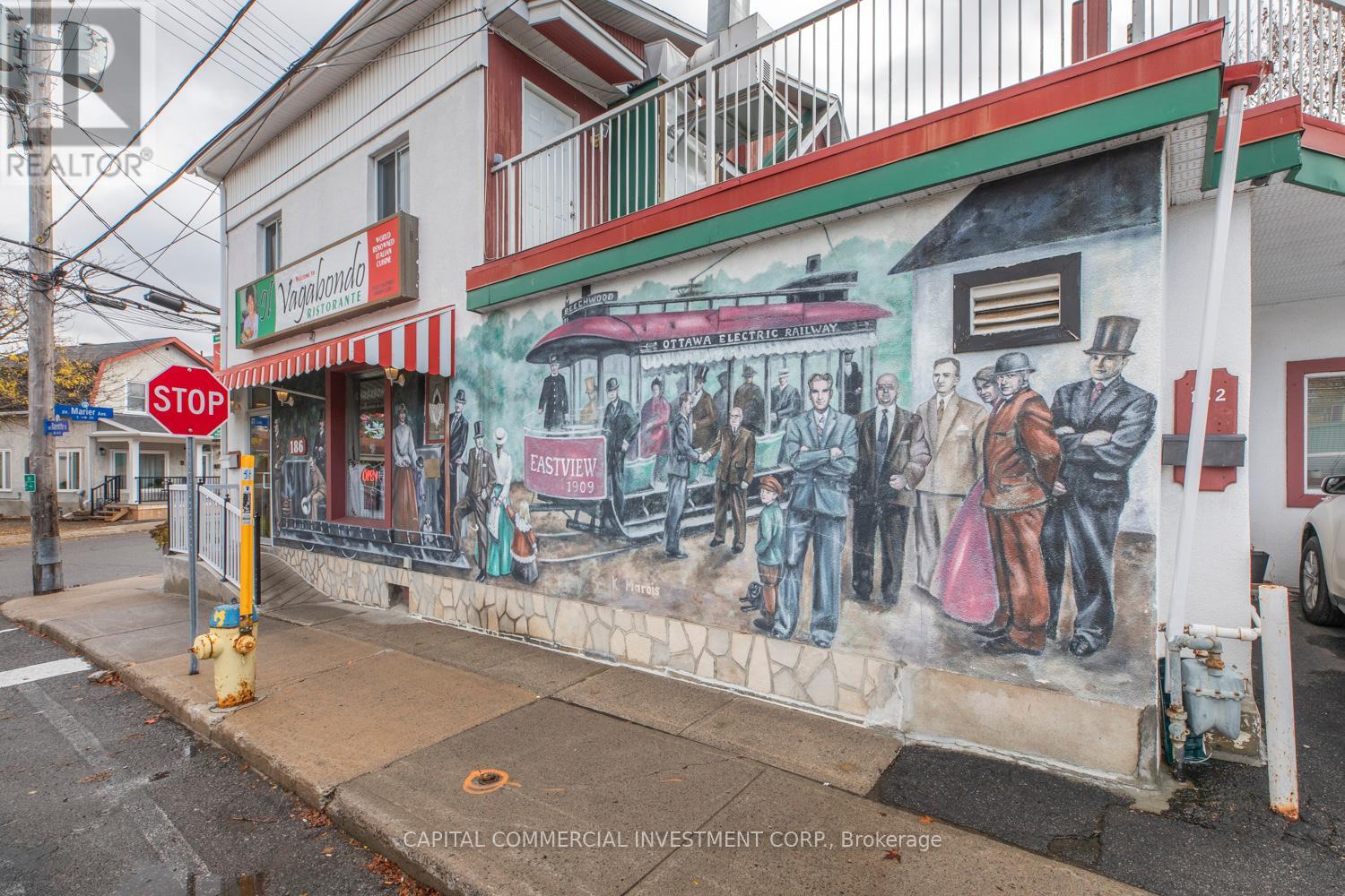 Landmark mixed-use building (restaurant and apartments) for sale in Beechwood Village! Perfect opportunity for a restaurant/business owner to own and occupy their place of business while living in or collecting rental income from two apartments (1 bedroom & 1 bedroom+den) on the second floor. Servicing Ottawa's Rockcliffe Park, Manor Park, Lindenlea, New Edinburgh, and Vanier neighborhoods and steps from hundreds of newly constructed and planned residential units along Beechwood Avenue which will continue adding to the growing customer base in the area, where limited options exist for business owners looking to own their space. Diligently maintained property comes with complete restaurant fixtures and is licensed for 57 indoor seats, plus the option for an additional 58 seats on the second storey outdoor patio. Walk-in freezer and ample storage space in basement. (id:64974)