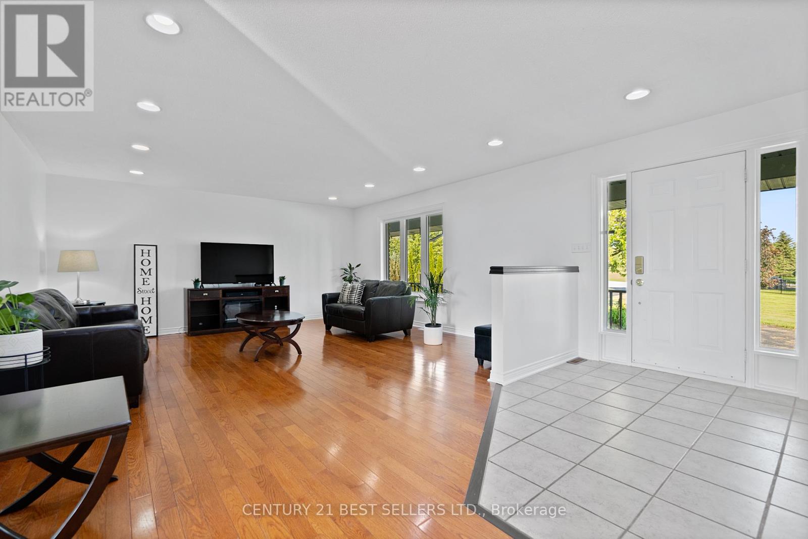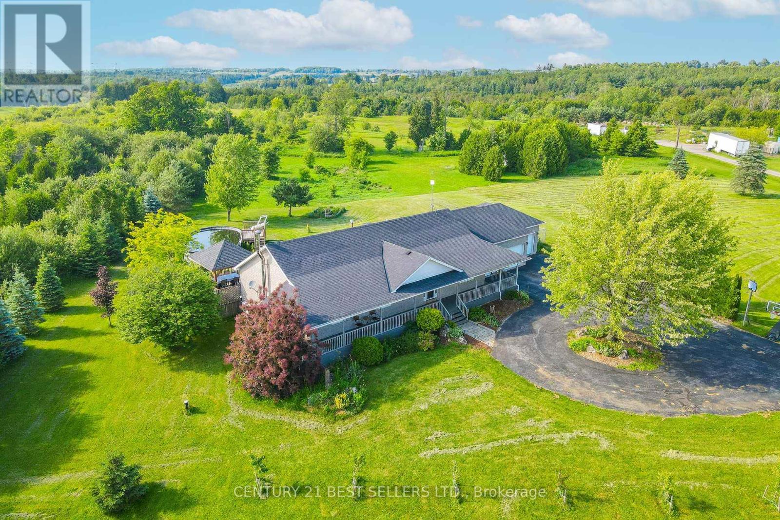Nestled at the end of a cul-de-sac, this executive bungalow ranch sprawls over 5.4 acres of lush land, offering serene privacy amongst a country setting. There is over 3,400 sqft of finished living space, featuring 4 spacious bedrooms, 3 full baths, a fully finished basement & an open-concept design ideal for hosting & comfort. The impressive oversized 3 car garage provides inside entry & additional storage. The backyard offers a 53' x 16' expansive deck, propane hookup, gazebo & pool that sets the stage for grand outdoor entertainment or tranquil moments soaking in the scenery. An enchanting orchard & gardens promises seasonal delights, while private trails beckon for ATV, dirt bike or horseback adventures. There is also a fire pit to gather around the crackling flames for memorable evenings under the stars. This is a rare opportunity to own acreage with privacy & community connectivity, closely located to schools, shopping centers, restaurants, Barrie, HWY 400 & HWY 89.**See Video** (id:64974)