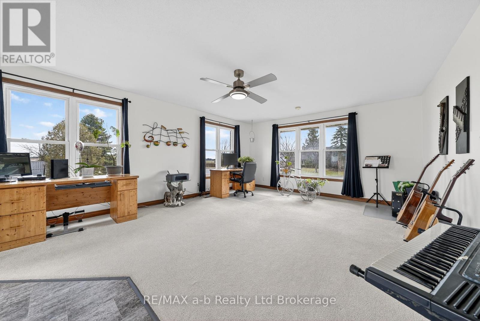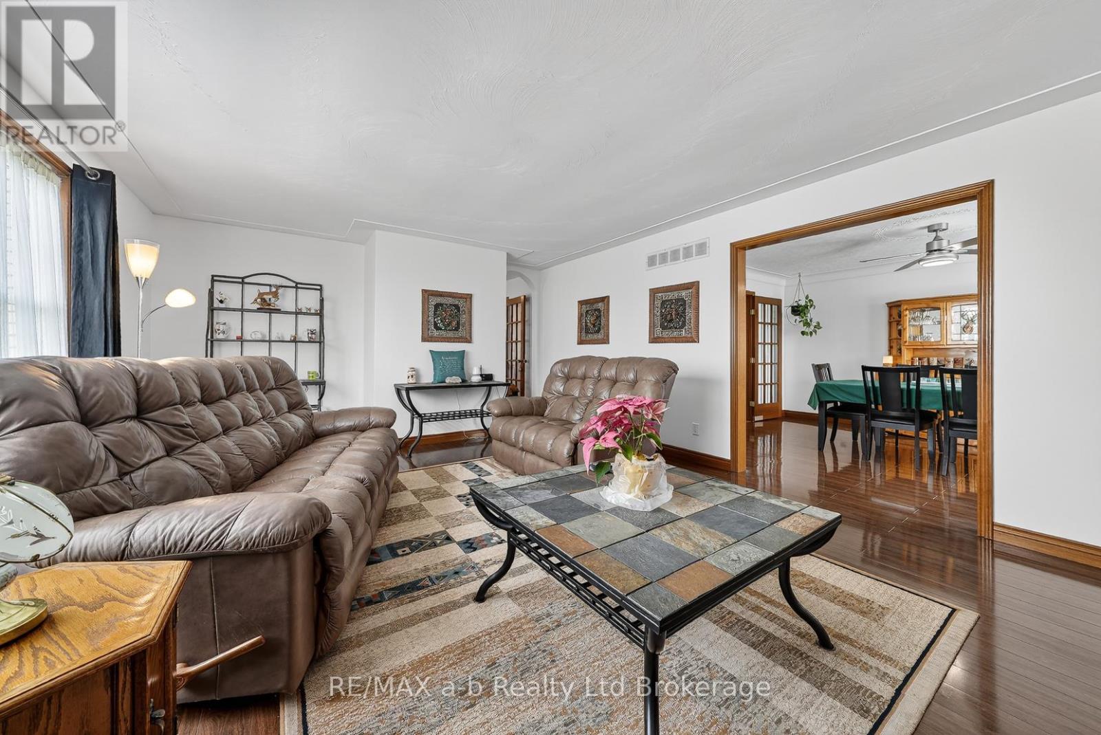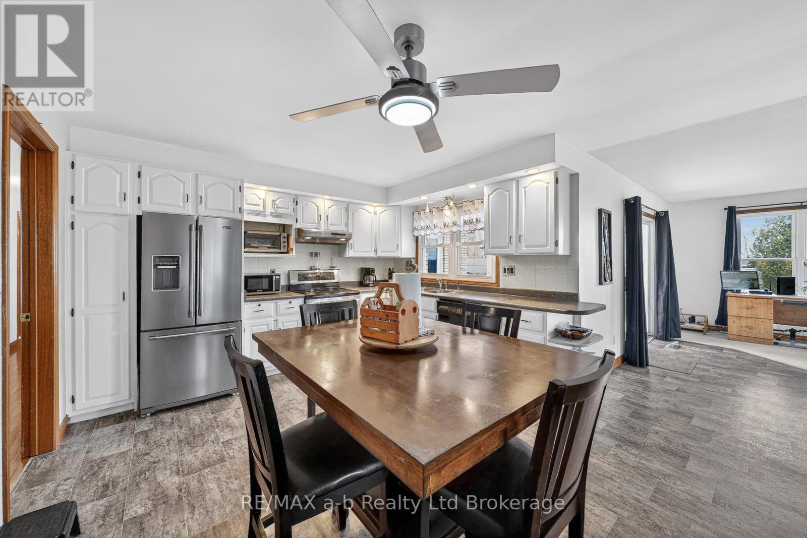 If you've been looking for a home with a workshop, double garage, and room to breathe, this property is one you won't want to miss, located just 5 minutes from major highway and nearby shopping. This well-maintained property offers the perfect blend of space, functionality, and peaceful surroundings, for anyone looking to enjoy a relaxed rural lifestyle. Situated on a generous lot, the property provides plenty of outdoor space for entertaining, gardening, or simply enjoying the tranquility of country living. One of the standout features is the separate shop with its own driveway, perfect for hobbyists or additional storage, this versatile building offers endless possibilities. The home features an attached double car garage, providing ample room for vehicles, storage, and easy access to the home, with 4 surveillance cameras. Inside, the main floor of the home allows lots of natural light creating a warm and welcoming atmosphere, with 2 living rooms; one features gas fireplace, while the other has sliding doors to the outside, kitchen, dining room, laundry, 3 pc. bath, 2 comfortable bedrooms and large primary bedroom with 5 pc. ensuite and patio doors leading to the deck with retractable awning complete the main floor living. Head down to the lower level with large windows allowing more natural light enhancing this beautiful bright space featuring gas fireplace, bar, 3 pc. bathroom, rec room, exercise room or convert to a bedroom and another workshop area. This property has everything you need, don't wait to book your viewing! (id:64974)