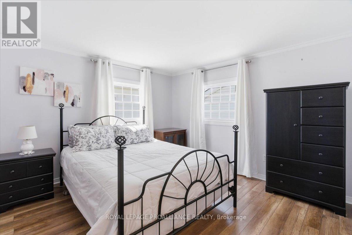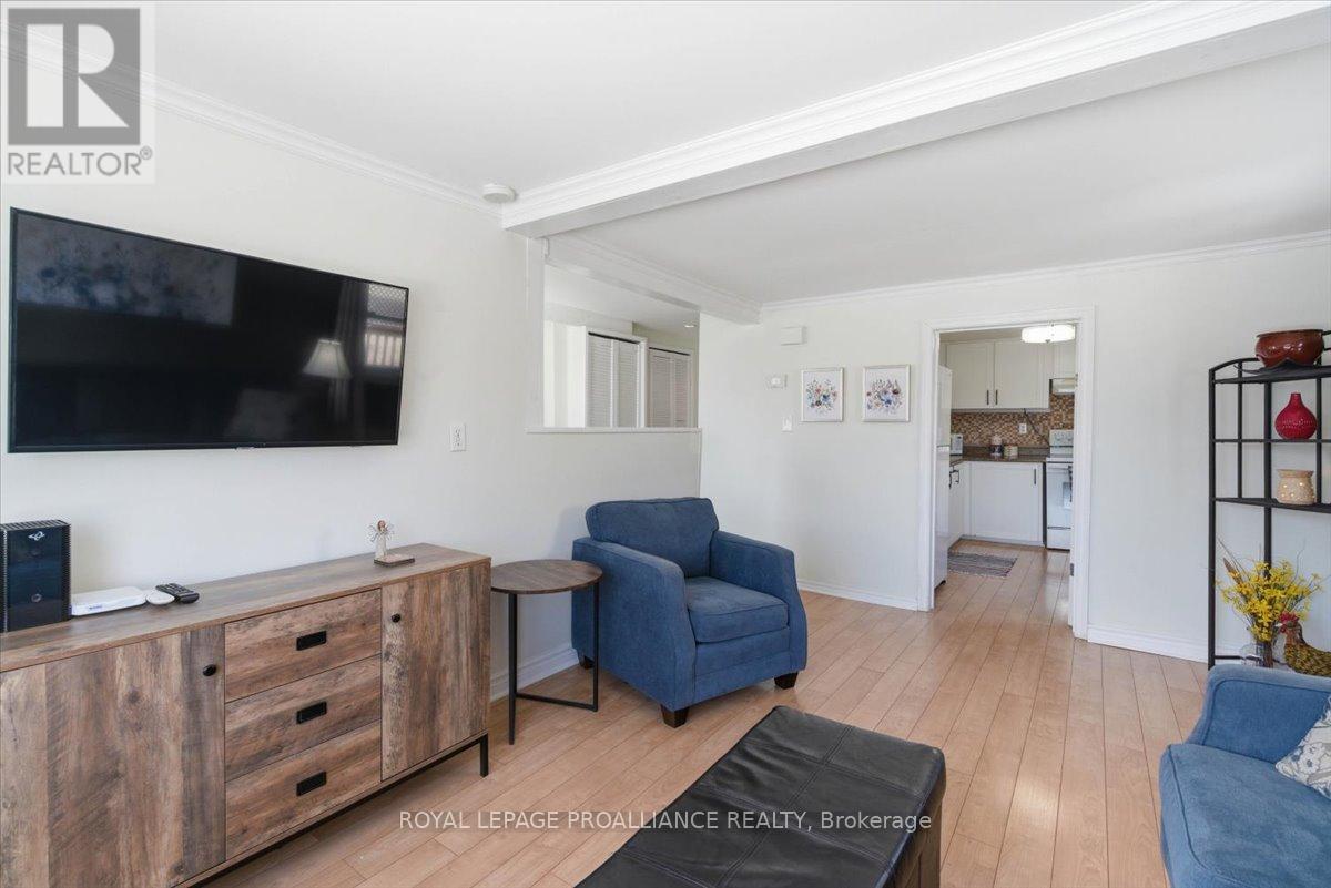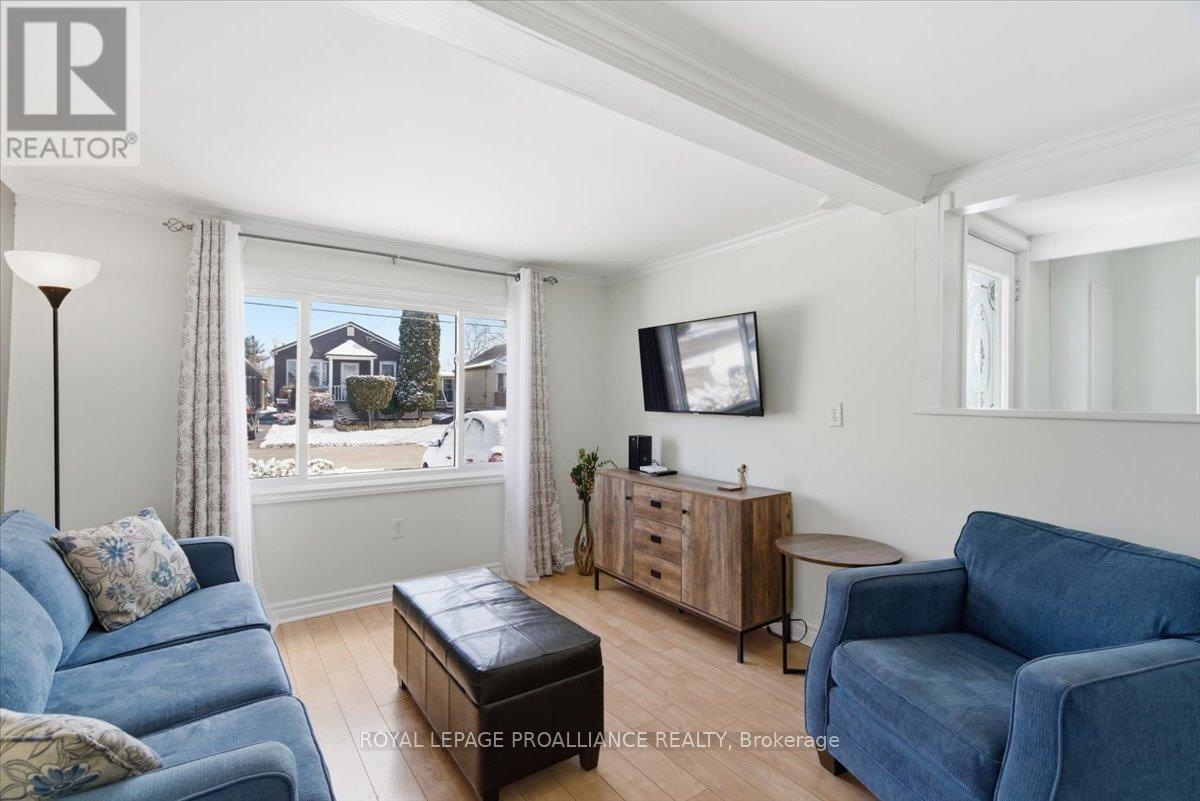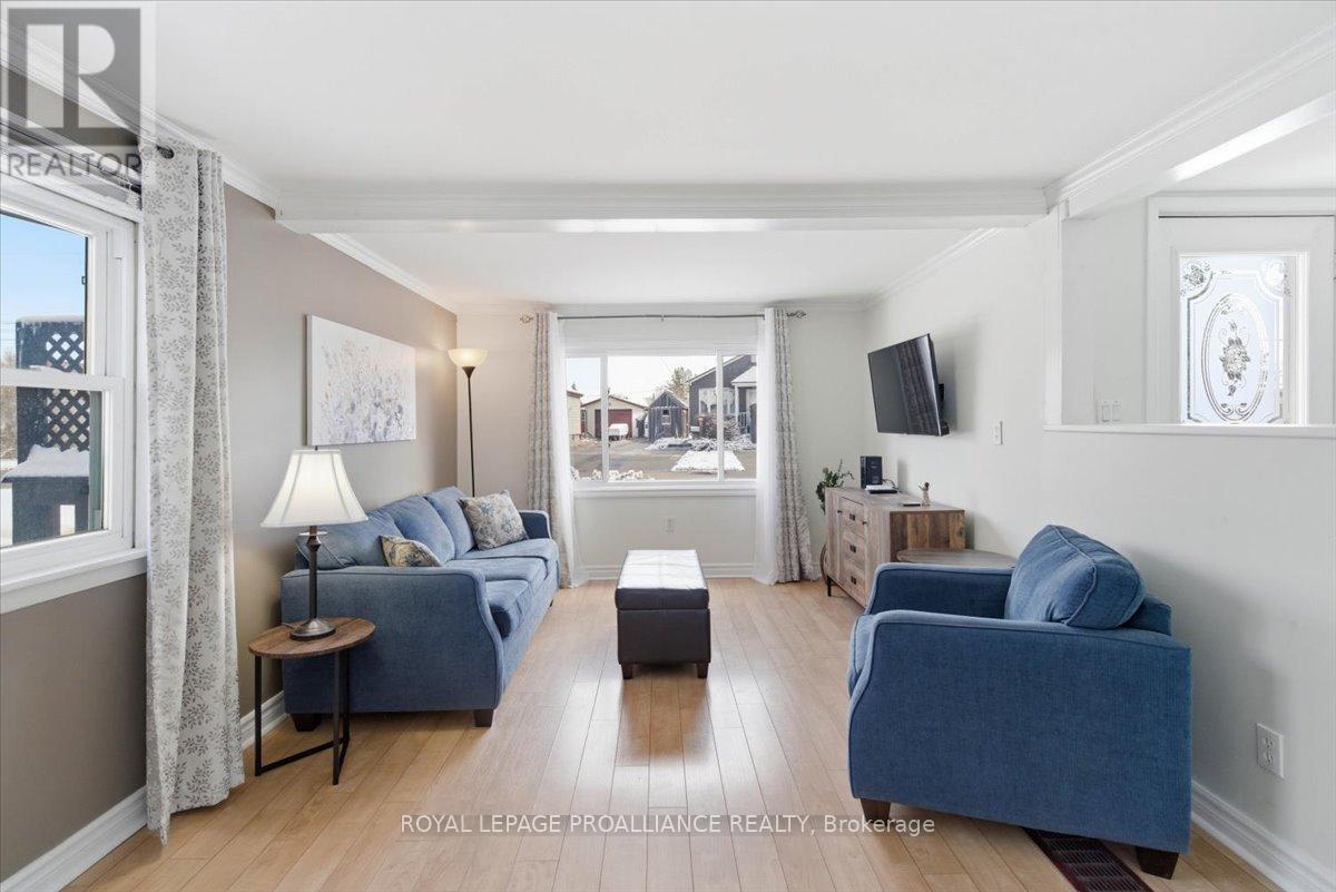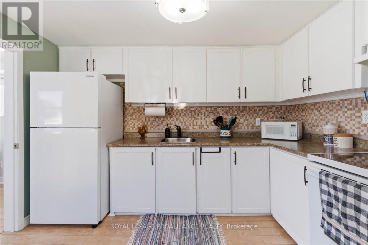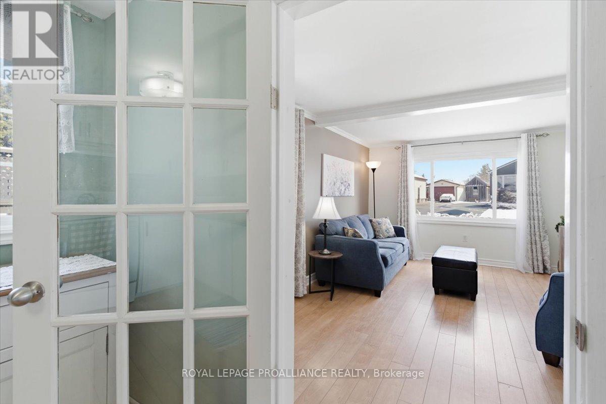 Lovely well cared for home located in a quiet neighbourhood. This is the perfect property for simple main floor living. Large living room with an abundance of light. Spacious kitchen with ample cupboards and storage. Cozy dining area with walk out to the private deck. Spacious bedrooms and updated 4 pc bath. Carpet free home, newer windows. Composite front porch. Detached shed has hydro and offers great storage, previously was a garage and door is under the siding if wished to be converted back. Great location, minutes from all amenities, dead end street, close to 401 and CFB Trenton. This charming move in ready home is the perfect starter home. Do not miss taking a peak at this one! (id:64974)