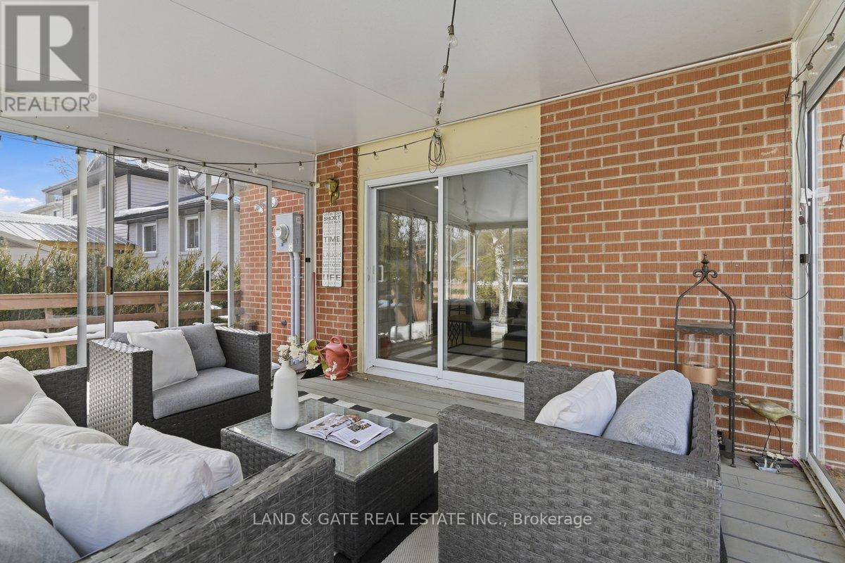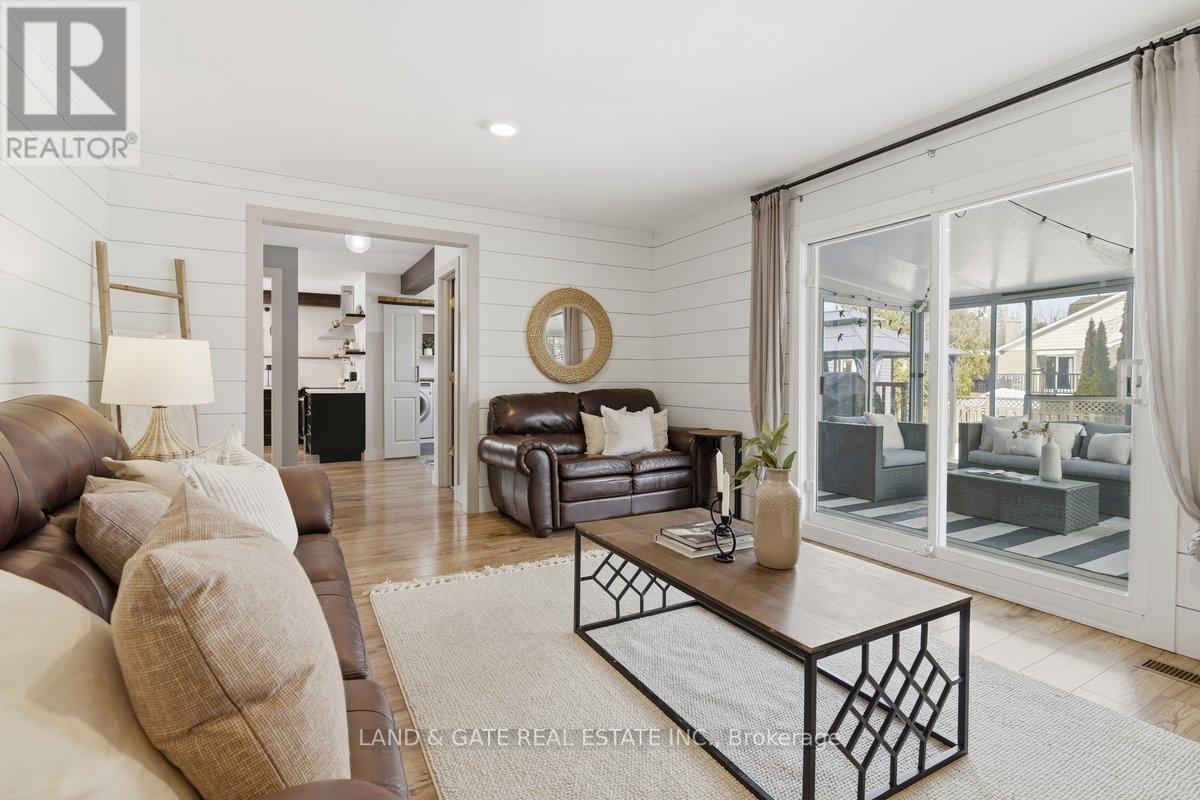 Welcome to 14 Ravensdale Road, a truly unique home in the highly sought-after Pebble Beach Estates community in Cobourg - just moments from Lake Ontario with exclusive private beach access for residents.Set on a mature 60 x 125 ft lot, this thoughtfully updated 3-bedroom, 3-bathroom two-storey blends modern farmhouse character with everyday functionality. The remodeled main floor features a custom kitchen with butcher block island, farmhouse sink, stainless steel appliances, and subway tile backsplash. Board and batten detailing, pot lights throughout, and carefully curated finishes add warmth and personality throughout the home.The main living space walks out to a three-season sunroom with patio doors on three sides, creating the perfect spot to relax while overlooking the backyard. Step outside to enjoy the newly built deck (2025) and included hot tub (2024).Upstairs, the primary bedroom retreat features wood beams, custom wall detailing, a large walk-in closet, and a spacious five-piece ensuite. Two additional bedrooms provide flexible space for family, guests, or a home office.The fully fenced backyard includes mature trees and a custom-built outbuilding with water service, ideal for a studio, hobby space, or future workspace.Additional updates include roof shingles (2023), air conditioner (2024), rebuilt deck (2025), and a water-powered backup sump system for added peace of mind. The partially finished basement offers additional space with future potential.Located on a quiet, low-traffic street just one block from the lake, this home offers a rare combination of character, lifestyle, and location.A rare opportunity to enjoy private beach living in Pebble Beach Estates - schedule your showing and experience this home in person. Square footage as per MPAC report. Room measurements as per photographer. (id:64974)