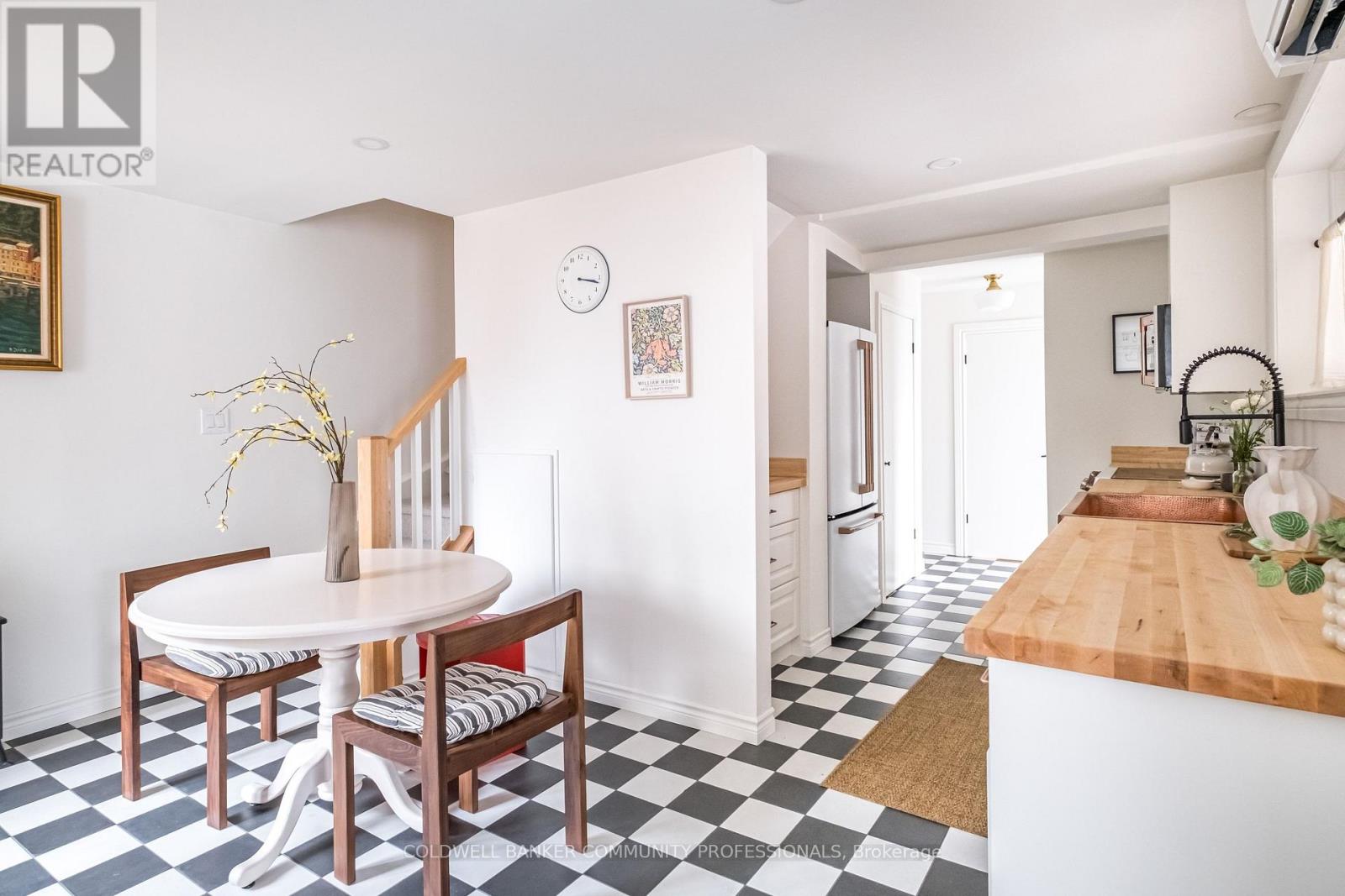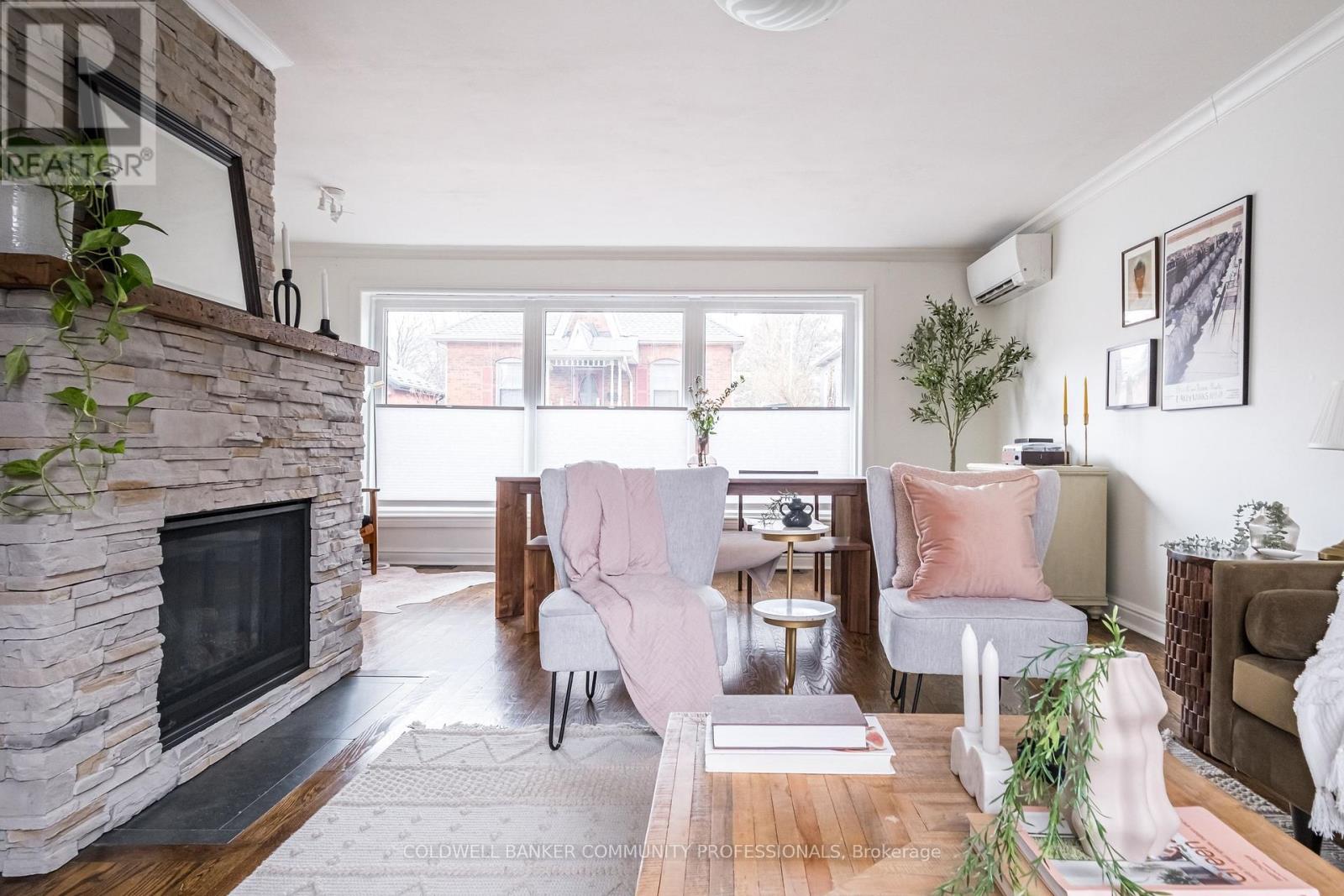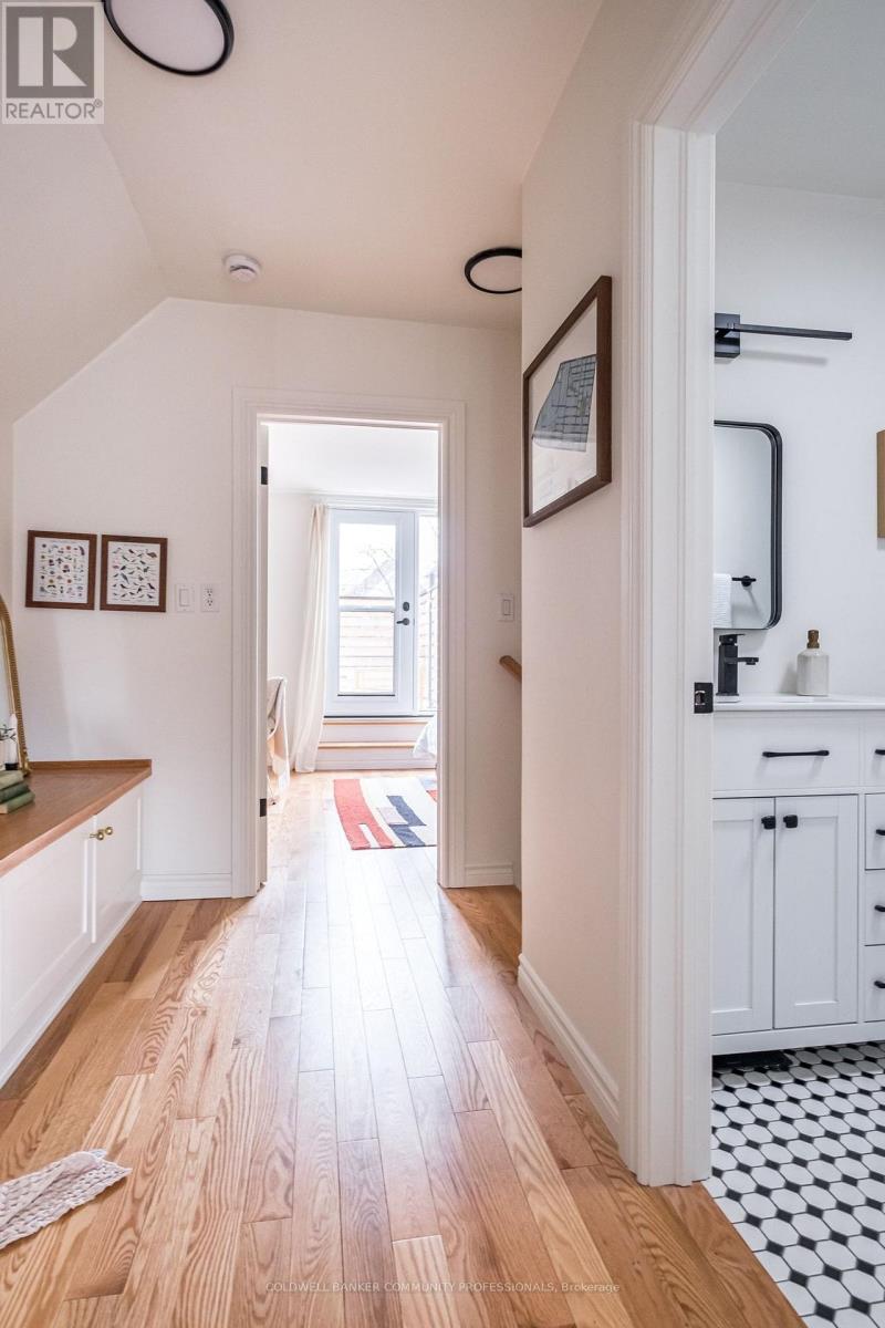 Charming circa 1899 two-storey home tucked away in the heart of Kirkendall, just off Locke Street South. Enjoy the energy and vibrant atmosphere of Locke Street while still being nestled in a private urban oasis. Thoughtfully reimagined in a California-inspired style, this home blends historic character with a distinctive layout and timeless charm rarely found in the neighbourhood. With approximately $200,000 in fully permitted renovations, every detail has been carefully considered. The main floor features a bright living room that flows seamlessly into the dining area, anchored by a brick fireplace as a focal point. The kitchen has been thoughtfully upgraded with custom hard maple countertops and a full suite of Café appliances, complemented by a conveniently located pantry, two main floor entrances, 2 pc bath, versatile office and main floor laundry for everyday ease. Upstairs, warm hardwood floors lead to two comfortable bedrooms and a fully updated four-piece bath. A rebuilt staircase with new carpeting and structural reinforcement completes the upper level, wall-to-wall closet, and hallway sitting bench add both function and style. Outdoor living is equally exceptional, with two decks, a cozy side yard, and a walk out to a 388 sq. ft balcony offering expansive views-perfect for relaxing, entertaining, or enjoying quiet mornings. Recent updates include a Mitsubishi Hyper-Heat mini-split HVAC system, upgraded 200-ampelectrical panel, newer laundry appliances, kitchen and bath upgrades, newer driveway, backyard fence, energy-efficient Cobra Energy Star doors, newer windows, carport, and plenty of storage. Located in one of Hamilton's most desirable neighbourhoods, this home offers the rare combination of California-style charm, historic character, modern convenience, and a vibrant, walkable community with shops, cafés, parks, and friendly neighbours. Come and see what all the fuss is about. (id:64974)
