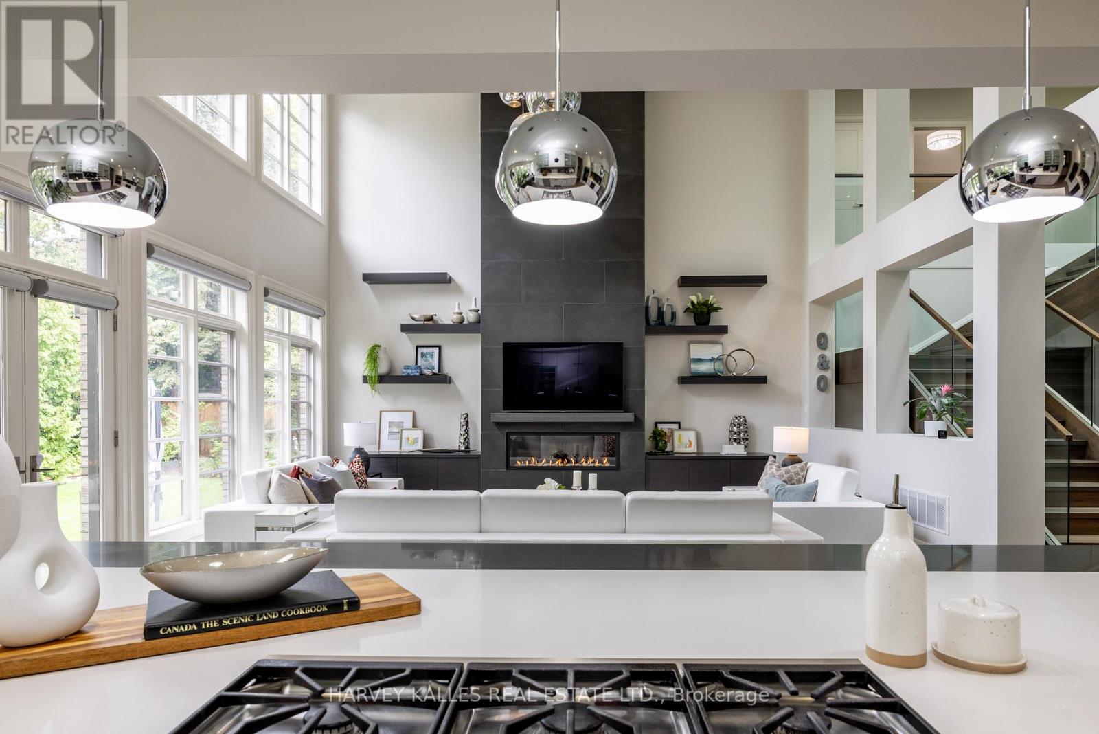 Welcome to "Quatorz Sulgrave," a custom luxury home in the prestigious St. Andrews neighbourhood of Toronto. Completed in 2014 by Rostek Homes with classic architecture by David Wooldridge and modern transitional interiors by CMID, this residence offers approximately 7,900 Sq. Ft. of total living space, including ~ 5,000 Sq. Ft. above grade, on a 90' x 125' lot. Designed with timeless elegance, the Indiana limestone façade and professionally landscaped gardens set the stage for refined living. Inside, 10' ceilings, oak hardwood floors, Savaria elevator, applied mouldings, and custom millwork showcase exceptional craftsmanship. The main floor blends formal and family living with a living/dining room, study, and an open-concept chef's kitchen featuring Sub-Zero/Wolf appliances, quartz waterfall island, butler's pantry, and breakfast area overlooking the two-Storey family room with soaring 20' ceiling and linear fireplace. The upper level offers 4 vaulted bedrooms with ensuites, including a serene primary retreat with fireplace, dressing room, and 7-piece spa-inspired ensuite. The finished lower level includes a recreation room, games room, wet bar, fifth bedroom/gym, cedar closet, arcade, and cold cellars. Outdoor living is enhanced with stone interlock, outdoor kitchen/wet bar, fenced yard, and standby generator. Additional features: 4-car built-in garage with EV charger, 6-car drive, smart home wiring, built-in speakers, alarm and camera system, and dual furnaces & A/C. Ideally located near Bayview Village, The Granite Club, Highway 401, and some of Toronto's top private and public schools. A rare opportunity to own a custom-built St. Andrews luxury home of enduring style, exceptional quality, and unparalleled convenience. (id:64974)