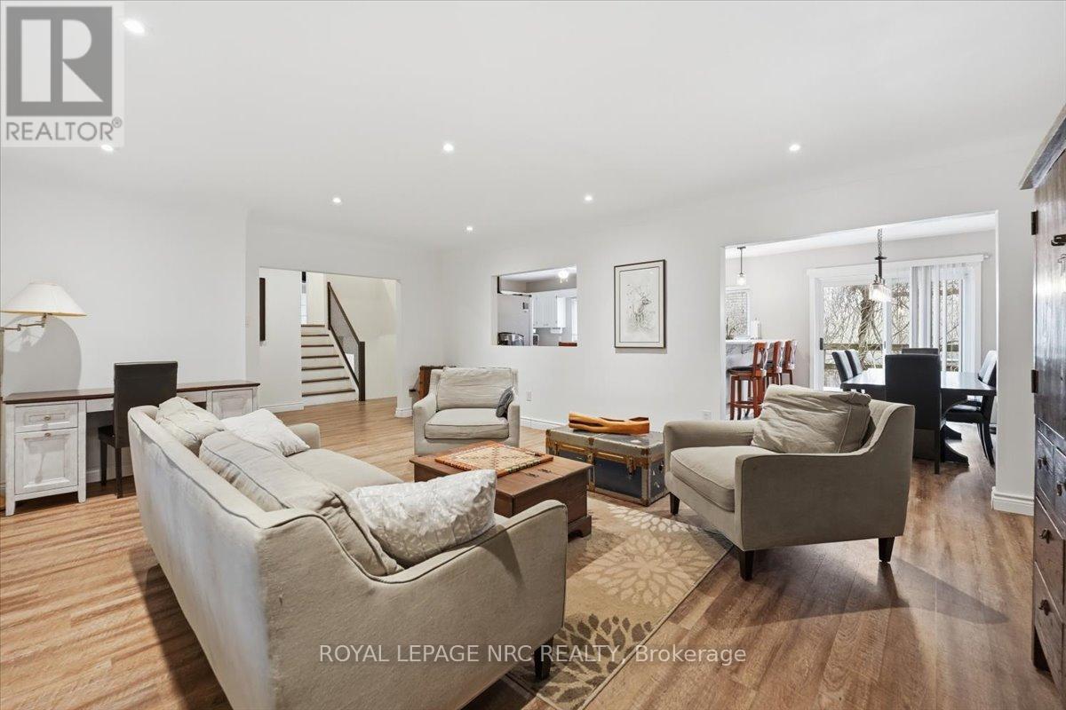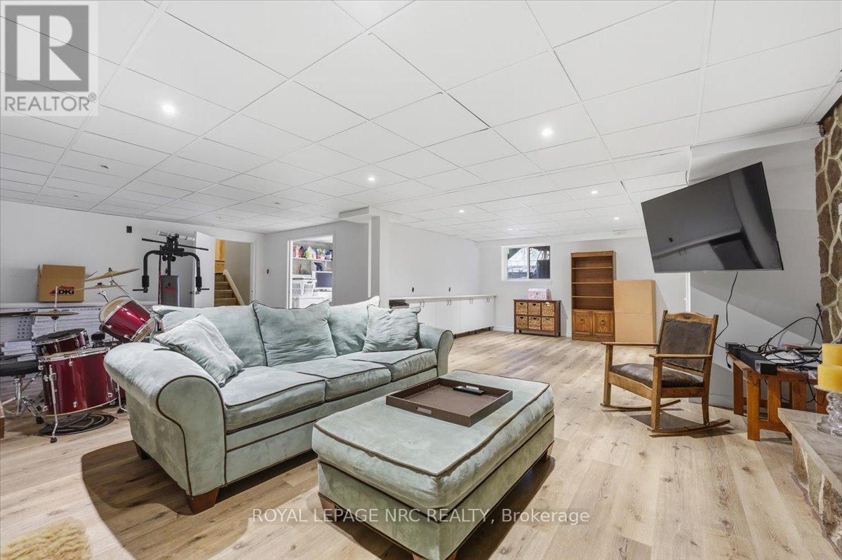 Spacious 4-level side split offering approximately 3,100 sq ft of finished living space in a highly sought-after Fonthill neighbourhood within the AK Wigg school district. Bright main floor features kitchen, dining, and living room with large windows overlooking a private backyard. Upper level offers 3 generous bedrooms and a 4-piece bath. Lower level includes 2 additional bedrooms, a second 4-piece bath, and convenient garage access. Fully finished basement with large rec room, play area, laundry, ample storage, and cold room. Ideal family home in a prime location close to schools, parks, and amenities. (id:64974)
