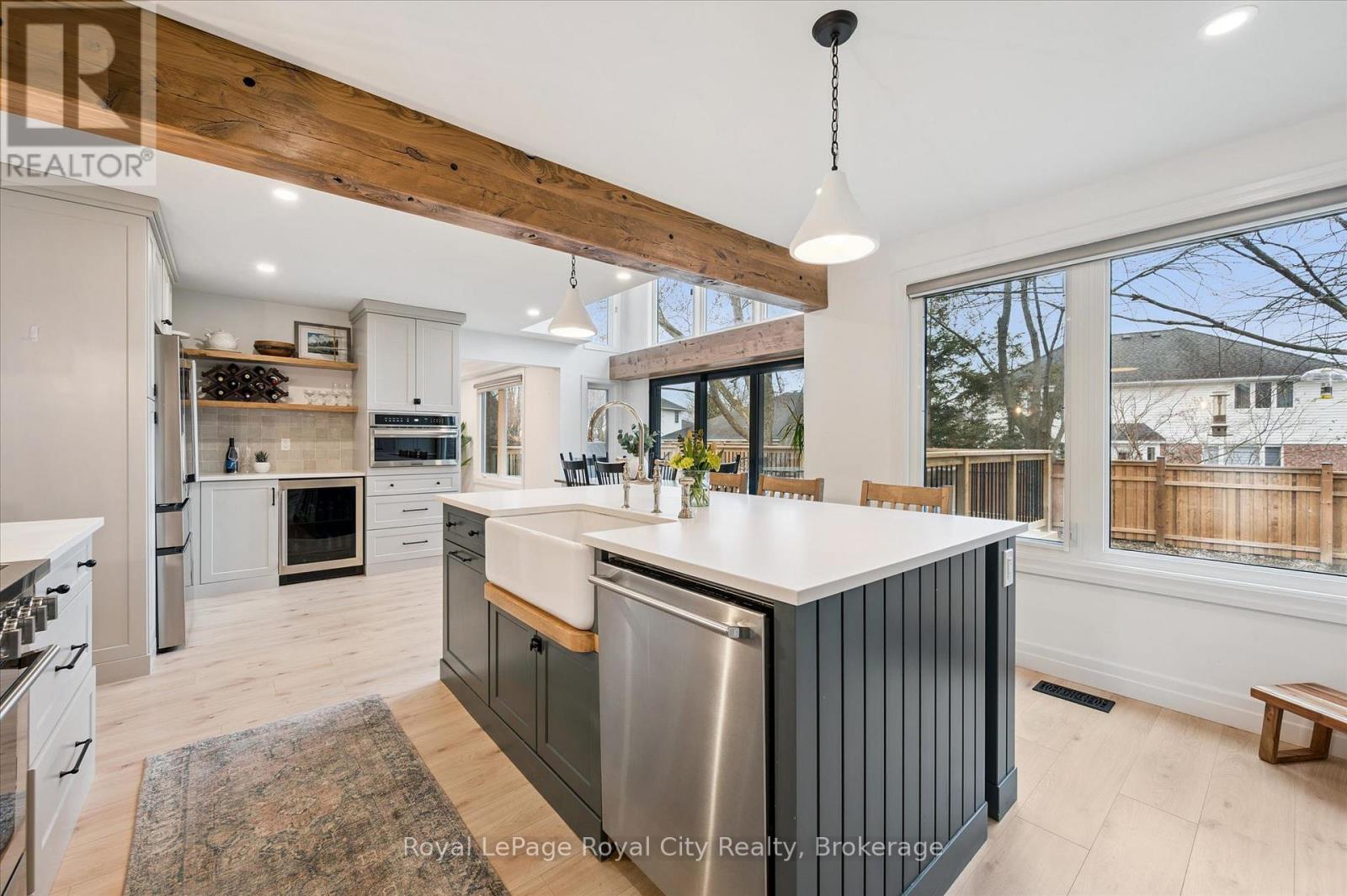 Kortright Hills is more than a neighbourhood-it is a way of life. Tucked quietly within one of its most charming and sought-after enclaves, Wood Duck Court offers a setting that feels both intimate and exceptional-one of those rare streets that leaves a lasting impression from the moment you arrive. Set on a remarkable pie-shaped lot, this beautifully appointed residence is framed by mature trees and lush surroundings, offering an extraordinary sense of space and privacy. The expansive backyard with two large decks presents a rare opportunity to create a truly bespoke outdoor retreat-perfect for entertaining, quiet mornings, or evenings spent beneath the canopy of trees. Inside, the home unfolds with a thoughtful balance of openness and defined living spaces. The recently renovated main floor has been curated with intention, blending timeless design with modern functionality. At its heart lies a stunning kitchen-both refined and inviting-crafted with exceptional attention to detail and designed to bring people together. The adjoining family room enhances the home's warmth, anchored by a wood-burning fireplace that creates an atmosphere of comfort and ease. An elegant open staircase allows natural light to flow throughout, enhancing the bright, airy ambiance. Upstairs, four generously sized bedrooms provide space for the entire family, including a serene primary suite complete with a beautifully appointed private ensuite. The finished basement adds versatility with additional living space, a bedroom, and a full bathroom-ideal for guests or extended family. Beyond the home, the lifestyle is truly unmatched. Just moments away, Kortright Hills Public School sits at the heart of the community, surrounded by parkland and playgrounds. Nearby trails and conservation lands offer endless opportunities to enjoy nature, connecting seamlessly to Guelph's extensive trail network. A rare offering in one of the south end's most beloved communities. (id:64974)