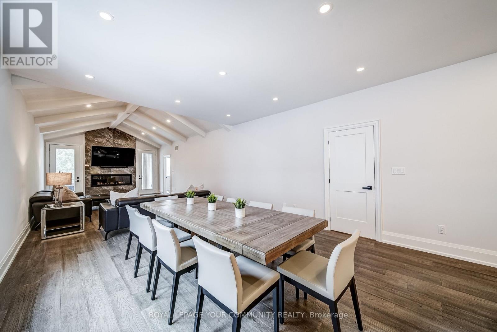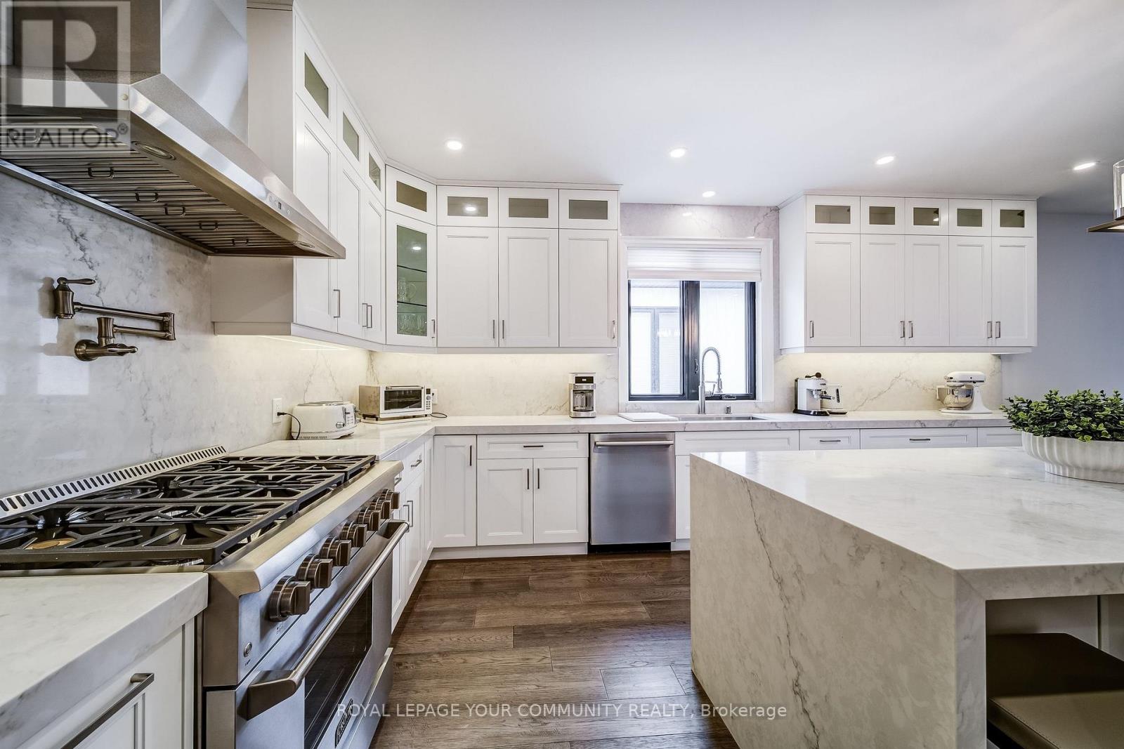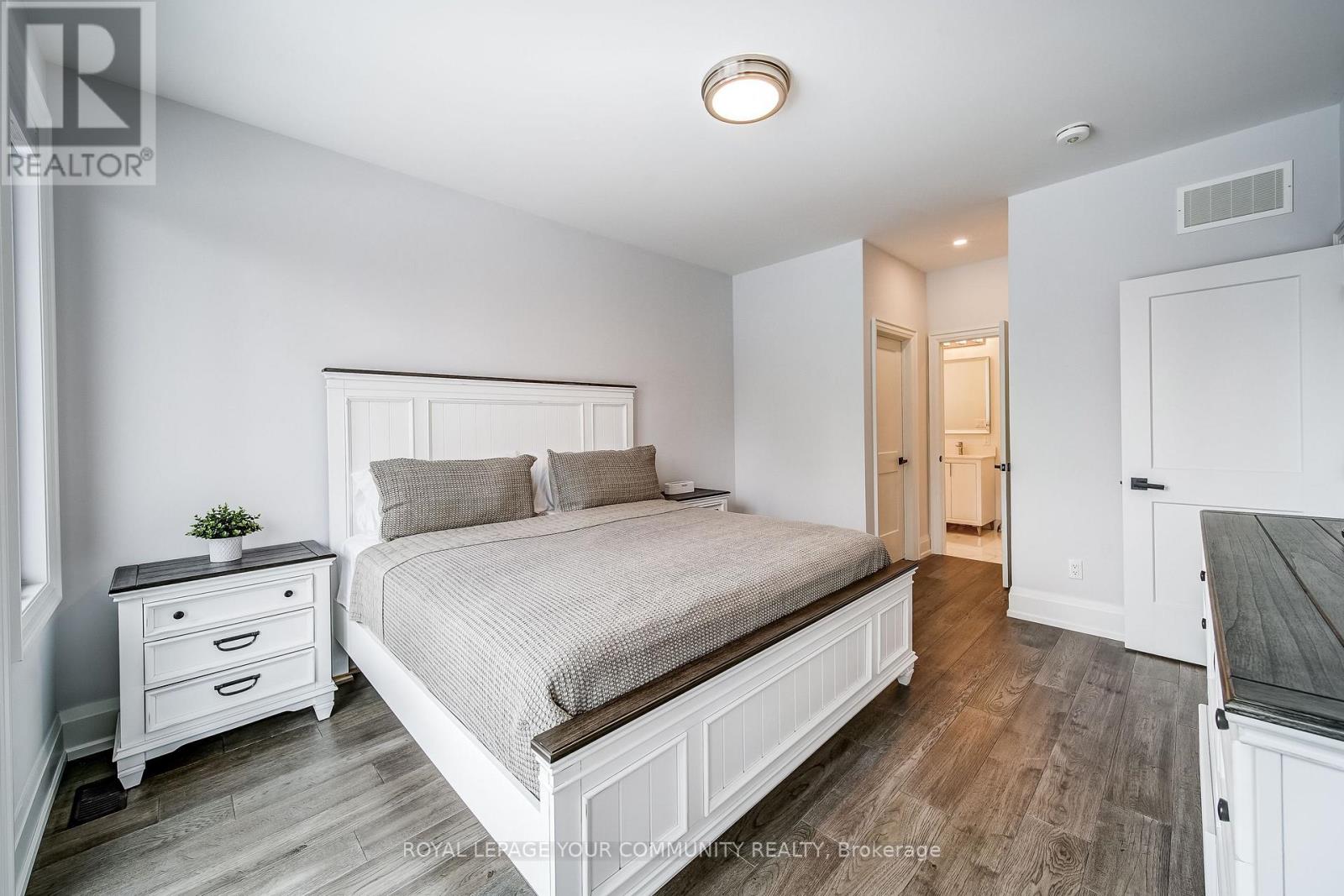 Step into this exceptional detached raised bungalow, where modern luxury meets effortless everyday living. Offering over 3,300 sq. ft. of beautifully finished space, this home is crafted to impress from top to bottom. The main floor features three generously sized bedrooms and two spa-inspired 3-piece bathrooms, each adorned with elegant porcelain tile. The heart of the home is the open-concept kitchen and dining area, showcasing custom quartz countertops, a striking waterfall island, and premium stainless steel appliances-perfect for both cooking and entertaining. Bright and inviting, the living room is enhanced by a soaring cathedral ceiling and opens onto a large covered composite deck with modern glass railings, creating an ideal indoor-outdoor retreat. A thoughtfully designed main-floor laundry room with a built-in pantry adds convenience without compromising style. The fully finished lower level provides outstanding extra living space, complete with three spacious bedrooms with above-grade windows, a chic 3-piece bathroom, and a large kitchenette featuring custom quartz counters. The expansive dining and family area is perfect for hosting gatherings or creating a private suite for extended family. Move-in ready and loaded with high-end finishes and carefully selected upgrades, this home is a rare find that truly must be seen to be appreciated. (id:64974)