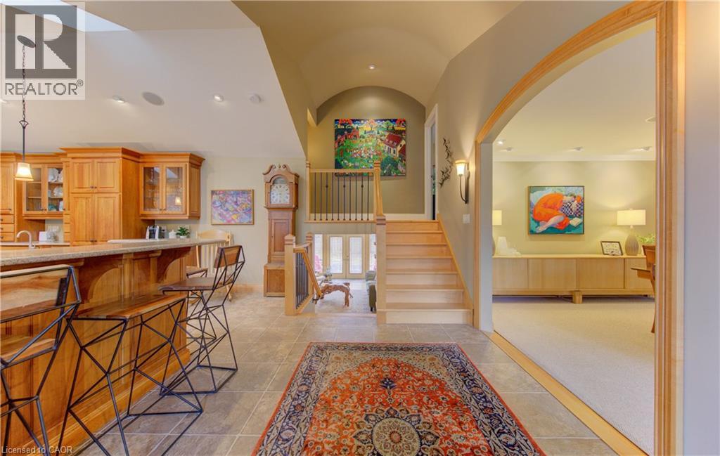 When it comes to Waterloo Region real estate, there’s nothing better than a Westmount location! This is 140 Aberdeen Road – perched on a sprawling almost 80x160 foot lot just steps from Westmount Golf and Country Club. The custom four-bedroom residence with extensive renovations by Country Lane Builders strikes a perfect balance between elevated luxury and a warmly inviting atmosphere. Stepping inside from the manicured front gardens through a handsome solid wood door, you’ll be struck by light flooding the main level with its barrel-vaulted ceiling and multiple skylights. Turn left into the airy dream kitchen with quartz counters, custom cabinetry, and prep space, or right into the formal dining room with lighting to showcase your art. Head downstairs to the extended triple-aspect family room with vaulted ceiling, custom lighting, skylights, and cozy gas fireplace, perfect for relaxing with natural views. In warmer weather, step out to the enormous fully fenced yard featuring a two-tier deck, mature walnut tree, and room for outdoor entertaining. The lower level also includes a den (or fourth bedroom), home office, mudroom, powder room, and garage access. One level below is the dry unfinished basement with ample storage and mechanicals: new Viessmann boiler for heated floors in the north wing, updated furnace, water softener, and sump pump. Upstairs are the three principal bedrooms, led by the custom primary suite with vaulted ceiling, deep walk-in closet, three-piece ensuite, and adjacent laundry. The main four-piece family bath is down the hall. With parking for up to nine vehicles via the attached garage and triple-wide gravel driveway, this home is ideal for entertaining, or enjoy easy walks to Belmont Village or Uptown Waterloo for dining. Nothing beats life at 140 Aberdeen Road! (id:64974)