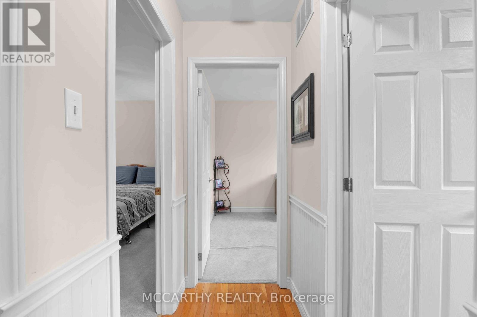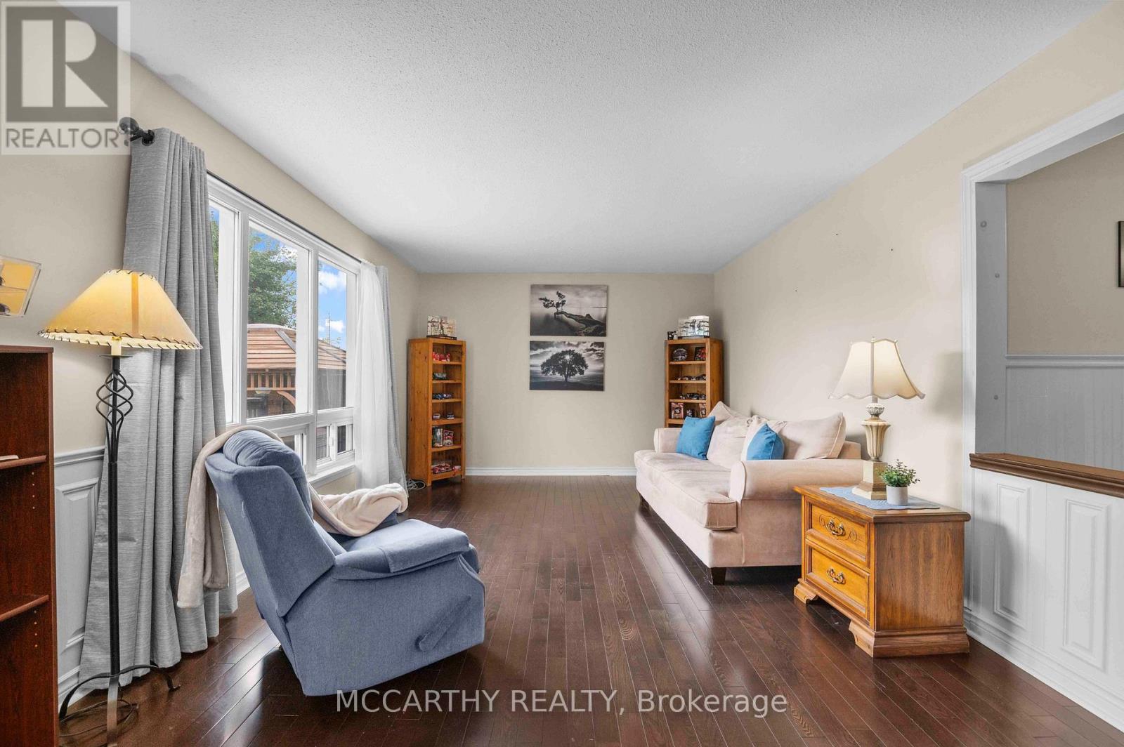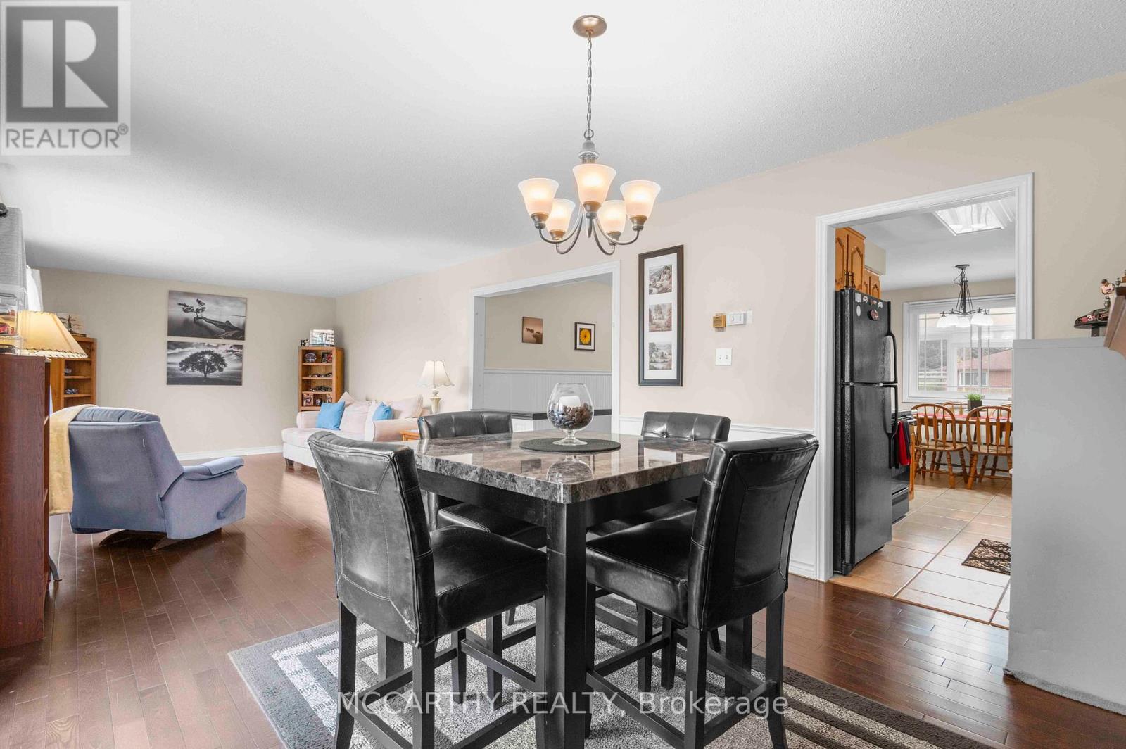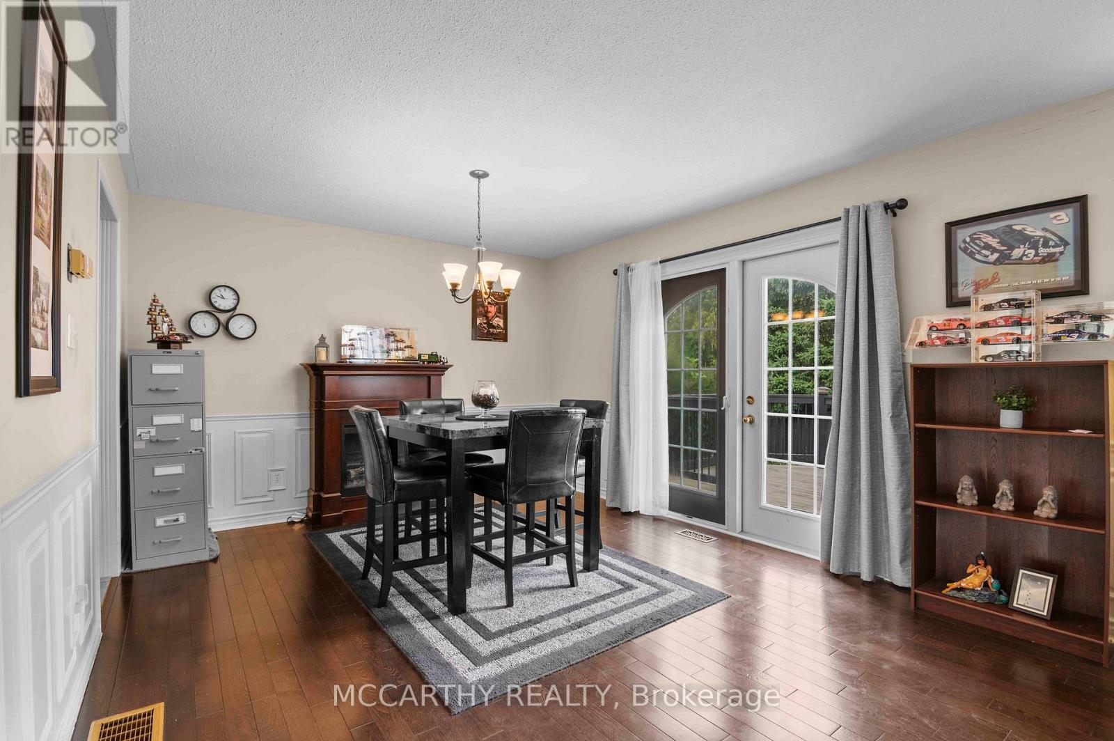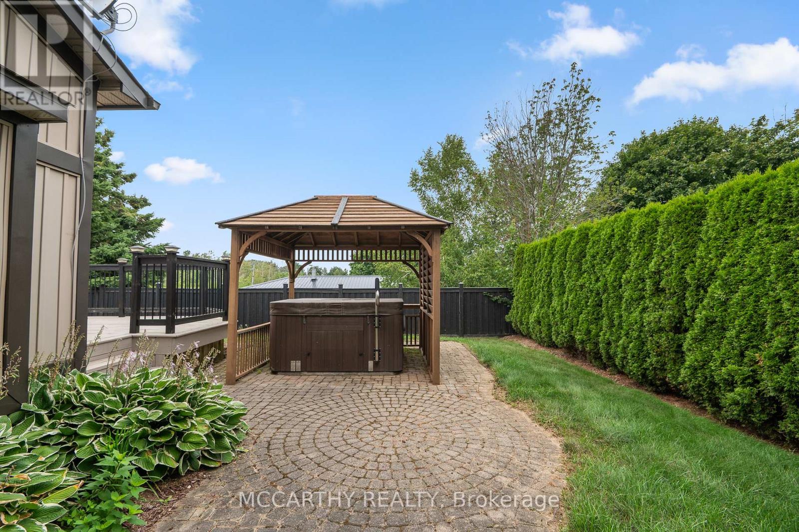 Great Curb Appeal, Large Corner lot with large lot 80 x 100ft, Large front entrance, Big back yard deck and Hot Tub with Hard cover. 3 Bedroom 2 Bathroom well maintained 3 level Side split. Pretty entrance of paving stone walkway around the house and steps up to a welcoming deck, has convenient & pretty motorized awning for shade and privacy. Come into the bright and airy 3 season sunroom entry. Door way into Large foyer with tile floor, double closet w modern sliding doors. Well Lit Eat in Kitchen with plenty of cupboards with large window over double sink. Hardwood floors in Combined Dining room and Living room. Living room has large picture window over looking the large Back Deck deck. Eat dinner in the large Dining room that is combined with the living room, Electric Fireplace. Garden Doors Walk out from the dining room to the back deck and spacious back yard, great for family time or entertaining. Enjoy evenings in your own Gazebo covered Hot Tub. Double door gate to back yard. Spacious side yard with a large wood shed approx. 10ft x 16ft with hydro. Upper level has three good sized bedrooms and a spacious 4 piece Bathroom. Lower level Rec room has cozy gas fireplace and is spacious and plenty of room for family time and entertaining. 2nd Bathroom on lower level 3pc w large walk in tiled shower. The laundry room with plenty of cabinets for storage and folding. Utility room is combined with the laundry room. Need space for parking, this is it, 2 car garage plus Concrete driveway with parking for 4 plus, total 6 parking spots, Great for the working couple, work vehicle, recreation vehicle, visitors or extended family cars. (No need to worry about winter parking spots. )Street is quiet as not a drive thru street, Corner lot is large and has good size side and back yard. Very close to Elementary and Secondary schools, parks, recreation/arena. Perfect well maintained home for family living. Desired location, Move in ready. Book showing today, Must See. (id:64974)