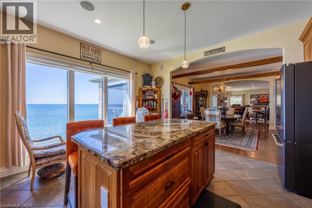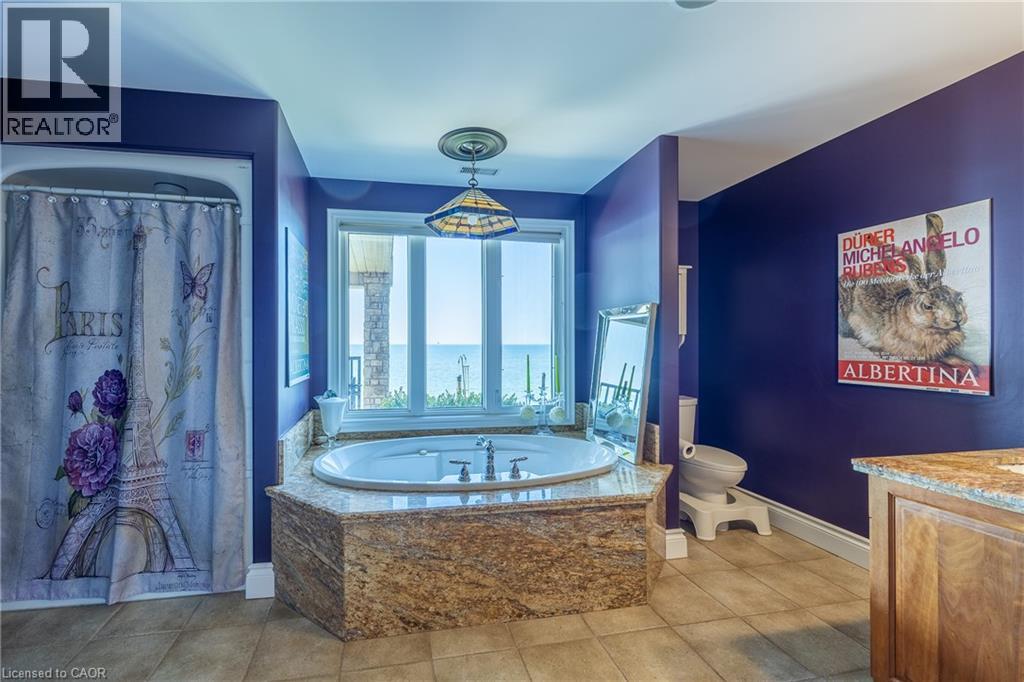 Nestled on a quiet, dead-end street in the heart of beautiful Port Dover, This stone bungalow offers a blend of spacious living, thoughtful design, and unbeatable location. Built in 2003, this impressive home boasts over 3,083 square feet of total living space, providing room for families of all sizes to live, work, and relax in style. From the moment you arrive, the home’s curb appeal shines with its attractive landscaping, paved driveway with decorative concrete/aggregate border, and upgraded walkway and porch that lead to a welcoming front entrance. Step inside to a flowing floor plan featuring a spacious foyer, sunlit living room with walk-out to an upper balcony with retractable screens and with Lake Erie views, dining area and eat-in kitchen ideal for entertaining or casual family meals. A main-floor bedroom and 4- piece bath add flexibility and convenience. Downstairs, the lower level is equally impressive, offering a generous rec room, home office, luxurious master suite with walk-in closet and ensuite, one additional bedroom, another full bath, and a walk-out to the lower deck area— perfect for outdoor relaxation or hosting summer get-togethers. The oversized 27' x 30' heated garage offers ample room for vehicles and storage, completing the practical layout. You’re just minutes from the town’s beloved beaches, boutiques, and local eateries, including lakeside dining and quaint cafes. Whether you’re enjoying a stroll along the pier or a day at the beach, this community offers smalltown charm with big personality. Even better, you’re within easy driving distance to Hamilton, Brantford, and other nearby cities, making commuting a breeze while enjoying the tranquility of lake-town life. If you're seeking a spacious, beautifully maintained home in a location that truly has it all. Check out the virtual tour and book you showing today. (id:64974)