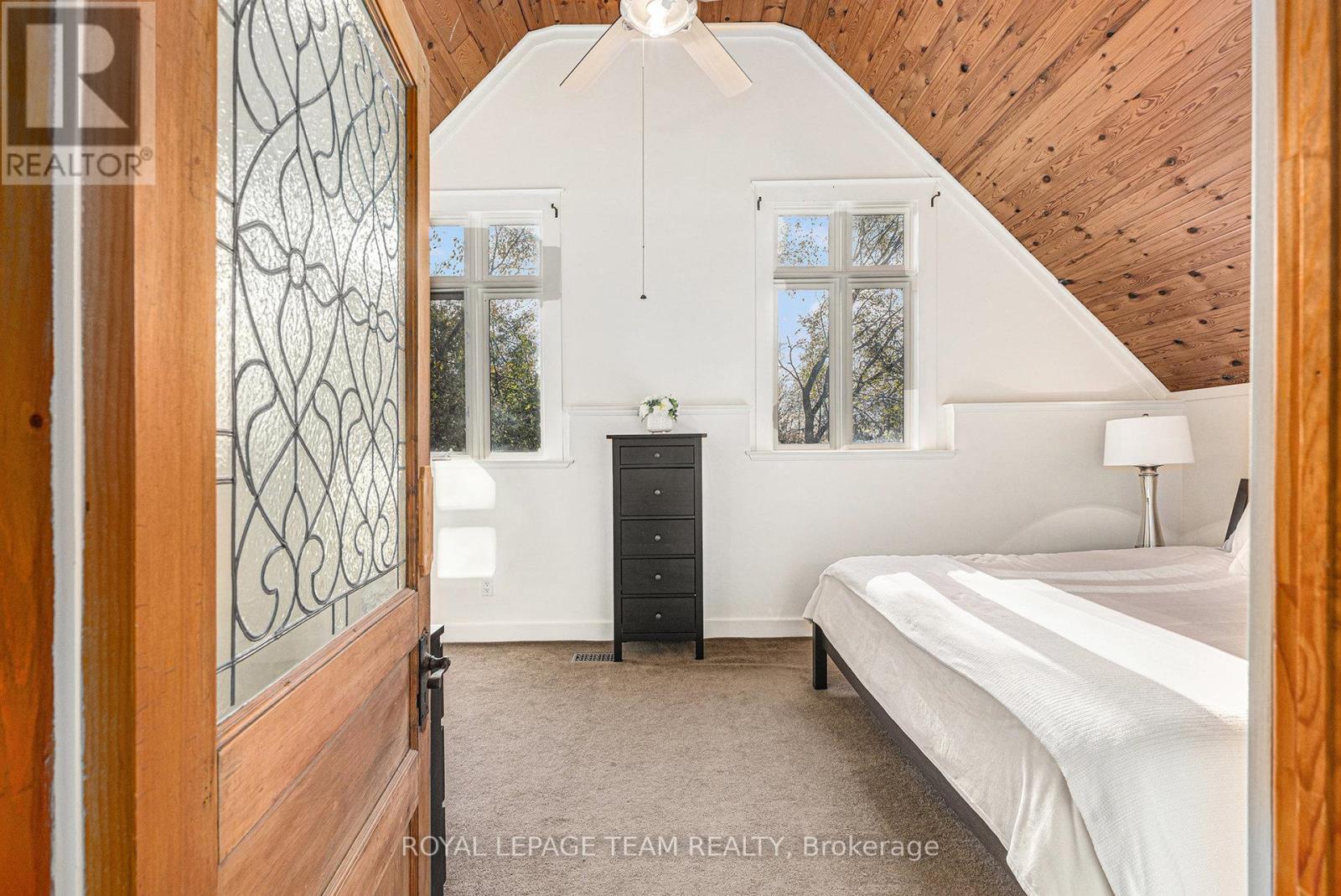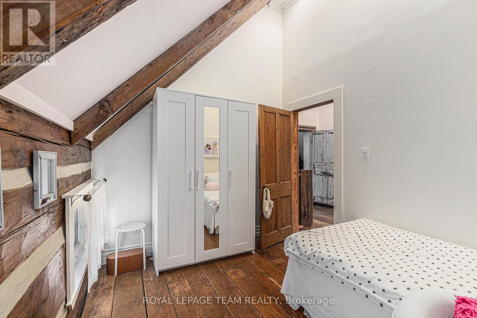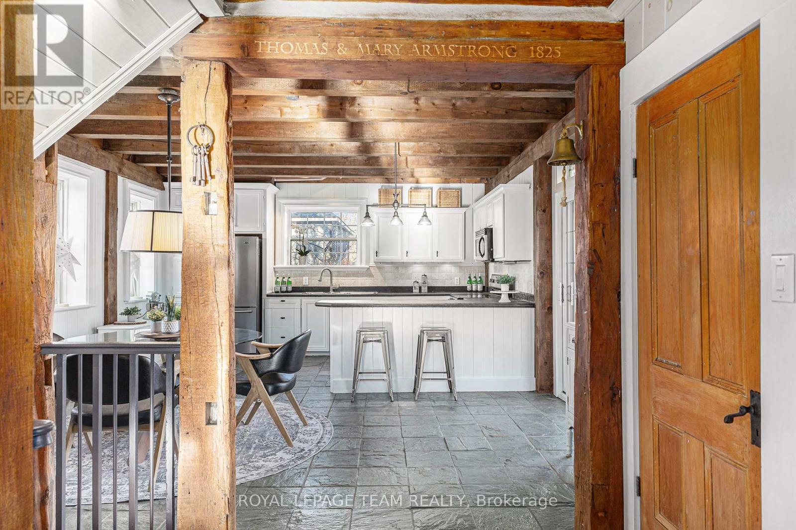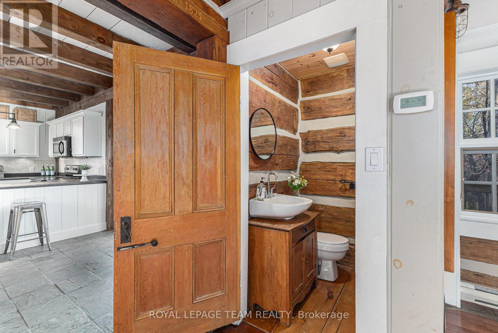 Step into a gorgeous one-of-a-kind log home, expertly crafted in 2006 by re-imagining and joining two original log houses from the 1800s. Every hand-tagged cedar and white-pine log tells a story of rebirth-dismantled, carefully numbered, and seamlessly woven into a magnificent single residence. Here, vintage charm meets modern comfort. As you cross the threshold, a bright and open-concept living space welcomes you. Sunlight pours in through generous windows, illuminating the rich log walls and exposed beams - lending a sense of rustic elegance and relaxed sophistication throughout. The spacious living room with a handsome gas fireplace create the perfect setting for both quiet evenings and lively gatherings. The oversized kitchen is sure to become a favourite gathering place. Generous counters wrap around a central peninsula and flow into the large eating area. An abundance of windows bathe the space in natural light, while a patio door opens onto a rear deck. Upstairs you'll find three beautifully proportioned bedrooms beneath vaulted ceilings, and a luxurious four-piece bathroom featuring a separate shower. The fully finished basement is the perfect extension of your family's living space. There's a cozy family room that's great for movie nights, game time, or just relaxing together. An extra area provides the ideal spot for working from home or helping the kids with homework/ gym. The exterior offers recreational space ( fire pit) as well as a superb bunkie with a loft/ bunk-bed area. Your new home is a short walk from both the Fitzroy provincial beach area and the Carp river. This is more than a house - it's a legacy of craftsmanship and character, ready to become your home. (id:64974)