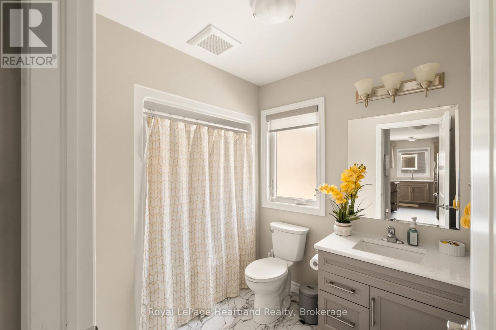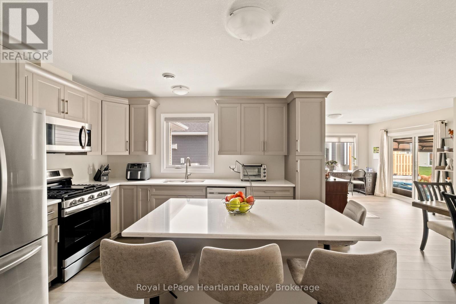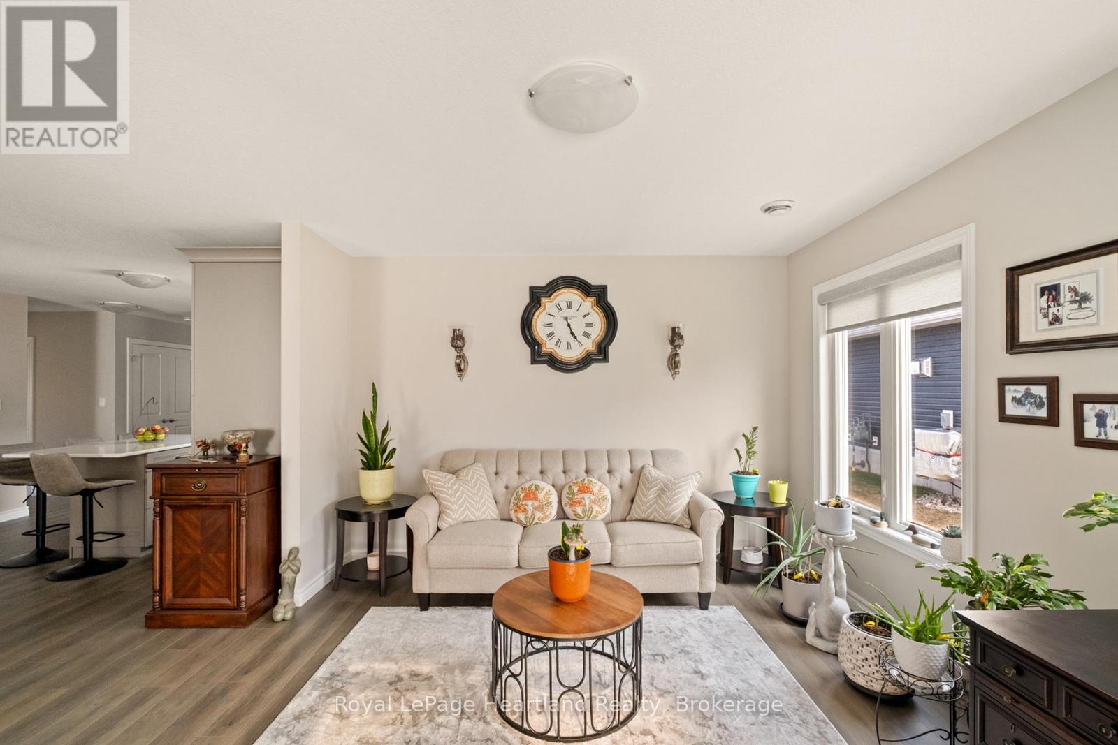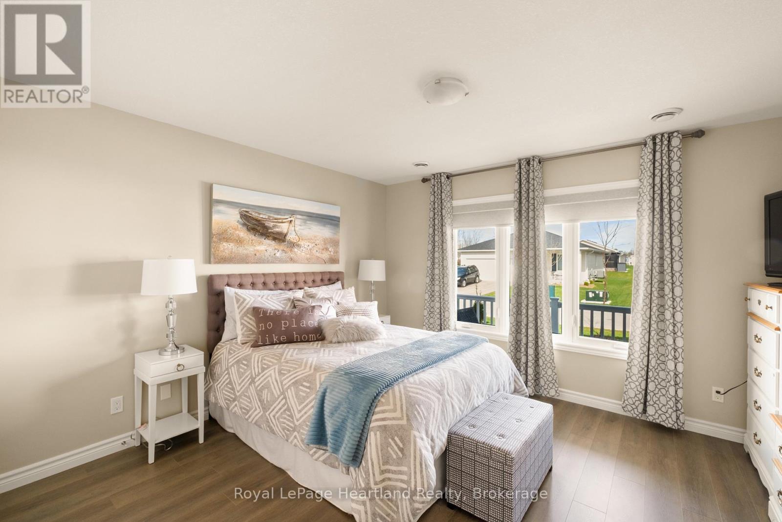 At Lake Huron's 55+ Parkbridge Community, Bluffs at Huron, could this be the "Lakeside with Sunroom" model that provides the value you're looking for? Wonderfully maintained and offering approximately 1,455 sq ft of thoughtfully designed living space, highlighted by warm plank flooring throughout the main areas, warm-toned cabinetry, and crown moulding. The kitchen is beautifully appointed with Cambria quartz countertops, a custom pantry with roll-outs, generous prep-space island with upgraded storage and overhang, natural gas stove, and refrigerator with water feature, combining style and practicality. Adjoining the kitchen, the sunroom wrapped in windows provides abundant natural light and versatile space, while the living room features a gas fireplace showcased with contemporary white millwork as a striking focal point. The primary suite includes a large walk-in closet and 3-piece ensuite with decorative floors, while a second bedroom and 4-piece main bathroom are at the front of the house. Additional thoughtful features include a dedicated laundry room with an upgraded laundry sink, and custom roller blinds. The home is move-in ready with no painting needed! Curb appeal begins with a new epoxy resin finish on the welcoming front porch, positioned on a manageable lot with big entertaining impact, the property features a West-facing oversized concrete patio with a wraparound path to the front driveway. Modern finishes and near to outdoor recreational spaces, including a leisurely stroll to the community's well-attended Clubhouse makes this an exceptional opportunity in The Bluffs at Huron. Appliances included. Don't wait to experience life at the Lake this Summer! (id:64974)