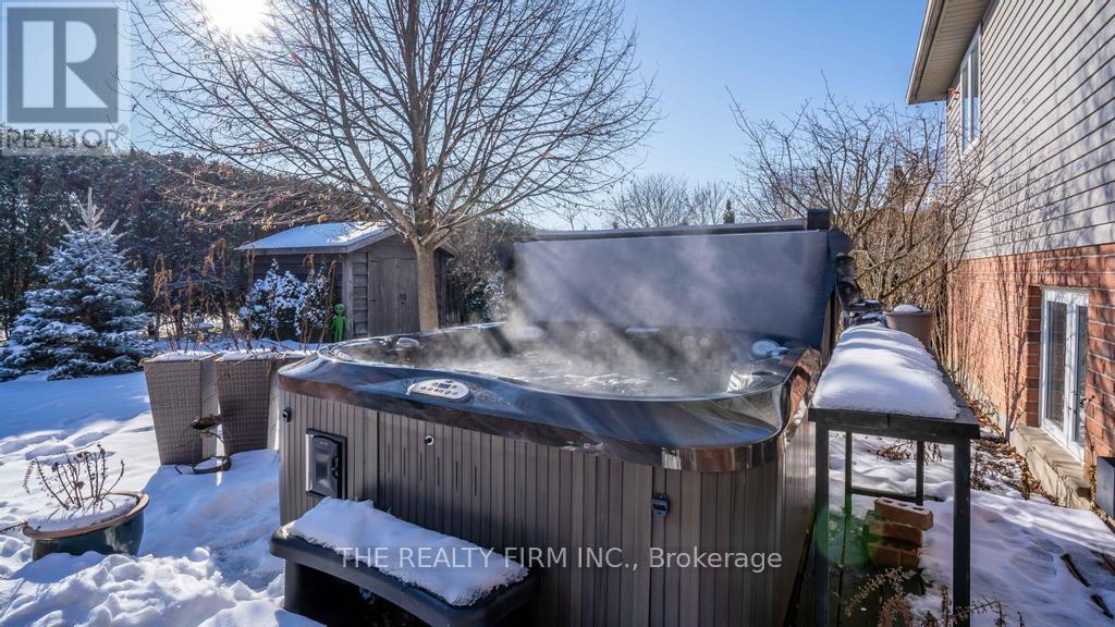 A 3 minute walk to the area's newest elementary school: Belmont Meadows opening Jan 2027! Discover quiet country living with many city perks in the charming town of Belmont: welcome to 140 Landon Lane. This custom designed corner split level residence is nestled on a premium lot--5 minutes to the 401 and 20 minutes to downtown London. Curb appeal abounds as the charming front exterior greets you with a roomy 2 car garage flanked by the stamped concrete drive and walkway to the front door. Enter through the elegant foyer which welcomes you to a lovely open concept design. Enjoy the upper living room which is resplendent with a huge window overlooking the landscaped front yard. Move forward into the stylish updated kitchen with quartz counters and many other features that will please any chef including centre island and corner pantry. Take in the gleaming hardwood floors. The Builder included enchanting vaulted ceilings throughout the main level giving a feeling of luxury. The roomy kitchen and dining area overlook the family room with garden doors opening to deck. Upstairs, double doors open into the primary bedroom where you can experience the beautiful bathroom with soaker tub and extensive walk in closet. The professionally finished lower level is family friendly with an oversized rec room enhanced with an elegant gas fireplace! The Backyard features a deluxe deck with handy awning to create the shade you need when enjoying a warm afternoon. Take in the newer Jacuzzi brand hot tub on chilly winter nights! This is truly a family home that provides upscale entertainment options for friends and family and is located on one of Belmonts' nicest streets. (id:64974)