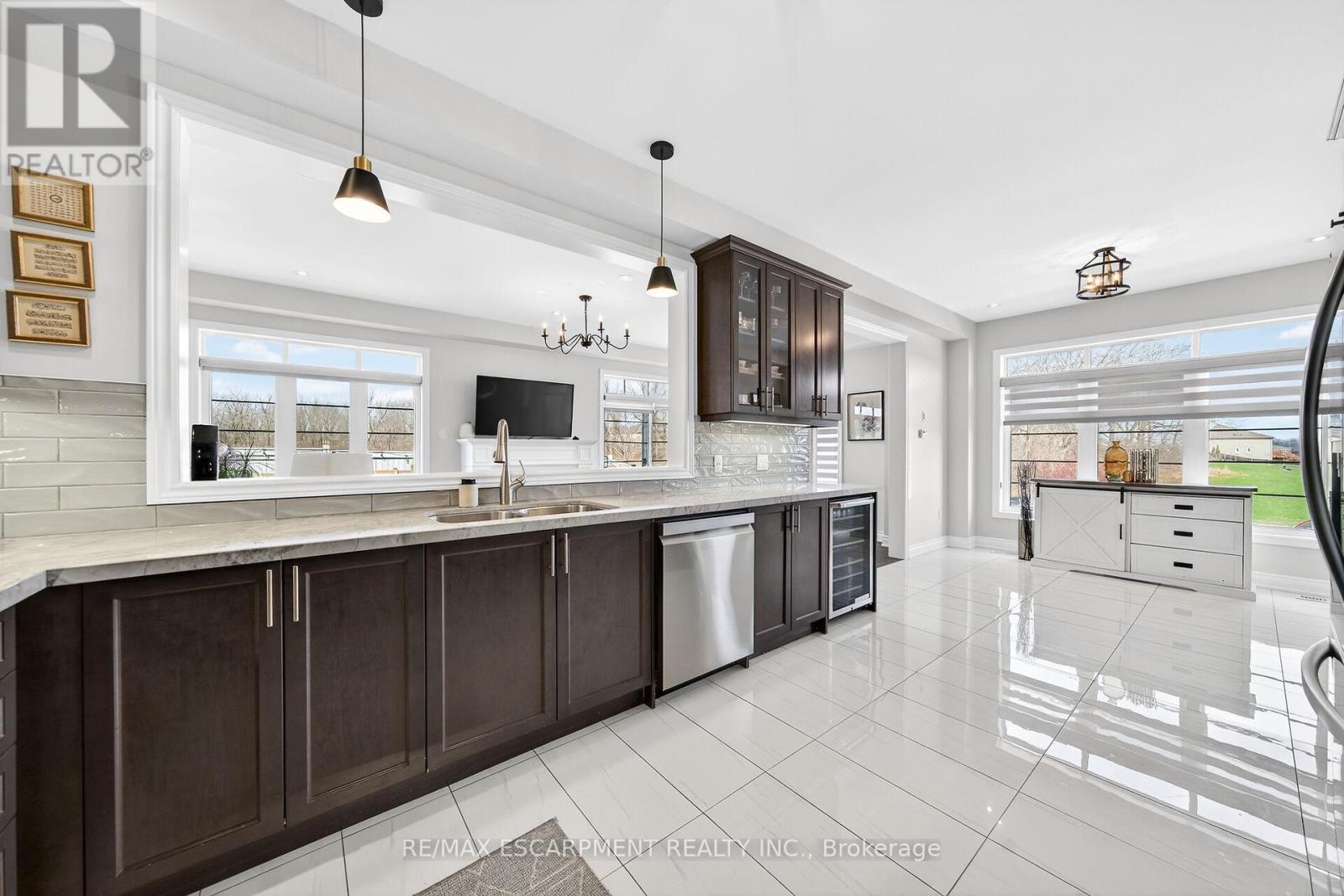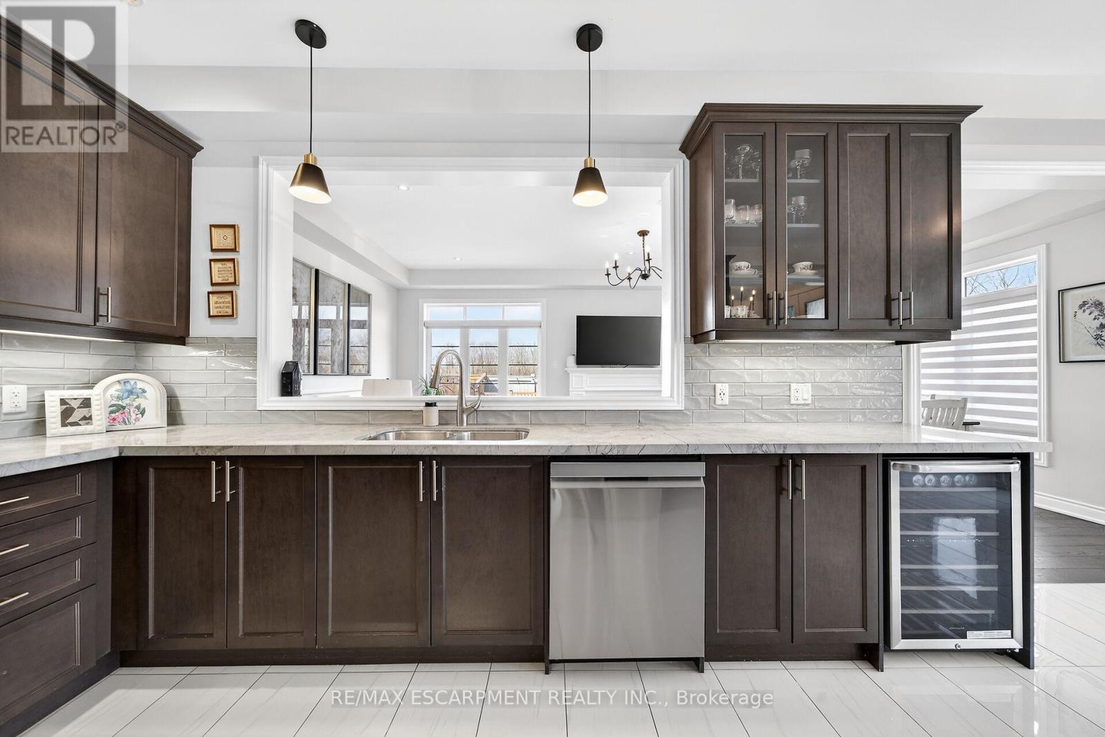 This is the home you've been waiting for! A true 10+++ property, proudly owned and meticulously maintained by its original owner. Just 7 years new, it's located in a highly desirable, family-friendly Ancaster neighbourhood-directly across from Tiffany Hills Park, steps to an elementary school, and offering the rare privacy of no rear neighbours. This custom-built stone and stucco two-storey home offers approximately 3,000 sq.ft. of finished living space. Featuring 4+1 generously sized bedrooms and 4 bathrooms, it also provides ample street parking and a fully fenced backyard complete with an oversized pressure-treated deck-perfect for entertaining. Enjoy bright natural light throughout, with a main floor boasting 9-foot ceilings and high-end finishes, including an upgraded kitchen, hardwood flooring, tile, and granite. The professionally finished basement includes a cold cellar, adding even more functional space. Ideally located close to schools, parks, shopping, transit, and offering quick access to Highway 403 and nearby amenities like Costco. NOTHING TO DO BUT MOVE IN AND ENJOY -this home must be seen! Priced to sell and rarely offered in this area. (id:64974)