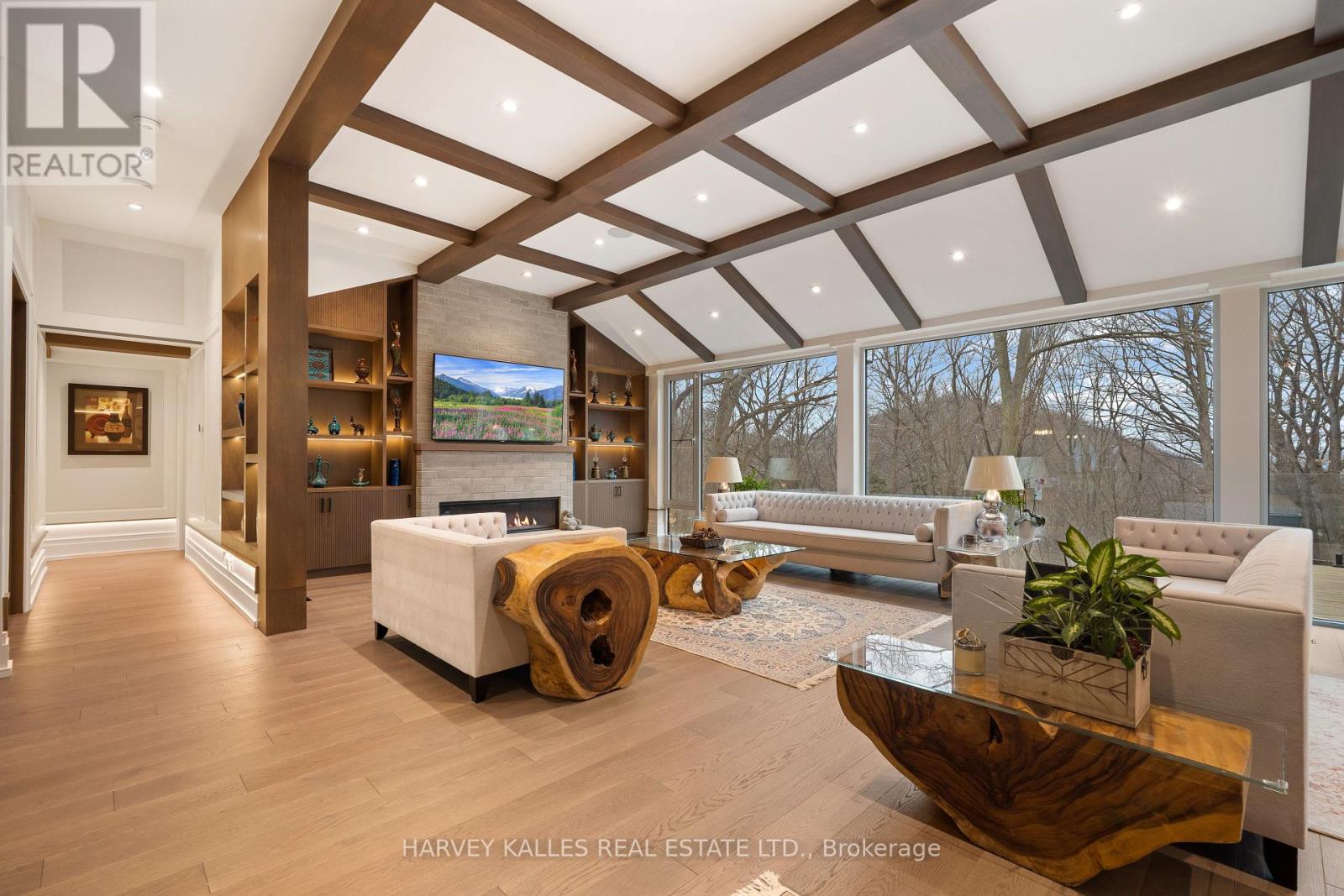 The Bungalow You've Been Searching For! Tucked Into A Breathtaking Natural Setting And Backing Directly Onto Earl Bales Park, The Ski Hill, And The Don Valley Golf Course, 140 Sandringham Drive Is A Rare Offering Where Contemporary Design Meets Chalet-Inspired Living. Set On An Extraordinary 100 X 442 Ft Lot, This Expansive Bungalow Captures Panoramic Views, Complete Privacy, And A Sense Of Serenity That Feels Miles Away From The City-Yet Remains Incredibly Connected. Designed To Celebrate Its Surroundings, The Home's Open-Concept Layout Is Anchored By Sweeping Sightlines And Walls Of Glass That Draw The Outdoors In. Principal Rooms Flow Effortlessly, Creating A Warm Yet Modern Atmosphere Ideal For Both Everyday Living And Elevated Entertaining. Step Out From The Main Floor Onto A Beautiful Rear Deck-Perfectly Positioned For Barbecuing, Hosting, Or Simply Taking In The Tranquil, Tree-Lined Vistas. The Main Level Offers Three Spacious Bedrooms, Highlighted By A Stunning Primary Retreat That Feels Like A Private Escape. The Walk-Out Lower Level Extends The Living Space Seamlessly, Featuring Two Additional Bedrooms Including A Secondary Primary Suite-Ideal For Guests, Extended Family, Or Multi-Generational Living. Thoughtfully Integrated Throughout Are Multiple Hidden Rooms, Adding An Element Of Intrigue And Functionality Rarely Found. With Its Elevated Positioning, Unmatched Lot Depth, And Direct Connection To Some Of Toronto's Finest Green Space, This Home Delivers A Lifestyle Defined By Nature, Privacy, And Design. Located Within A Coveted School District And Offering Exceptional Access To Major Highways, 140 Sandringham Drive Is A True Retreat Without Compromise. (id:64974)