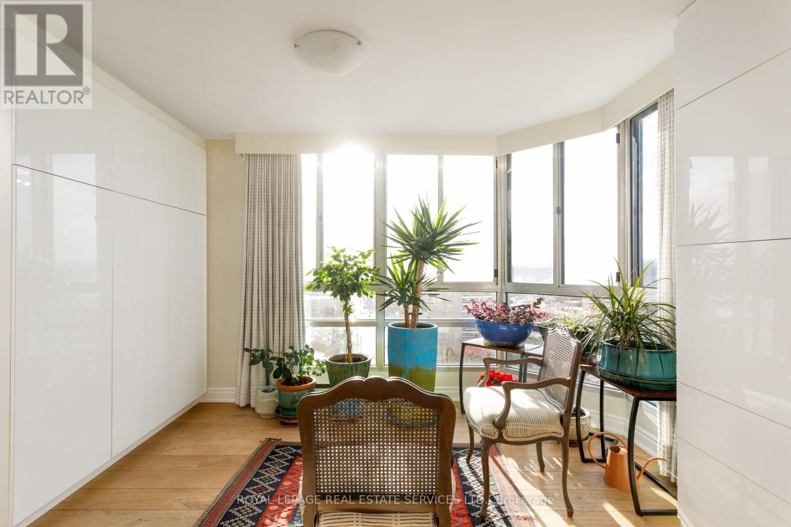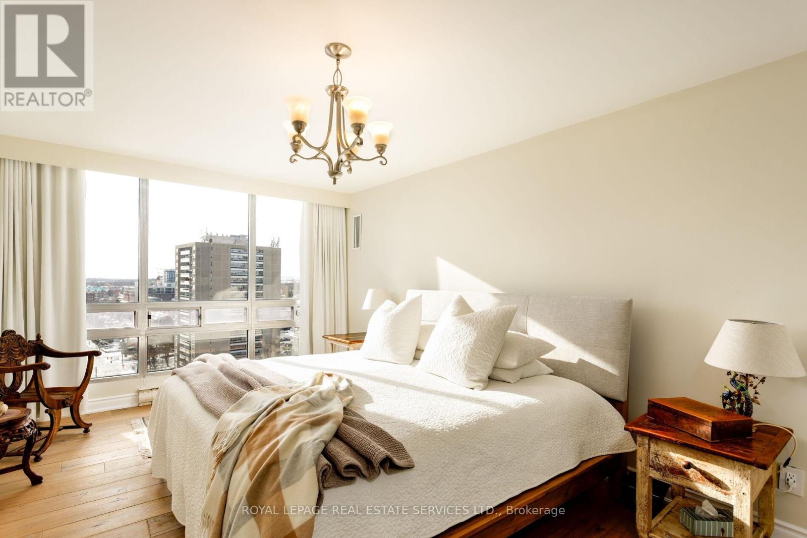 Luxury waterfront condominium living awaits at Ennisclare II on the Lake, one of Bronte's most prestigious, award-winning communities, offering breathtaking escarpment, skyline, & lake views in the heart of vibrant Bronte. This exceptional Cambridge model suite spans approximately 1,830 sq. ft. of elegant, single-level living space & features 2 spacious bedrooms, 2 full bathrooms, a den, & a sun-filled solarium. Oversized windows with lake glimpses & escarpment vistas flood the home with natural light by day & showcase sparkling city lights by night. Thoughtfully renovated & beautifully appointed, the suite boasts wide-plank engineered oak hardwood flooring, deep baseboards, custom cabinetry & built-ins, wood feature walls, custom blinds, & solid surface countertops, along with renovated bathrooms & kitchen. The formal dining room overlooks a dramatic sunken living room, ideal for entertaining, & the stylish kitchen offers custom cabinetry, under-cabinet lighting, quartz countertops, stainless steel appliances, & a bright breakfast area with wall-to-wall windows. Relax in the open-concept den & sunken solarium with wrap-around windows & built-in cabinetry, or retreat to the oversized primary bedroom featuring mirrored custom wardrobes & a luxurious 3-piece ensuite with custom cabinetry & an oversized glass shower. A second bedroom, a chic 3-piece bathroom, & a large laundry/utility room complete the suite. Two underground parking spaces (tandem) & one locker are included. Enjoy a truly walkable lakeside lifestyle, just steps to Bronte Harbour, waterfront trails, beaches, & the shops & restaurants of Bronte Village, with outstanding building amenities completing this refined offering. (id:64974)