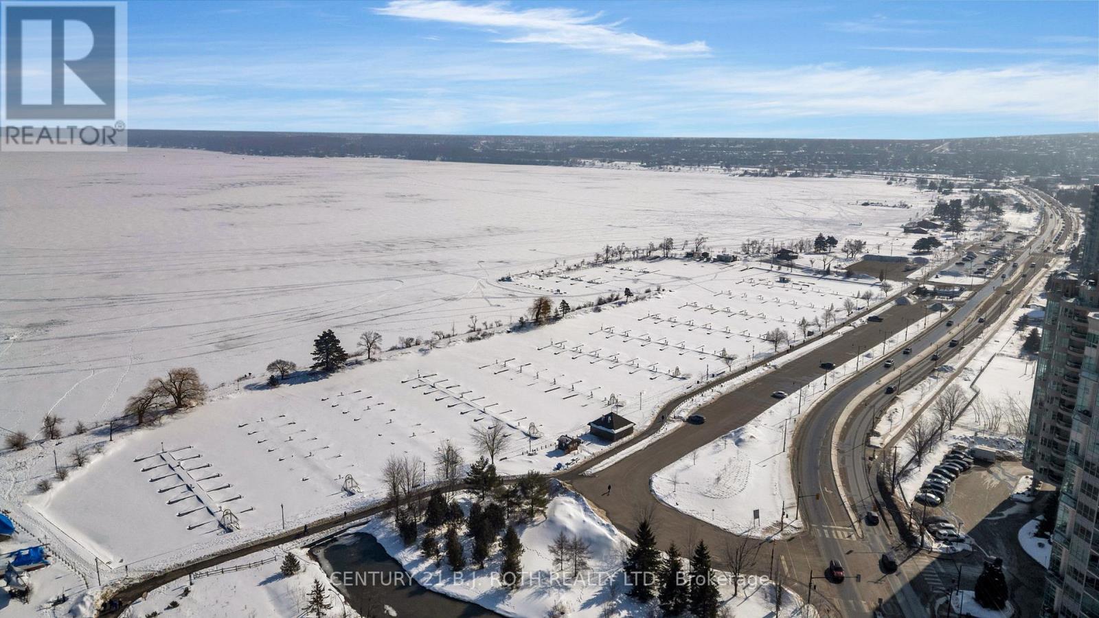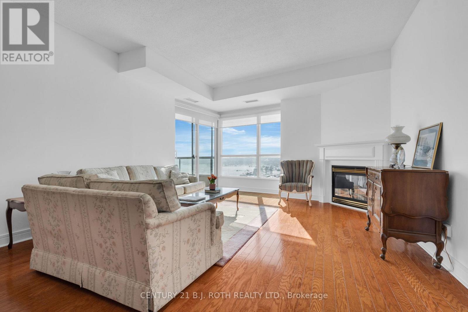This beautifully maintained 2 bedroom plus den suite offers 1,442 sq ft of carpet free living with breathtaking water views of Kempenfelt Bay. Designed for both comfort and entertaining, the open-concept layout is enhanced by large windows that fill the home with natural light and a cozy gas fireplace. Step out onto the open balcony and take in the stunning views of the bay. The primary bedroom retreat features double closets and a private 4-piece ensuite, while the generously sized second bedroom also enjoys water views. A versatile den provides the perfect space for a home office or guest area. The suite also includes a second 4-piece bathroom and convenient in-suite laundry. Complete with one parking space and one locker, this exceptional condo offers access to premium building amenities including a gym, indoor pool, hot tub, exercise room, and library. Enjoy maintenance-free living just steps from Barrie's waterfront, downtown dining, and scenic walking trails. Book your showing today! (id:64974)