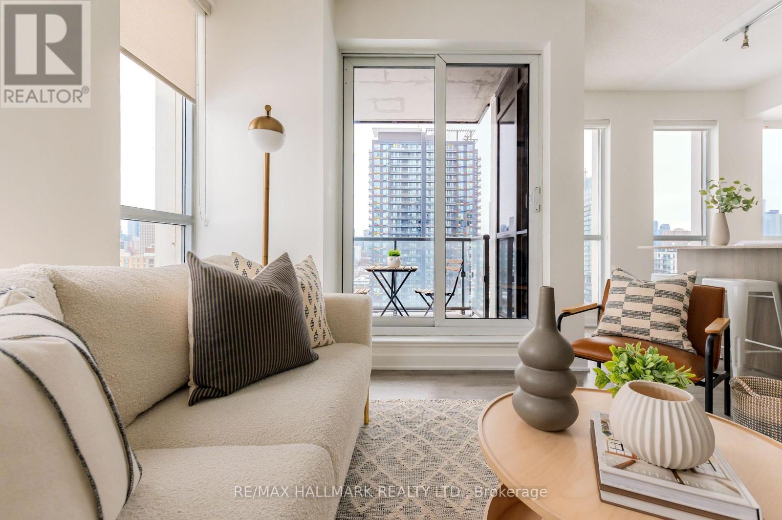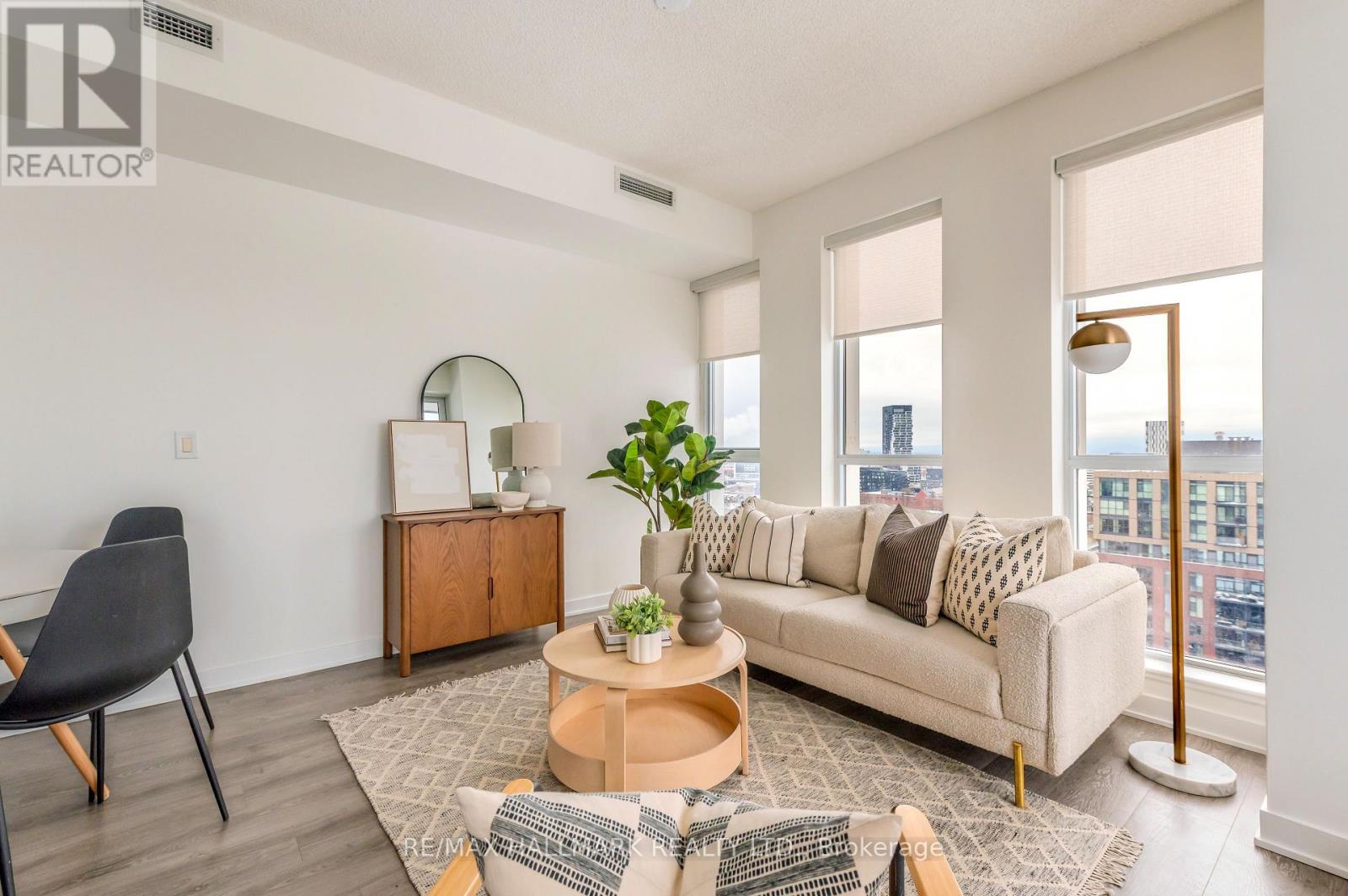 This thoughtfully designed 1 bedroom, 1 bathroom bright corner suite on the 14th floor, offers 691 sq ft plus a 59 sq ft balcony, with floor to ceiling windows that flood the space with natural light throughout the day and stunning city views. Functional open concept layout featuring a modern kitchen with island, granite countertops, stainless steel appliances, and engineered wood floors. The living and dining areas connect seamlessly, creating a comfortable space for everyday living and entertaining. Spacious bedroom, full bathroom, and a welcoming foyer with storage and coat closet add to the suite's practicality.Well maintained and move in ready with in suite stacked washer and dryer, window blinds, all existing light fixtures, one parking space, and one locker included.Located at One Park Place, residents enjoy exceptional amenities including a large fitness centre, yoga and pilates studio, squash courts, half court basketball gym, party room, billiards room, media room, rooftop terrace with BBQ areas and gardening plots, guest suites, visitor parking, bike storage, 24 hour concierge, and security.Prime Regent Park location steps to parks, cafes, community spaces, groceries, TTC, and easy access to downtown. Ideal opportunity for first time buyers, investors, or anyone seeking a bright, efficient condo in a vibrant and connected neighbourhood.Maintenance fees include water, gas for heating, building insurance, and common elements. (id:64974)