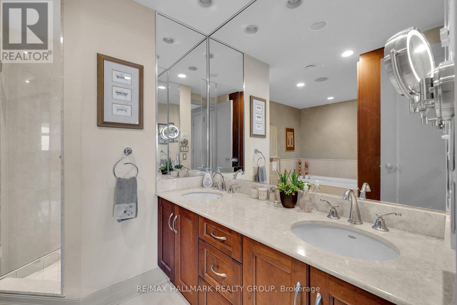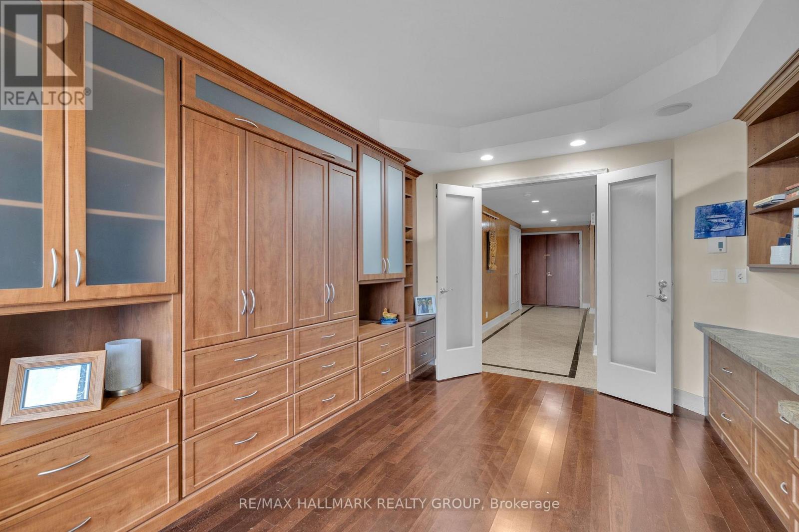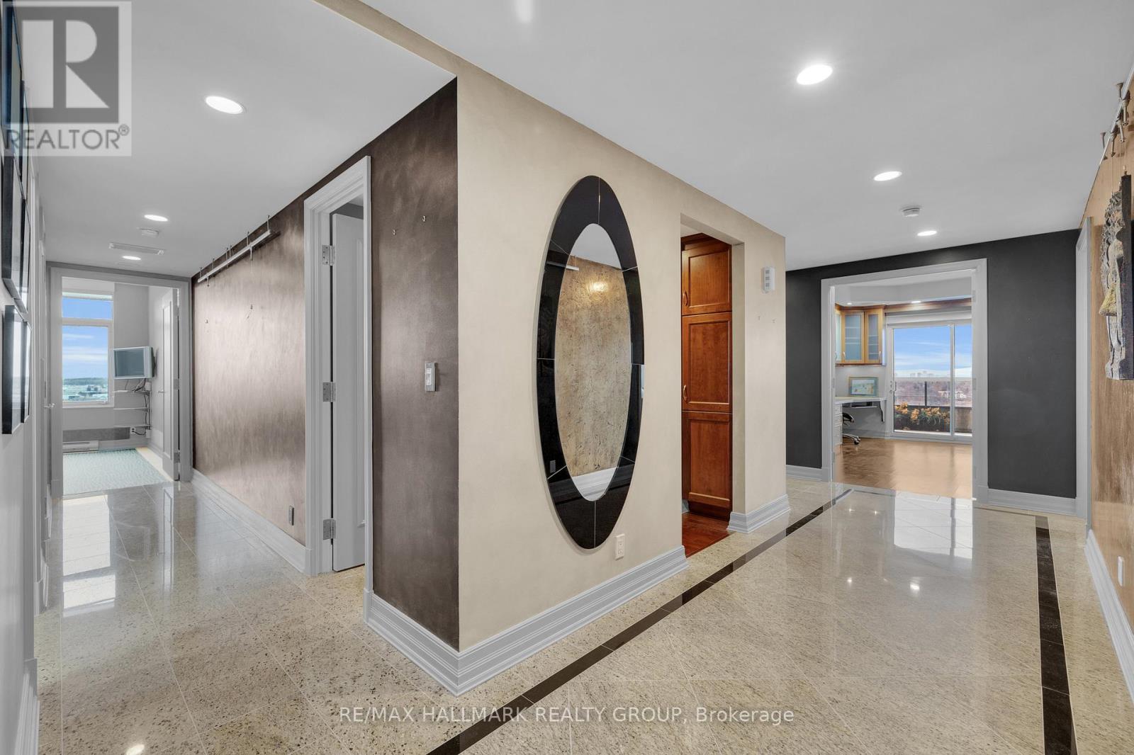 Truly one of the best condominium residences in Ottawa! Seldom available "06" layout at Riverside Gate, CORNER UNIT! Perched on the 14th floor, this unique and refined condo showcases breathtaking, open northwest vistas overlooking the Rideau River, Downtown Ottawa, and the Gatineau Hills. The original owner has modified and added upscale finishing. Ideal for art collectors. Must be seen. The Versailles offers 2169 sqft , 2 Bedroom + Den and 3 Bathrooms, 2 storage lockers, with 2 spacious parking spaces and a large, recessed, glass enclosed terrace. Secure gated community, concierge on duty, TENNIS COURTS, exercise room, indoor pool with sun terrace, sauna, party room, BBQ terrace, billiards room, library, hobby room, bicycle storage room, guest suite, underground parking with car wash bay, storage facilities on each floor. Flexible possession. 24 h irrevocable on offers. (id:64974)