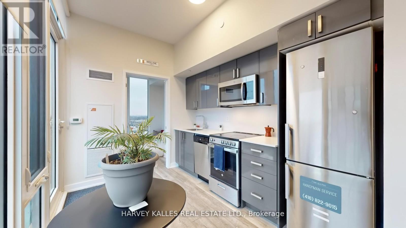 Experience elevated living at Penthouse 1406 in The Rocket Condos - a rarely available, sun- drenched penthouse crafted for those who appreciate refined urban style. This sophisticated, south-facing 2-bedroom residence soars with over 9' ceilings and sweeping east-to-west panoramic views, creating a luminous, airy ambiance that sets it apart from anything else in the building. Inside, the suite has been thoughtfully upgraded with premium luxury vinyl flooring, an enhanced designer kitchen complete with upgraded cabinetry, quartz counters, and a full-height slab backsplash. Stainless steel appliances, ensuite laundry, sleek pot lighting, and floor-to-ceiling windows with modern roller shades all contribute to a polished, contemporary feel. Residents enjoy an impressive array of amenities, including a 24-hour concierge, a fully equipped fitness centre with yoga and aerobics studio, a chic party lounge with private catering kitchen, an outdoor terrace with BBQs, and beautifully landscaped grounds designed for relaxation. Perfectly positioned with TTC access quite literally at your doorstep, steps from Wilson Station, and just moments from Yorkdale Shopping Centre, Costco, top dining, and major commuter routes (401, 400 & Allen Rd). High-speed internet is included, with paid visitor parking available. Penthouse 1406 offers the rare blend of comfort, convenience, and elevated style - a standout opportunity in one of Toronto's most connected neighbourhoods. (id:64974)