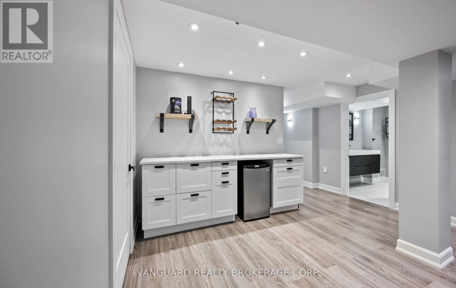 Stunning, detached home in Milton’s highly sought-after Beaty neighbourhood! Offering over 4,000 sq ft of beautifully finished living space, this 4-bedroom, 4-bathroom home is designed with modern living and entertaining in mind. The main floor features engineered hardwood throughout, timeless wainscoting trim, a large dedicated office, and a beautiful, open-concept kitchen/dinette with upgraded appliances, an island w/seating, and a walkout to a wood deck and fully landscaped backyard—complete with a cabana bar/shed and wiring ready for a hot tub! The family room is anchored by a cozy gas fireplace, perfect for relaxing evenings. Upstairs also features engineered hardwood throughout, generous bedroom sizes, a spacious primary retreat with a large walk-in closet and luxurious 5-piece ensuite, and a cozy sitting area by the landing. A versatile bonus room connects two of the bedrooms—ideal as a shared playroom, office/den, or walk-in closet. The convenience of a second-floor laundry room adds even more practicality. The fully finished basement offers laminate flooring, a kitchenette equipped with an island w/seating, dining area, family room w/electric fireplace, rec room, and a 3-piece bath—perfect for extended family, teens, or entertaining. Additional features include carpet free home throughout, roof (2022), furnace (2020), A/C (2022), and an attached 2-car garage with inside entry. Located just steps to parks, schools, transit, and all amenities, this home is perfect for families looking for space, function, and style in one of Milton’s most family-friendly communities. (id:64974)