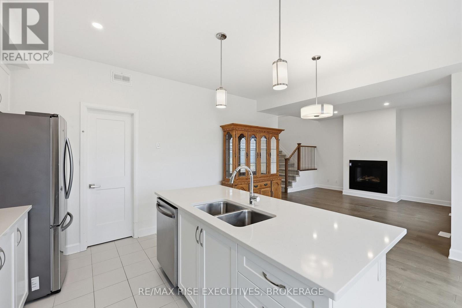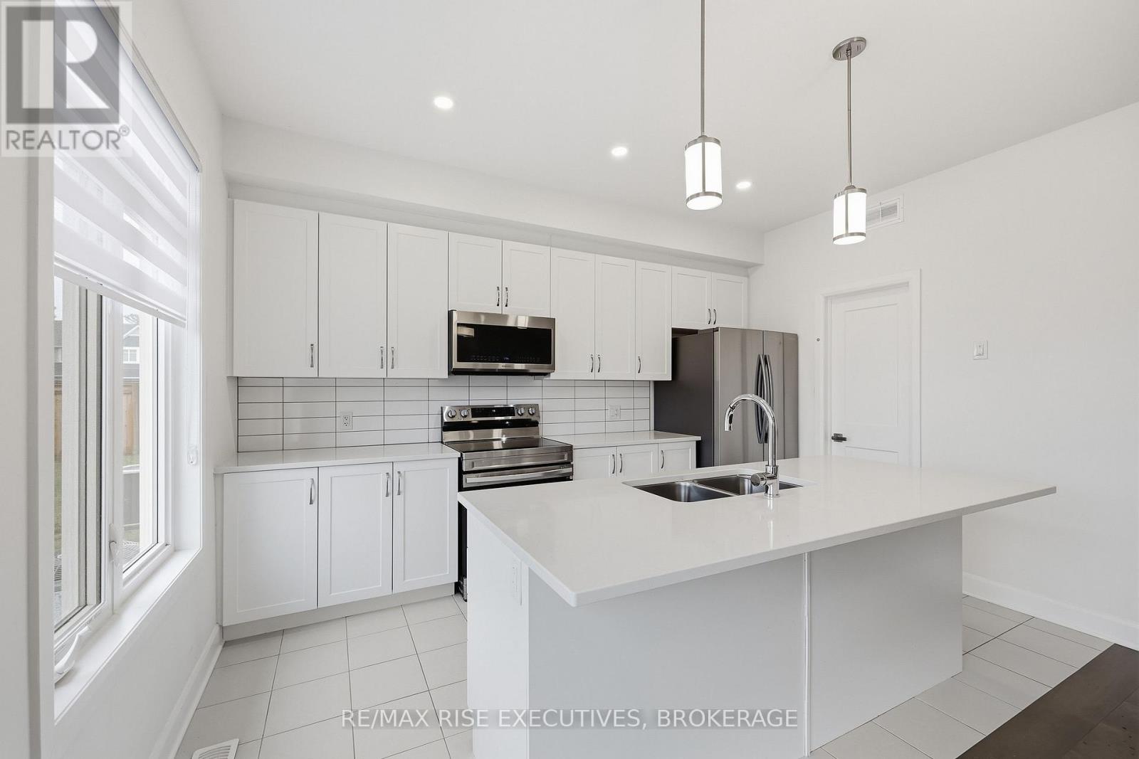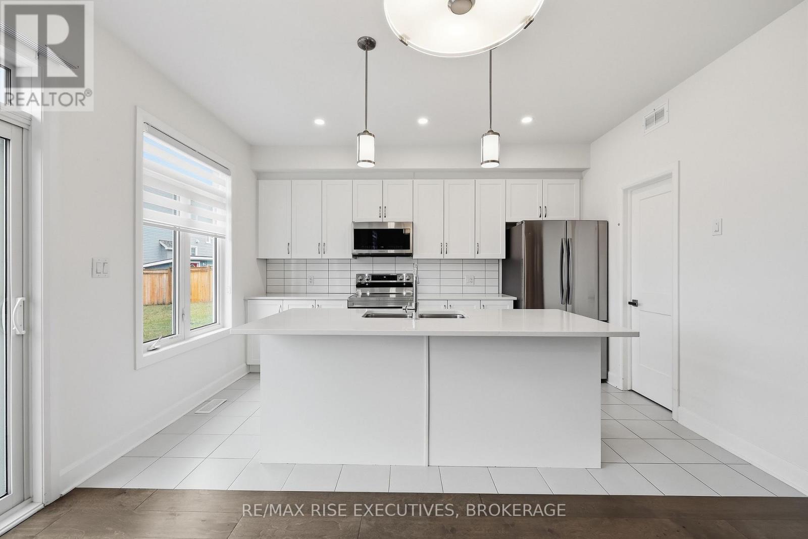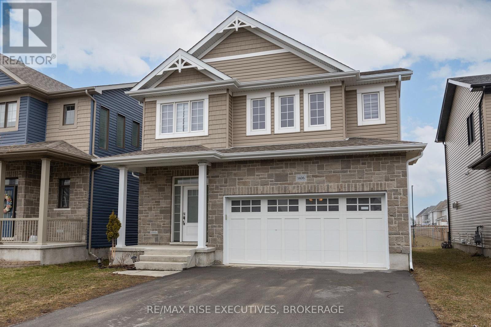 Welcome to 1406 Tulip Drive. A bright, open-concept home set on a premium lot in Woodhaven, backing directly onto the yard of St. Genevieve School - a rare find for families. This 3 bed,2.5 bath home offers 9' main floor ceilings, quartz countertops throughout, a large kitchen island, walk-in pantry, and stainless steel appliances. Upstairs, you'll appreciate the hardwood hallway, along with a spacious primary suite featuring a walk-in closet and ensuite with double sinks and a glass/tile shower. Two additional generously sized bedrooms and convenient second-floor laundry complete the upper level. Additional features include a double car garage, central air, HRV, and a basement bathroom rough-in for future potential. Move-in ready and ideally located in one of Kingston's most popular west-end communities - just minutes to shopping, restaurants, and everyday amenities. Book your showing today! (id:64974)