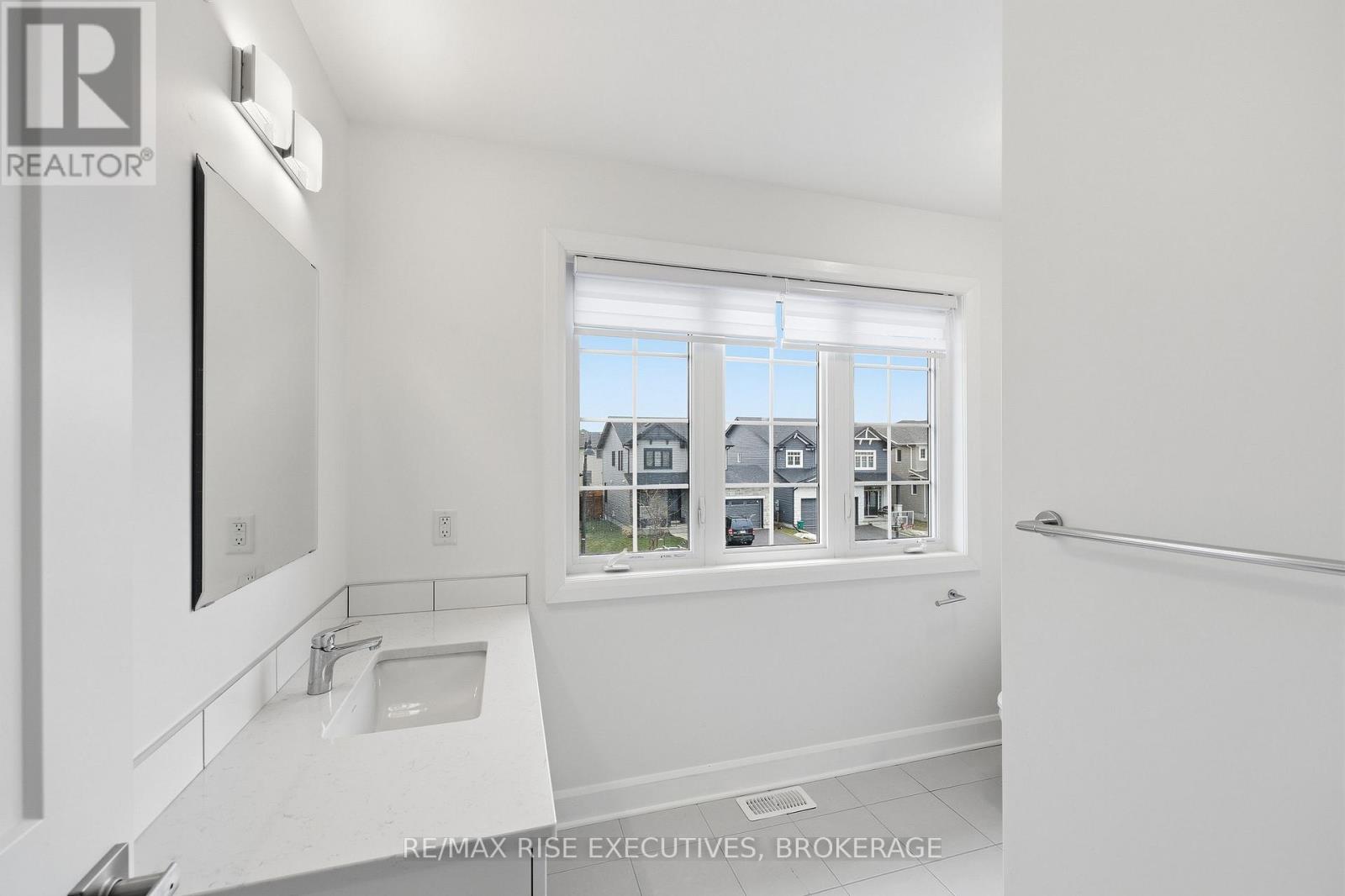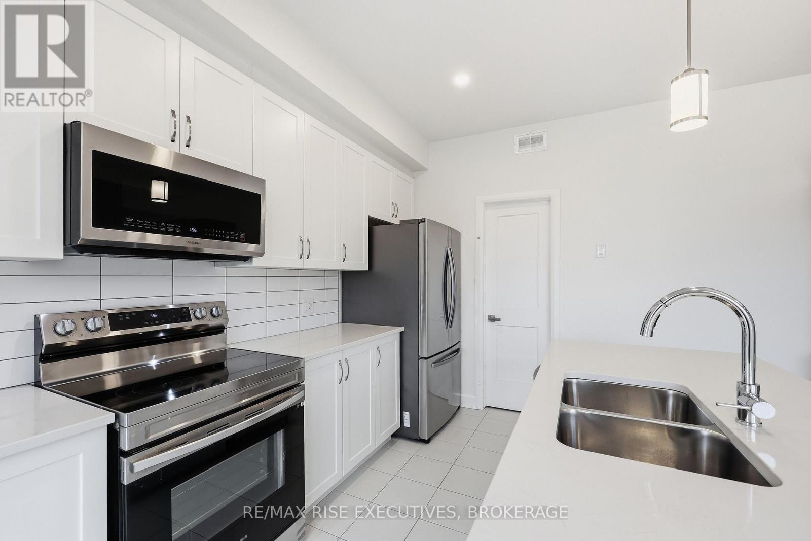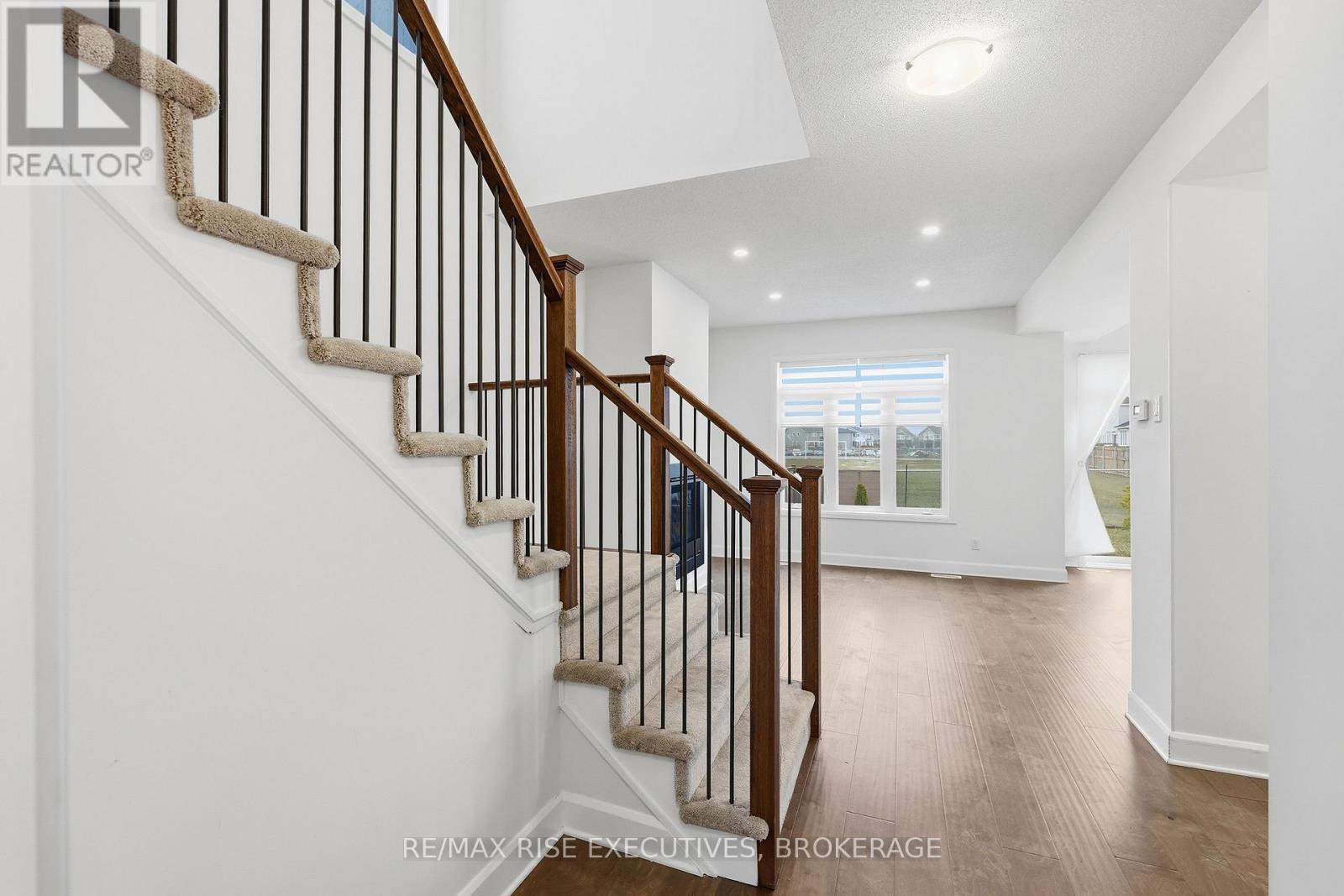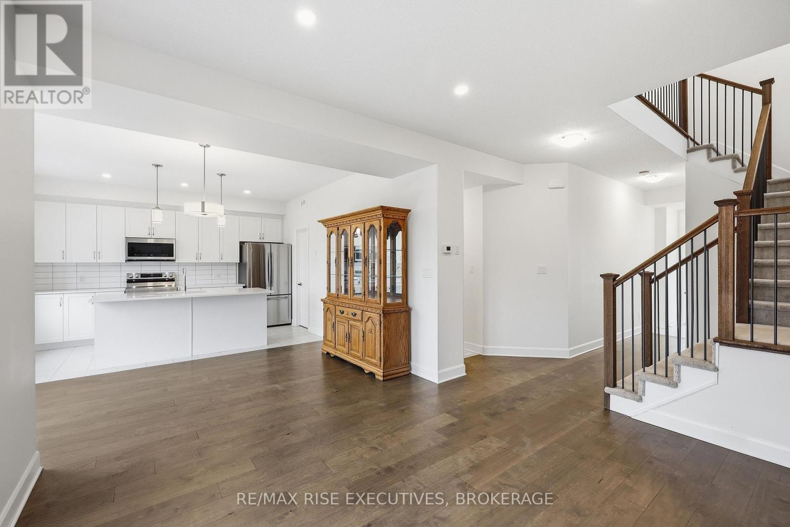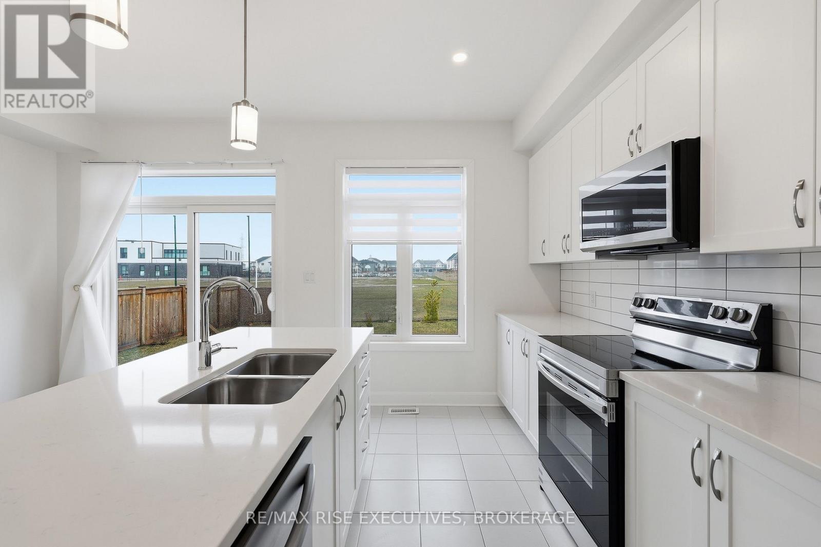 Welcome to 1406 Tulip Drive. A bright, open-concept home set on a premium lot in Woodhaven, backing directly onto the yard of St. Genevieve School - a rare find for families. This 3 bed,2.5 bath home offers 9' main floor ceilings, quartz countertops throughout, a large kitchen island, walk-in pantry, and stainless steel appliances. Upstairs, you'll appreciate the hardwood hallway, along with a spacious primary suite featuring a walk-in closet and ensuite with double sinks and a glass/tile shower. Two additional generously sized bedrooms and convenient second-floor laundry complete the upper level. Additional features include a double car garage, central air, HRV, and a basement bathroom rough-in for future potential. Move-in ready and ideally located in one of Kingston's most popular west-end communities - just minutes to shopping, restaurants, and everyday amenities. Book your showing today! (id:64974)