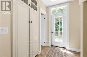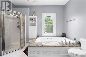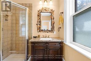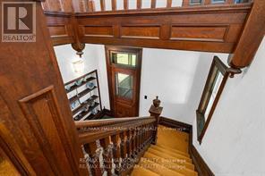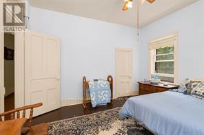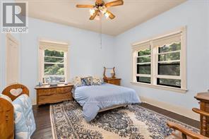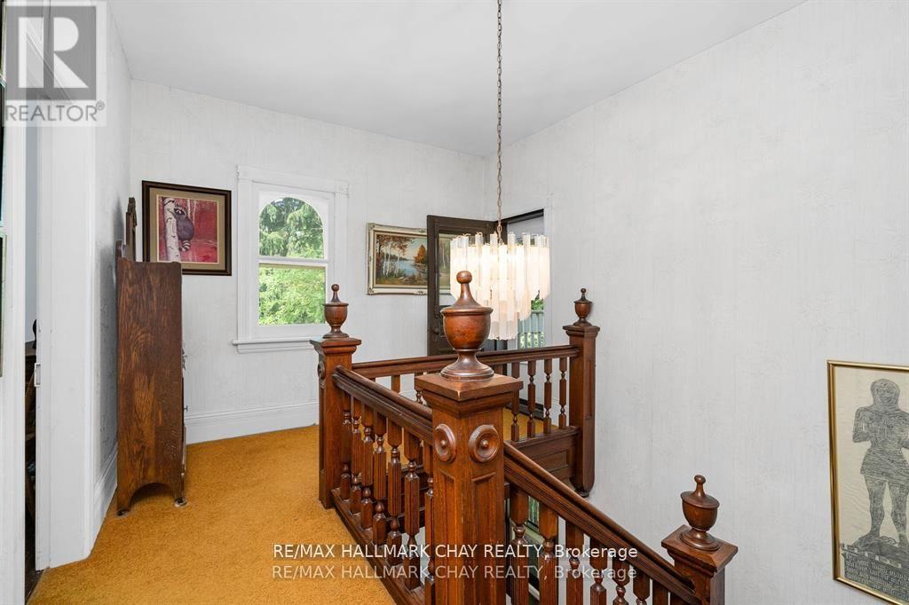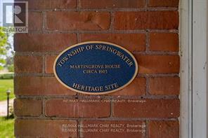 Welcome to Martingrove! One of springwaters designated Heritage homes. The handcrafted details are stunning, this home will call you... Built in 1906 on a private 2.57 acre property surrounded by mature trees and backing and siding onto a farm field. Sound of birds and tanquility. Original Wavy stained glass windows and stained glass transom windows with Fleur-de-lis above doorways. Hardwood flooring on main and upper. Solid field stone wood fireplace surround. Two bathrooms 3 piece on main and very large spa size bathroom on upper. Updated electrical, metal roof. The hand crafted railing and balusters are breath taking.Back staircase from kitchen with a gorgeous amber glass fixture and fleur de lis transom window. Wrap around porch for serene outdoor seating. Hot Tub off the back deck. Solar panel contract that draws income. This home is charming and grand. (id:64974)