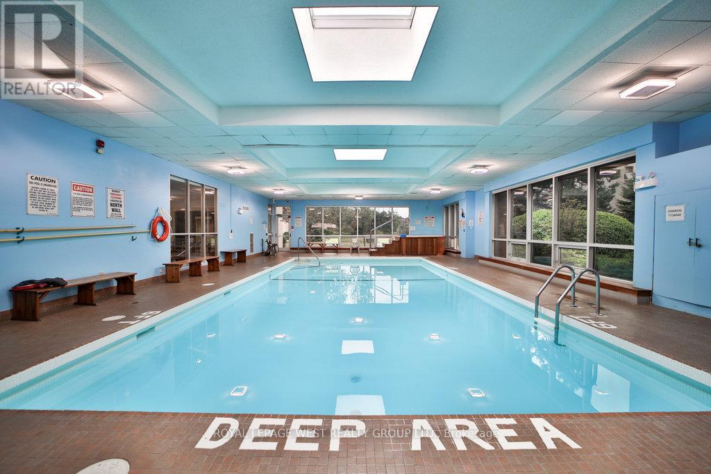 Welcome to this very spacious 2+1 bedroom corner suite located in the highly sought after Markland Wood neighbourhood. This suite offers a very functional den, perfectly situated off the eat-in kitchen with built-in oak cabinetry. Huge living and dining room combination with south/west-facing private balcony. This 1,275 wq.ft. apartment is full of natural light with laminae floors throughout. It offers large bedroom. Primary bedroom is with ensuite bathroom. A convenient big in-suite locker with organising shelving. Resort living at its best. Millgate Manor condominium is a well-managed, upscale building known for its resort style amenities including indoor and outdoor pools, gym, tennis court, party room and beutifully maintained grounds. Conveniently located near shopping, transportation, Etobicoke Creek nature trails, Central Park, Markland Wood Golf club. Easy access to Pearson Airport. Walking distance to shcools and one bus to Kipling station. The building is abosolutely smoke free. (id:64974)