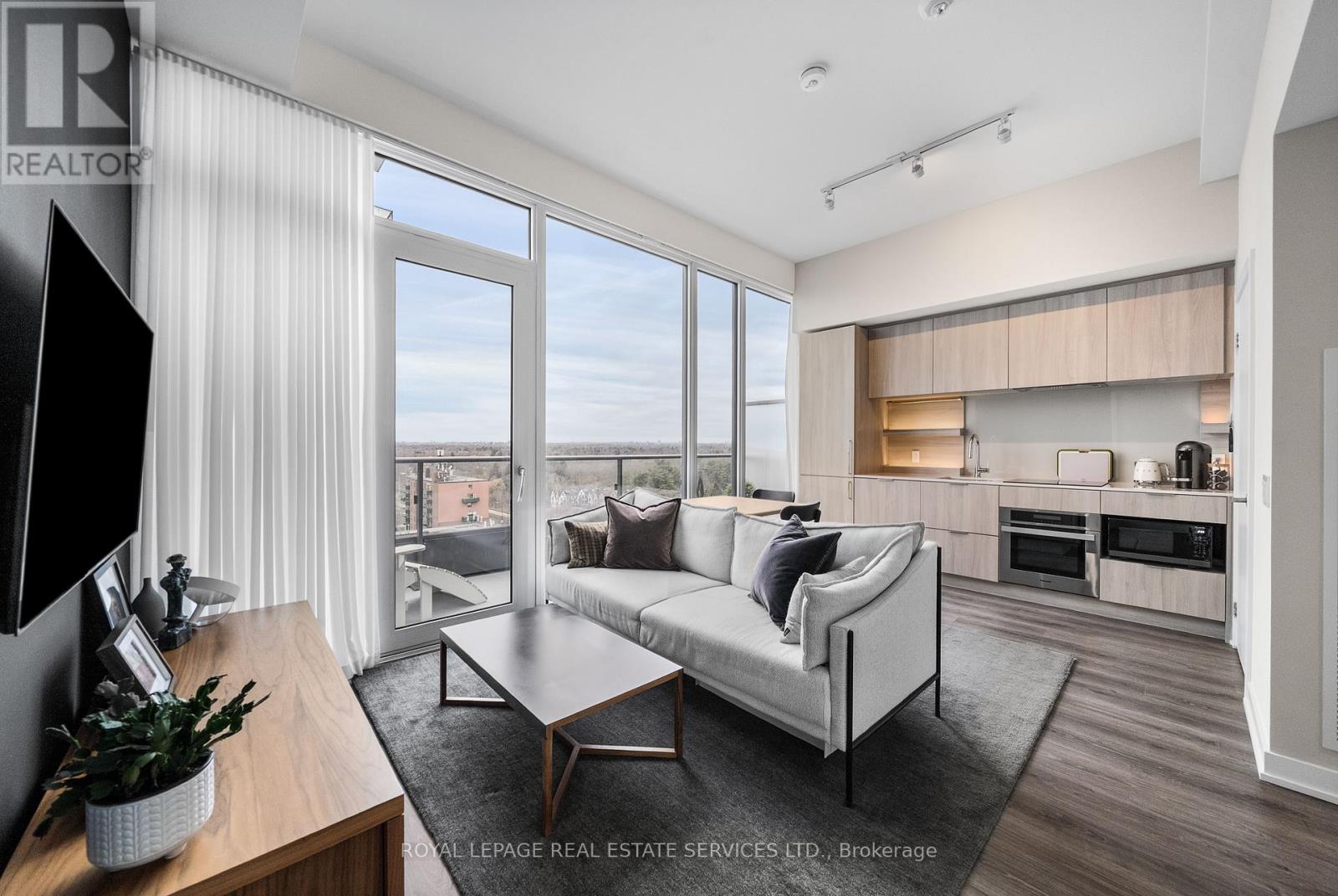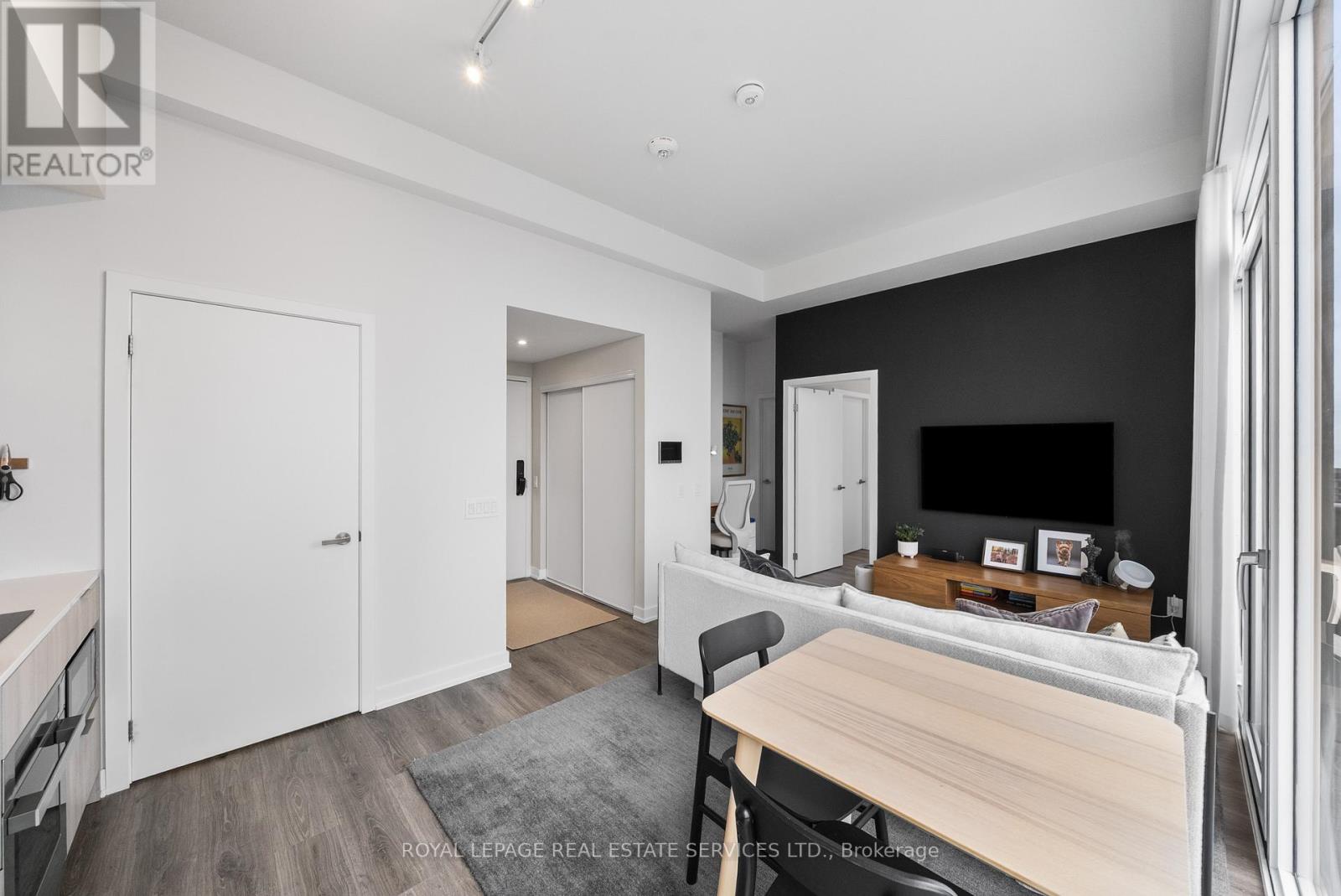 This 1 bedroom at Westport is one of those apartments that just feels right the moment you walk in. Bright, open, and thoughtfully finished, it features 10ft ceilings, full-height windows, and a layout that makes the most of the space. The living area opens to a large balcony with clear views out to the lake, giving you a great indoor-outdoor feel. The kitchen is sleek and integrated, with panelized appliances and a clean, minimal design. The bedroom is tucked away for privacy with blackout shades, and the bathroom includes a soaker tub and shower. Freshly painted and move-in ready. Includes parking, locker, internet, and in-suite laundry. Partial furnishings and flexible short-term options can be arranged. (id:64974)