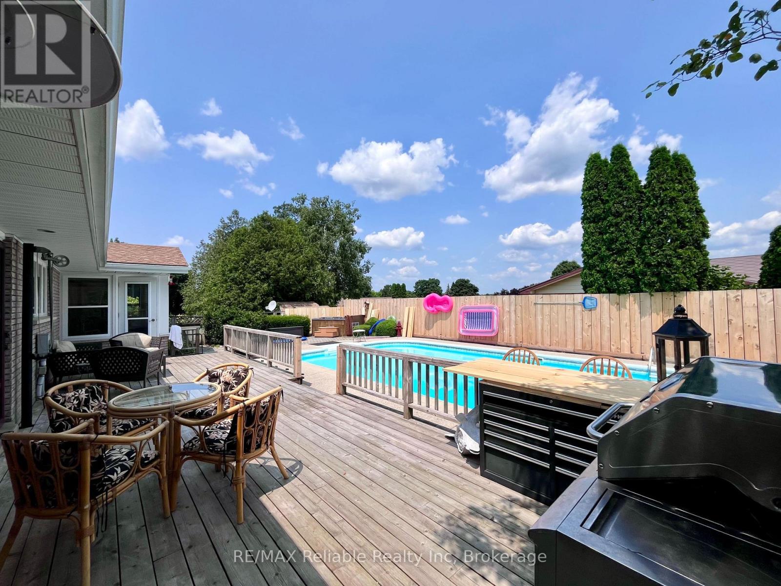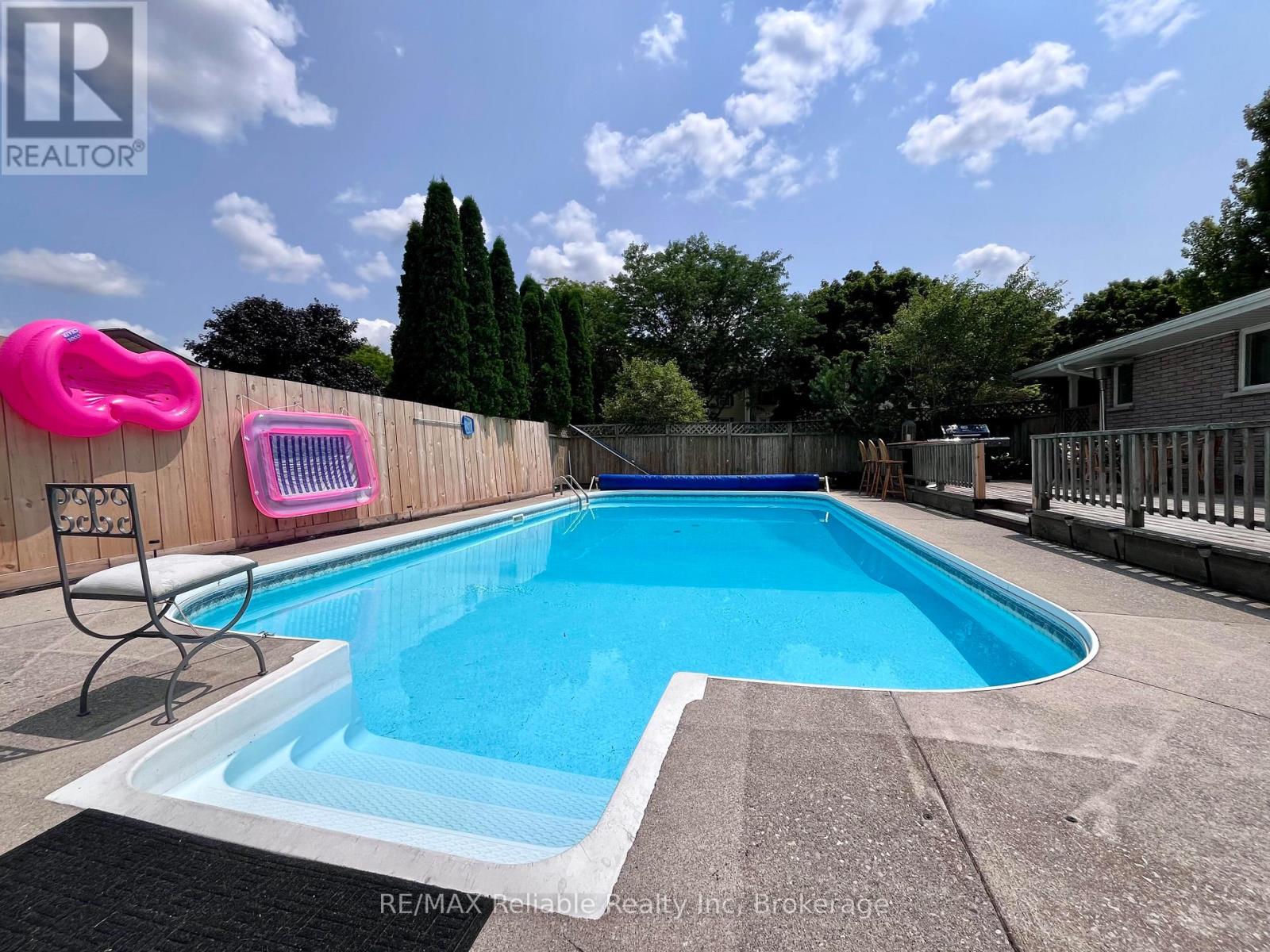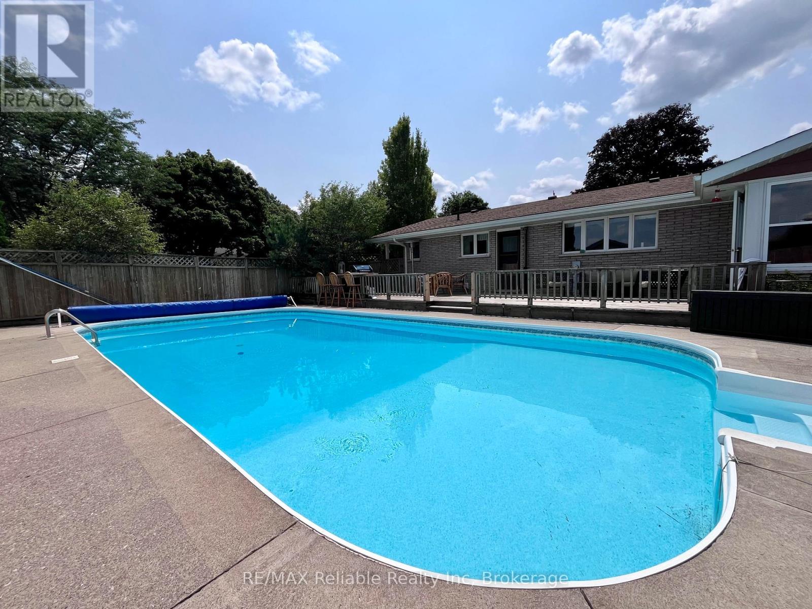 Welcome to 141 Charles St! This sprawling brick bungalow is situated on a 1/2 acre corner lot. Boasting over 3,750 sq ft of finished living space, this home has so much to offer! Step into the welcoming foyer and you are immediately drawn into the generously sized family room, complete with a cozy natural gas fireplace. Adjacent to the family room, the sunroom is the perfect place to enjoy your morning coffee, with walkout access to the backyard oasis. The updated, eat-in kitchen features built-in appliances and a large picture window that offers a stunning view of the deck and pool area. Just off the kitchen you will find a conveniently located laundry room with in-floor heat, a 2 pc bathroom and access to the double car garage. You will appreciate the recently updated flooring in the kitchen, formal dining room and living room. Several light fixtures have been updated, as well as refreshed finishes in the main floor 4 pc bathroom. The primary bedroom offers both comfort and convenience, boasting 2 closets and a 3 pc ensuite. 2 additional bedrooms complete the main floor. The fully finished basement is an entertainer's dream. The rec room, to the right of the stairs has a pool table and generous storage closets. A 3 pc bathroom, as well as 2 additional bedrooms and an office/hobby room can be found just off of the rec room. The utility room includes a work bench, extra storage space and a cold cellar. A second oversized rec room with a wet bar provides the ultimate space for movie nights and games. The backyard is a perfect place for hosting family and friends. There is a large deck, a heated inground pool, as well as a hot tub and newer privacy fencing! 2 additional storage sheds add even more convenience. This home has a great location, close to schools, hospital, shopping, recreation, a playground & the Maitland River. Call today for more information or to book a private viewing. (id:64974)