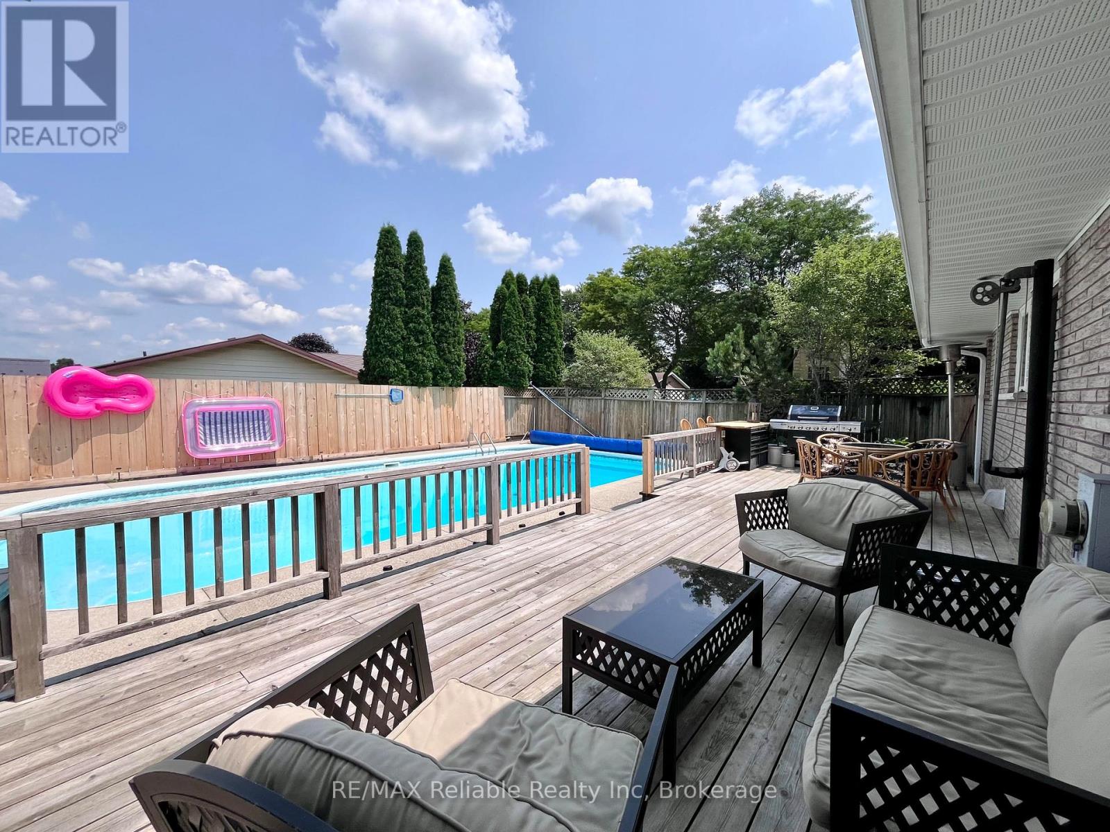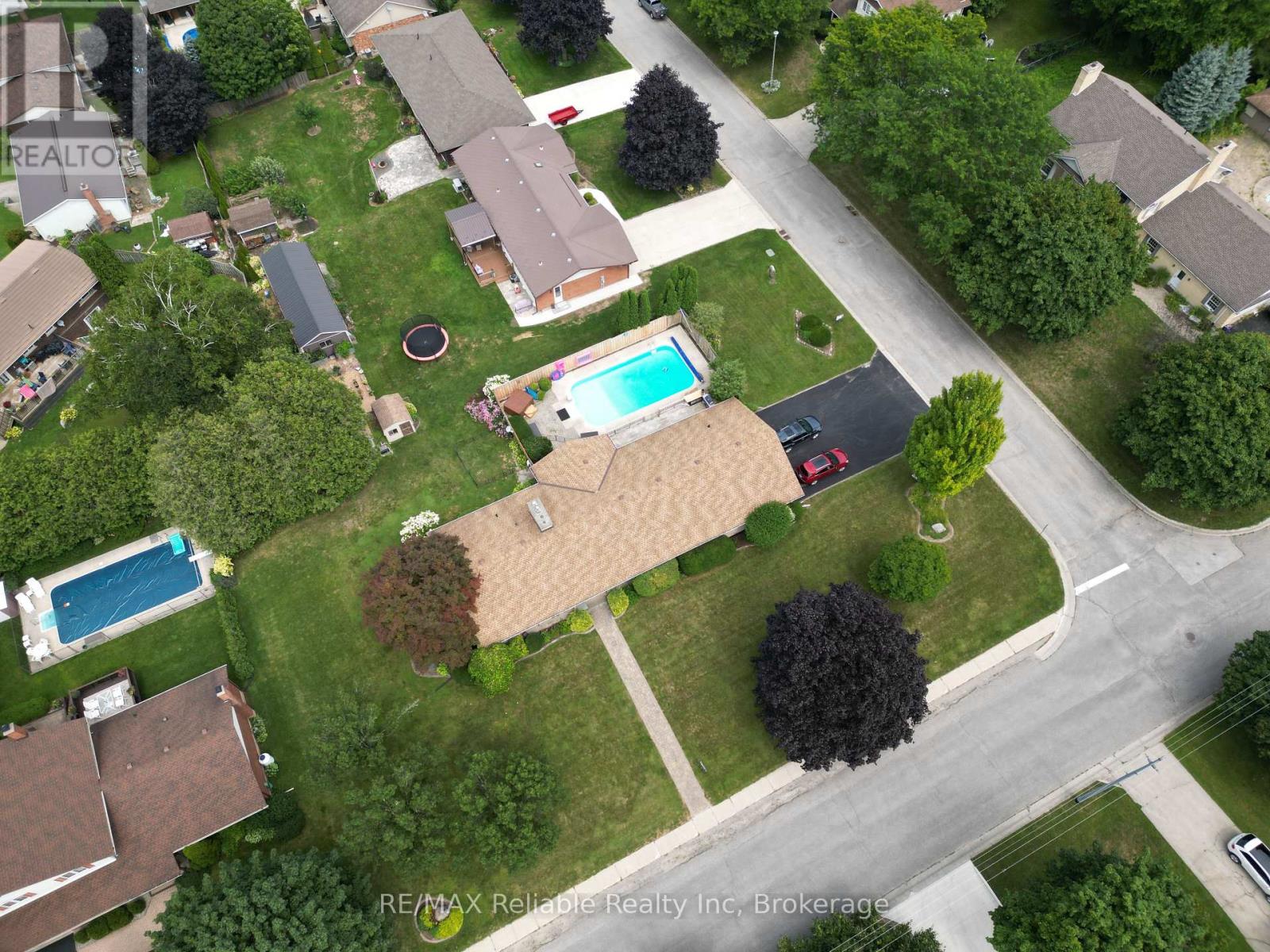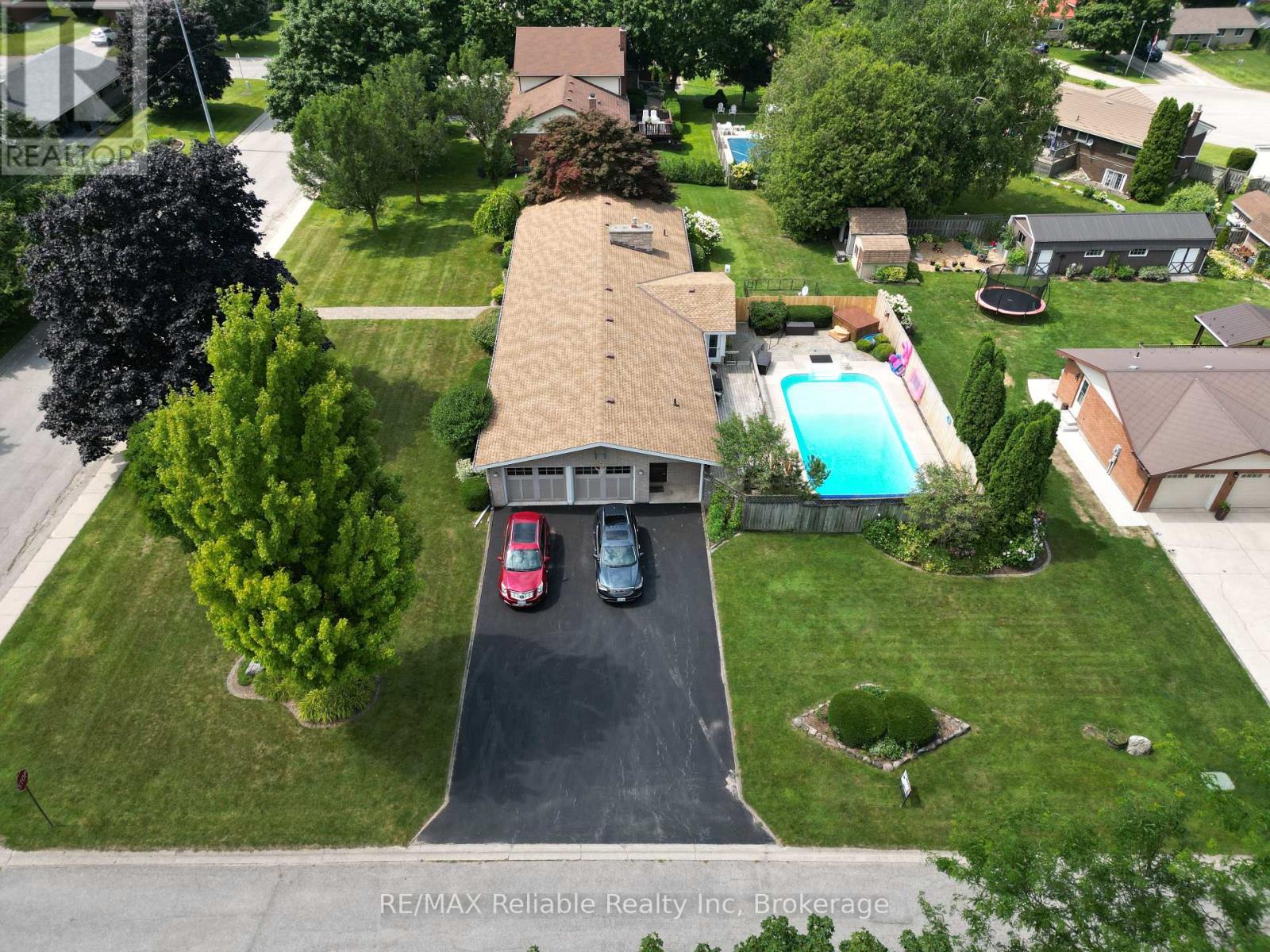 Welcome to 141 Charles St! This sprawling brick bungalow is situated on a 1/2 acre corner lot. Boasting over 3,750 sq ft of finished living space, this home has so much to offer! Step into the welcoming foyer and you are immediately drawn into the generously sized family room, complete with a cozy natural gas fireplace. Adjacent to the family room, the sunroom is the perfect place to enjoy your morning coffee, with walkout access to the backyard oasis. The updated, eat-in kitchen features built-in appliances and a large picture window that offers a stunning view of the deck and pool area. Just off the kitchen you will find a conveniently located laundry room with in-floor heat, a 2 pc bathroom and access to the double car garage. You will appreciate the recently updated flooring in the kitchen, formal dining room and living room. Several light fixtures have been updated, as well as refreshed finishes in the main floor 4 pc bathroom. The primary bedroom offers both comfort and convenience, boasting 2 closets and a 3 pc ensuite. 2 additional bedrooms complete the main floor. The fully finished basement is an entertainer's dream. The rec room, to the right of the stairs has a pool table and generous storage closets. A 3 pc bathroom, as well as 2 additional bedrooms and an office/hobby room can be found just off of the rec room. The utility room includes a work bench, extra storage space and a cold cellar. A second oversized rec room with a wet bar provides the ultimate space for movie nights and games. The backyard is a perfect place for hosting family and friends. There is a large deck, a heated inground pool, as well as a hot tub and newer privacy fencing! 2 additional storage sheds add even more convenience. This home has a great location, close to schools, hospital, shopping, recreation, a playground & the Maitland River. Call today for more information or to book a private viewing. (id:64974)