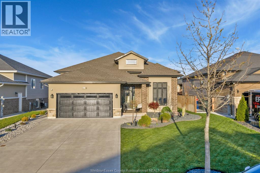 Welcome to luxury living in the heart of Amherstburg! This stunning 3+1 bedroom home makes a grand statement with its elegant double front doors. Inside, soaring Cathedral ceilings and 9ft ceilings create an airy feel, complemented by two transom windows in the living room for maximum natural light. The modern interior is anchored by sophisticated glass railings and a gourmet kitchen with a convenient pantry. The primary suite features a sleek, modern ensuite with a custom vanity and a premium Euro standing shower. Complete with a fully finished basement, wrap-around concrete walkways, and a full privacy fence, this home is a masterpiece of design. Move-in ready and located near the waterfront, golf, and top schools. (id:64974)
