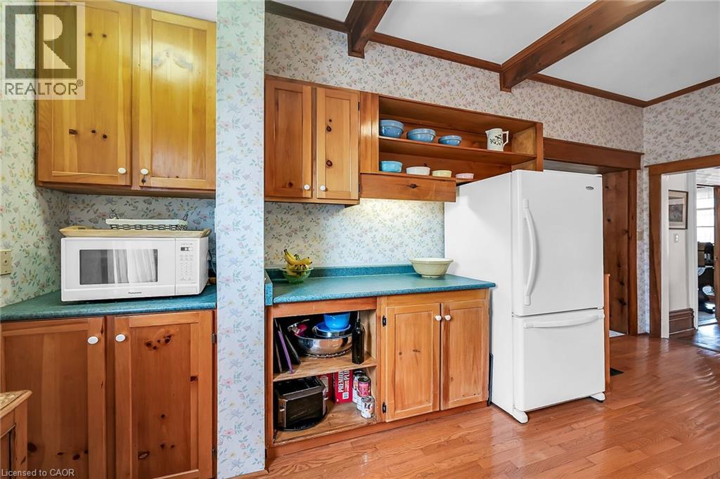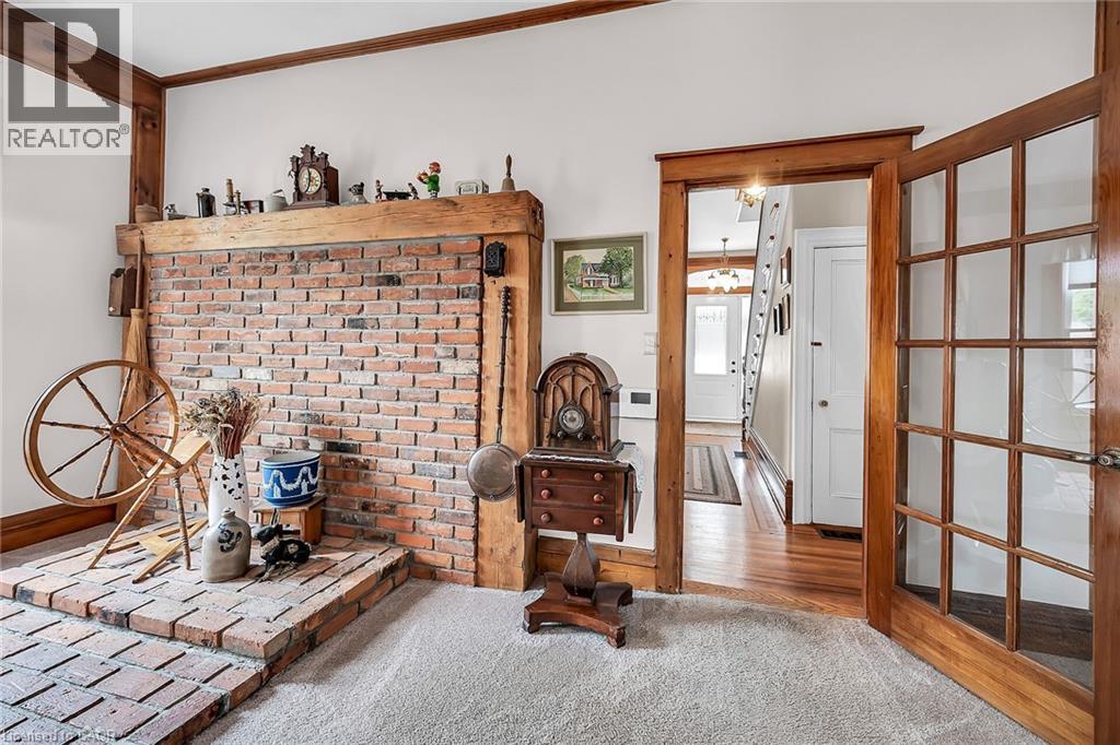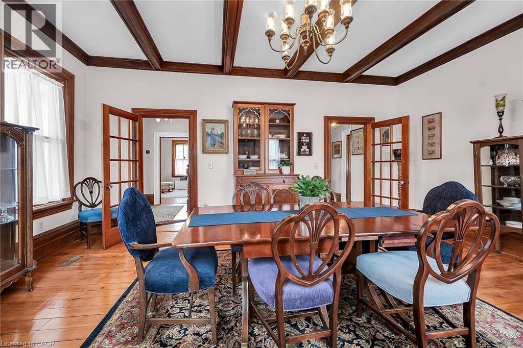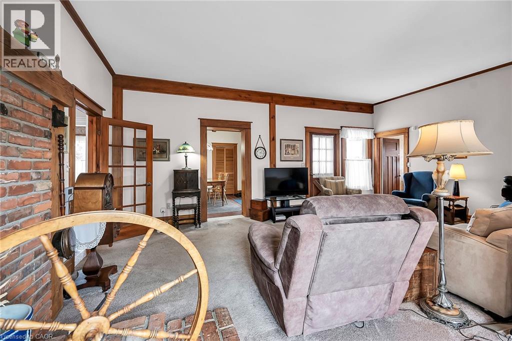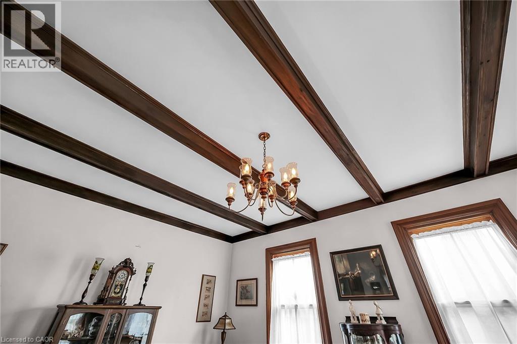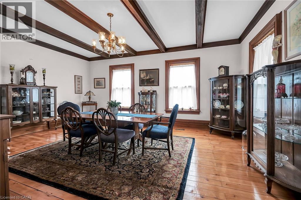 Step into a world of timeless elegance and historical charm with this extraordinary 1890 Farmhouse of the Nash Family, a rare gem that has been meticulously preserved and lovingly maintained by its current owners. From the moment you set foot inside, you'll be captivated by the home's rich character and authentic period details, from the soaring 10-foot ceilings on the main floor to the gleaming pine and oak flooring and the impressive 1-foot baseboards and wood trim that grace every room. With nearly 3500 square feet of living space, this spacious residence features an abundance of room to spread out and enjoy, featuring 4 generously sized bedrooms, 3.5 well-appointed bathrooms, and a host of inviting living spaces that are perfect for relaxing and entertaining. The grand living room and formal dining room boast stunning beamed ceilings and an air of sophistication, while the cozy main floor family room invites you to curl up with a good book or gather with loved ones. The eat-in kitchen and separate dinette provide ample space for casual meals and lively conversation, and the convenient main floor laundry and powder room add an extra layer of practicality. Upstairs, a versatile loft space features endless possibilities, whether you envision a teen retreat, a granny flat, or a creative studio. Two stairways provide easy access between floors, and modern amenities like central air conditioning and a central vacuum system ensure your comfort and convenience. Outside, an attached garage with drive-through capability provides sheltered parking, while the expansive 75' x 150' lot features a sweeping semi-circular driveway with plenty of space for guests, a large shed for storing garden equipment, and a charming covered front porch that's perfect for whiling away a lazy afternoon. This extraordinary property is more than just a home- it's a portal to a bygone era, a place where you can immerse yourself in the rich history and timeless appeal of a genuine 1890s farmhouse. (id:64974)