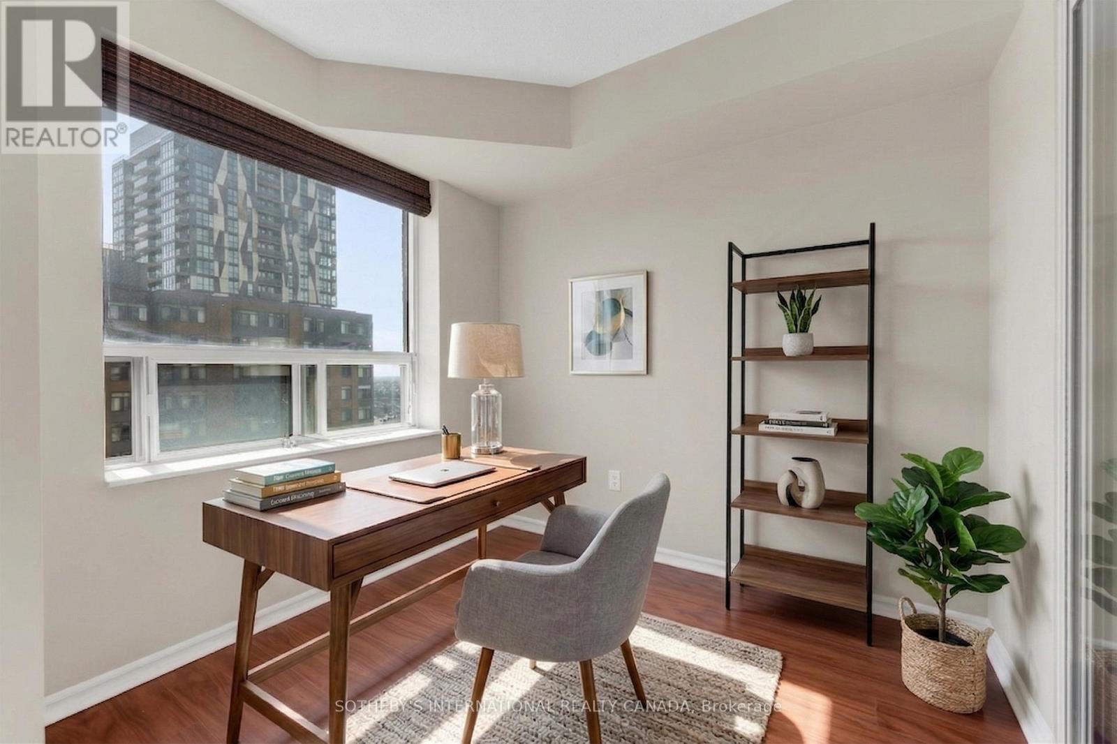 They don't make them like this anymore. This massive 2+1 bedroom condo features an incredible floor plan that prioritizes space and privacy, while the building offers all the major comforts and more. The suite features a highly desirable split-bedroom layout, featuring two large bedrooms, including a primary retreat that is an unheard-of 21 feet long. The living and dining combination is flooded with natural light all-day long thanks to the sunny, south-facing bay window. For those working from home, the den is a very generous 9 by 7'10", offering a legitimate space for a professional home office.The condo has been lovingly maintained and renovated over the years, featuring a carpet-free interior with laminate flooring throughout. The kitchen has been thoughtfully updated with everything a home chef needs, including full-sized appliances, ample counter space, a double sink, and upgraded lighting. Both bathrooms are full 4-piece washrooms, the unit also features ensuite laundry. Storage is never an issue here, as the home features a walk-in closet, entry closet, second bedroom closet, and a dedicated locker. (The unit also comes with parking)! The building's amenities are truly second to none, featuring an indoor pool, hot tub, sauna, gym, and even a squash court, basketball court, and a pay-per-use carwash for ultimate convenience. Situated on a quiet street just south of Square One, you are mere steps away from the mall, Celebration Square, the Living Arts Centre, and the Central Library. Whether you are commuting via the GO station or driving with quick access to Hurontario, Mavis, the QEW, or the 403, this location is unbeatable. Experience a "everything-included" lifestyle, where the maintenance fee includes heat, air conditioning and water. (id:64974)