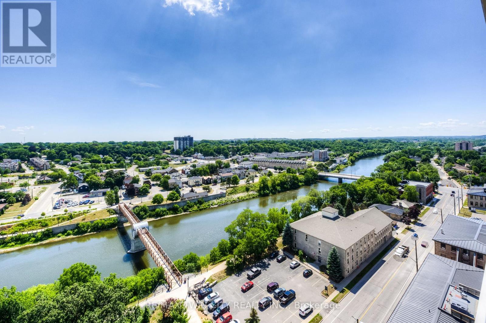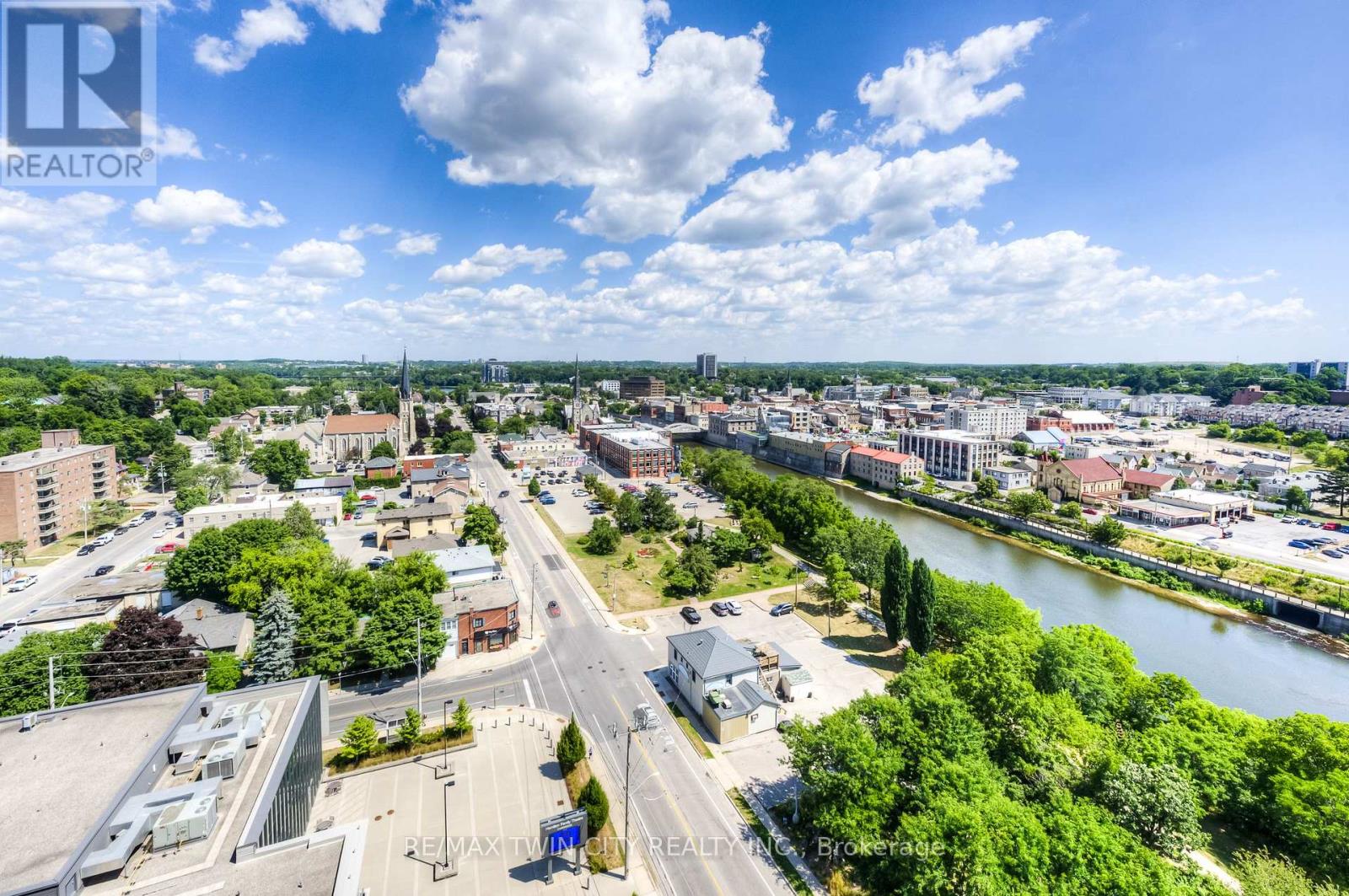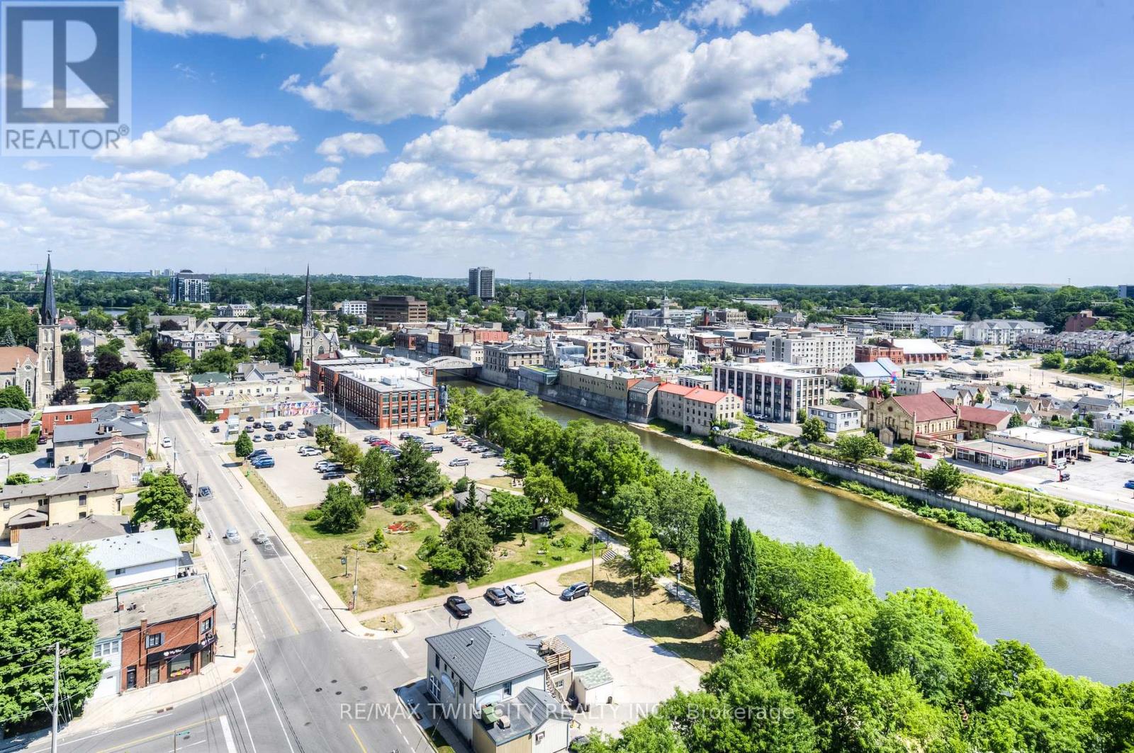 GASLIGHT DISTRICT! Cambridge's "must live" residence. This 2-bdrm/2 bathroom condo is available for occupancy immediately. Located in historic downtown Galt, Gaslight is home to residential, commercial, retail, art, dining, community, and culture. You will be able to live and work right where you live. Situated on the East side of the building, this unit has a SPECTACULAR VIEW of the Grand River, East Galt, the Grand River Valley, and a Southerly exposure through the wall-to-wall windows and from the extra-long balcony. This stunning open-concept unit features a modern kitchen with quartz counters and S/S fridge, stove, dishwasher and exhaust, in-suite laundry (washer & dryer included), and a full-privilege ensuite bath spacious bedroom features a large walk-in closet, two walk-outs to the balcony, one parking spot provided in the underground garage, complete with an electric car charger. Building amenities will include a lobby with ample seating space, a secure video-monitored entrance, a fitness room with a yoga/pilates studio, a games room, a party room with a kitchen and a large private dining area, and a library. There is an indoor lounge area and an outdoor terrace with a lounge area, overlooking Gaslight Square, and featuring BBQs and private workplace pods. EV car charger included! (id:64974)