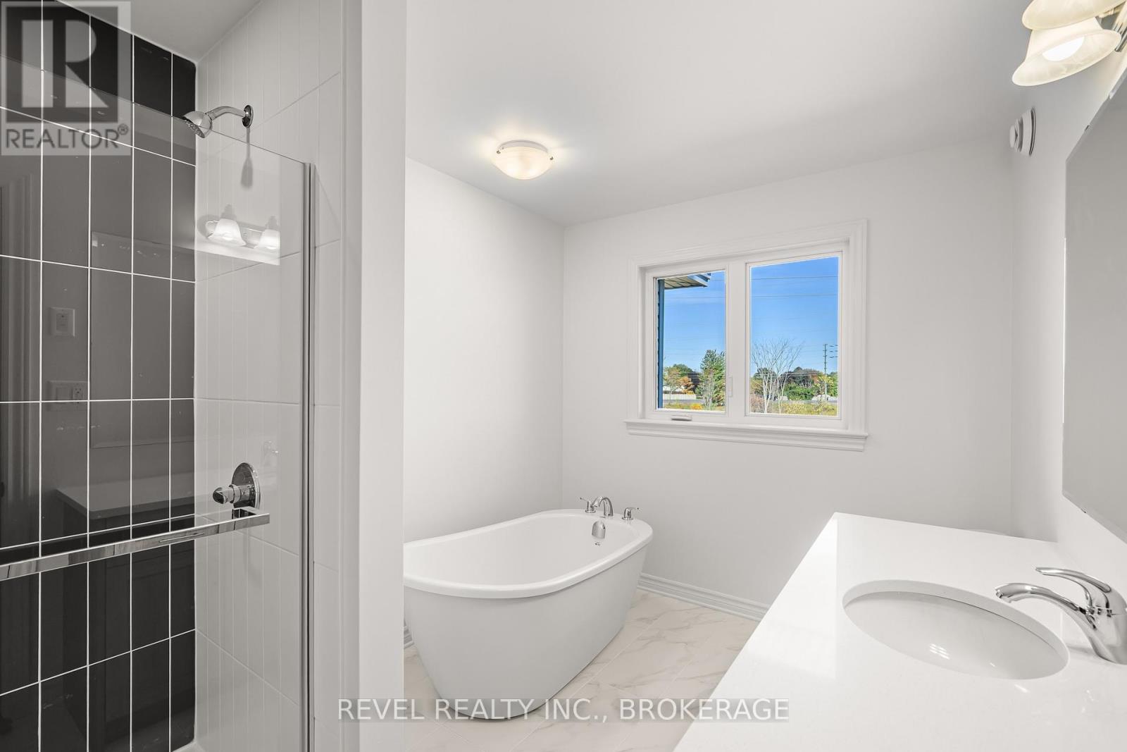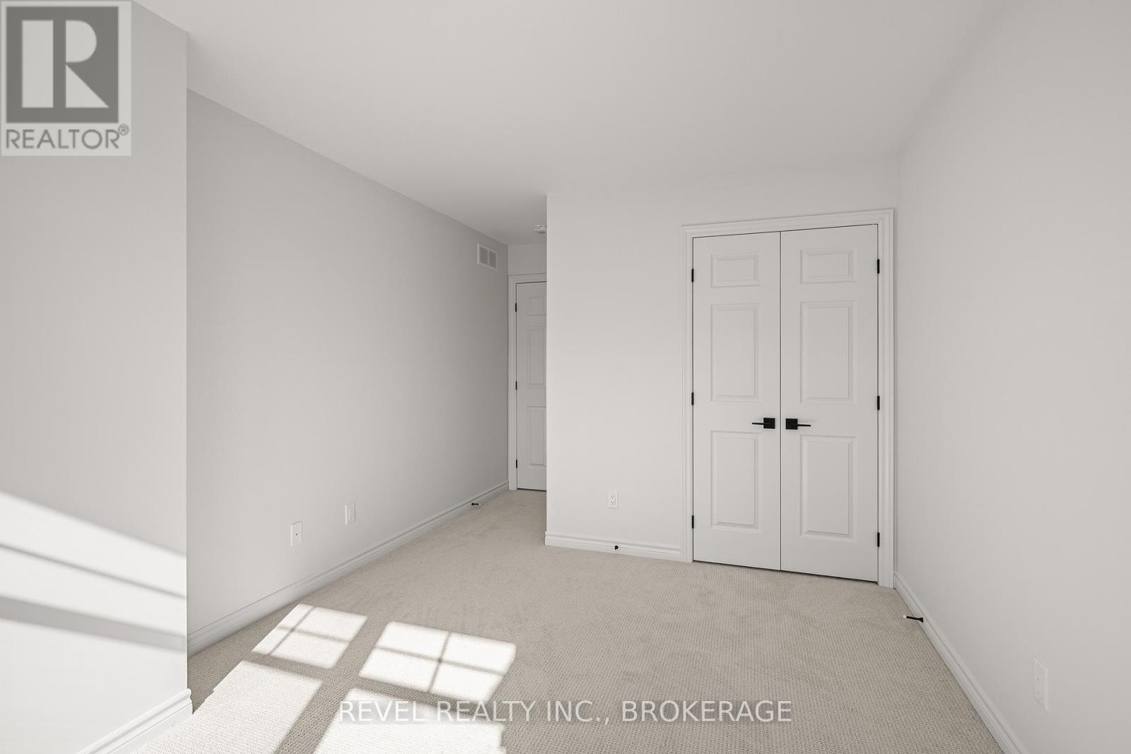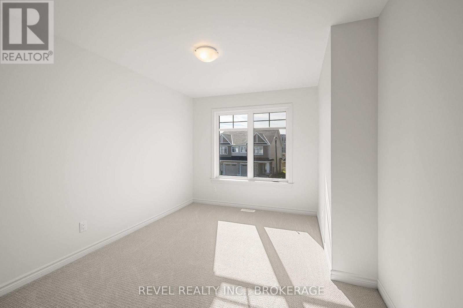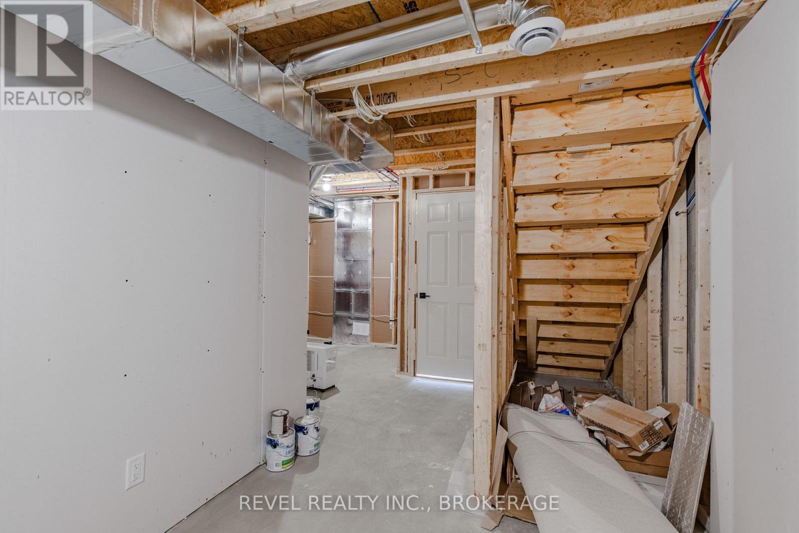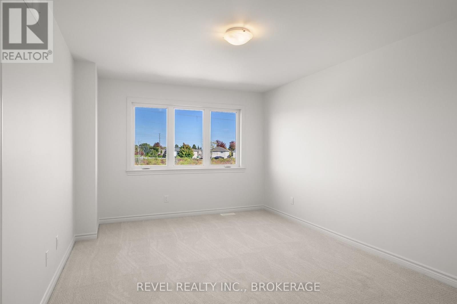 The Abbey model offers 1,855 square feet of finished stylish living in Kingstons West Village community. The main floor showcases maple hardwood, a modern kitchen with quartz counters, white shaker cabinetry, an upgraded sink, and a spacious walk-in pantry. A cozy gas fireplace anchors the living area. Upstairs, the primary suite includes a luxurious 4-piece ensuite with a freestanding tub and a walk-in tile-and-glass shower. The home also features a finished walkout basement with a rough-in for a future bathroom, giving you plenty of extra living space and flexibility. ENERGY STAR certified for efficiency, this home is close to the Rio Can, Cataraqui Centre, new schools, and parks. (id:64974)