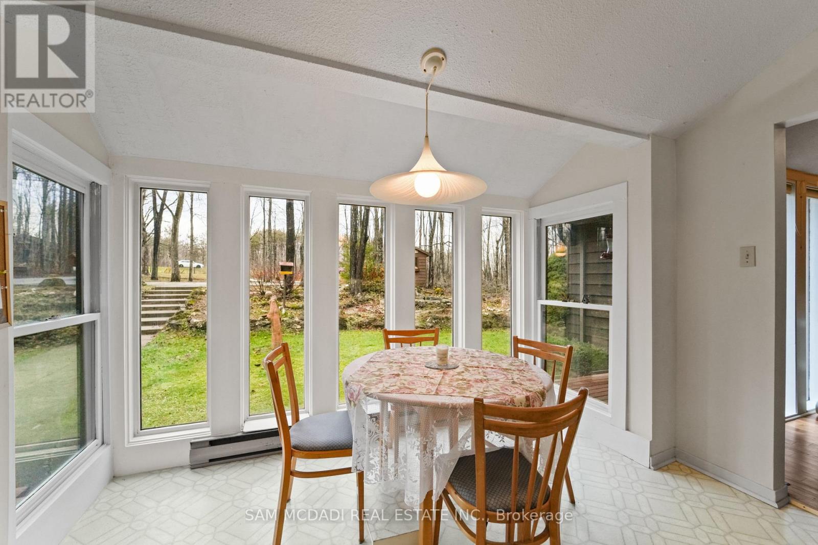 Nestled within the stunning Niagara Escarpment, just a stone's throw from Devils Glen Ski Club, "In The Woods" offers a delightful 3-bedroom, 2-bathroom residence that embraces both nature and creativity. Set on over 5 acres of lush, wooded land, this property provides a serene escape where you can truly relax. Inside, you'll discover a warm and inviting home filled with unique charm. The abundance of natural light makes every room feel open and welcoming. A key feature is the airy artist's studio, which is an extra space for the homeowner to get creative away from the mix of the house. With its separate entrance, this area could also serve perfectly as a home office. Next to the house, there's a versatile 18 x 30 workshop with power for tackling DIY projects, storage and more. "In The Woods" feels like a private sanctuary, with the peaceful Escarpment as your neighbour. The home is in roughly the middle of the lot so plenty of trees and land on the property at the back and sides! (id:64974)
