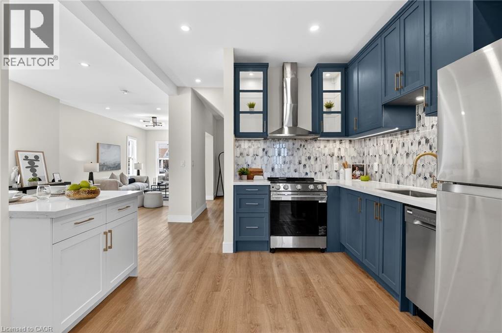 Welcome to 142 Avondale Street, a beautifully reimagined home in Hamilton’s vibrant Crown Point neighbourhood, known for its character filled streets, strong sense of community, and walkable lifestyle. Surrounded by mature homes and tree lined streets, this location places you just minutes from the shops, cafés, restaurants, and markets along Ottawa Street, as well as the events and energy of Tim Hortons Field. Parks, schools, transit, and highway access are all nearby. This fully renovated 5 bedroom, 2.5 bathroom home blends classic character with modern design and thoughtful functionality. Inside, you are welcomed by bright, open living spaces filled with natural light, creating a warm and inviting atmosphere. The spacious living and family areas provide plenty of room for relaxing or entertaining, anchored by a beautiful fireplace feature that adds charm and comfort. At the heart of the home is a stunning designer kitchen built for everyday living and hosting. Featuring modern cabinetry, quartz countertops, stainless steel appliances, and a stylish backsplash, the kitchen offers both style and practicality. The center island adds prep and gathering space, while the layout includes two refrigerators and a dedicated pantry, perfect for busy mornings or entertaining guests. Upstairs, the home continues to impress with generous room sizes, large windows, and a layout designed to maximize comfort and natural light. Outside, the property offers a private, fully fenced backyard with new fencing and hardscaping, ideal for outdoor entertaining or relaxing. Extensive renovations were completed with permits, including over 40 new windows, all new doors, updated electrical with ESA certification and 200 amp service, new plumbing with PEX water lines and ABS drains, a newer roof, new stucco exterior, and a new air conditioning unit. A rare opportunity to own a move in ready home offering approximately 2,100 sq ft of living space with major upgrades already completed. (id:64974)