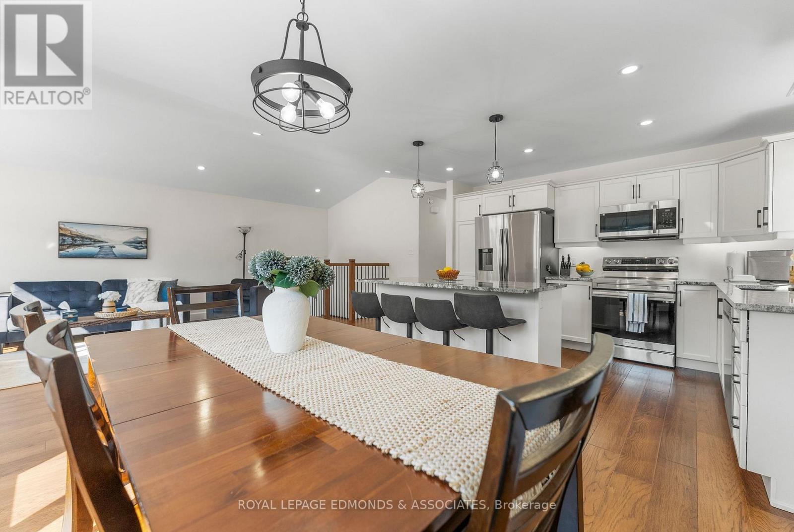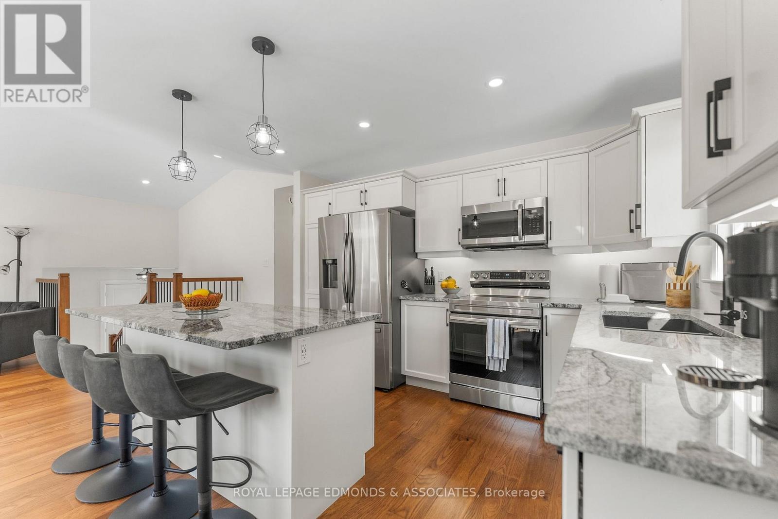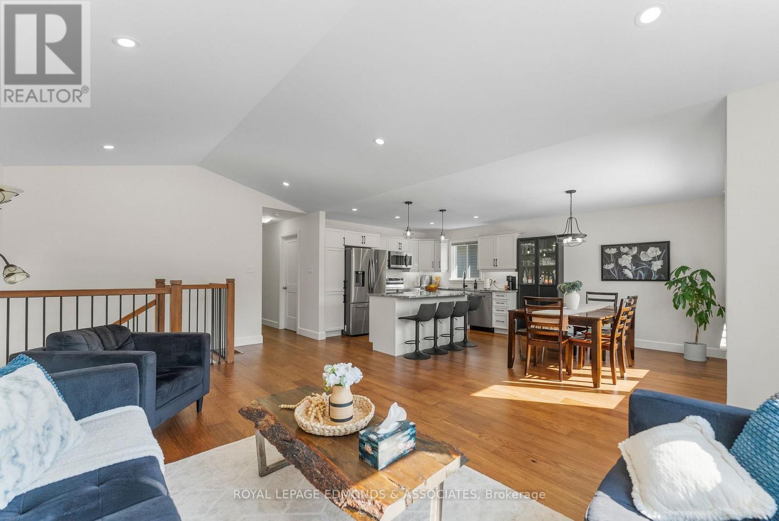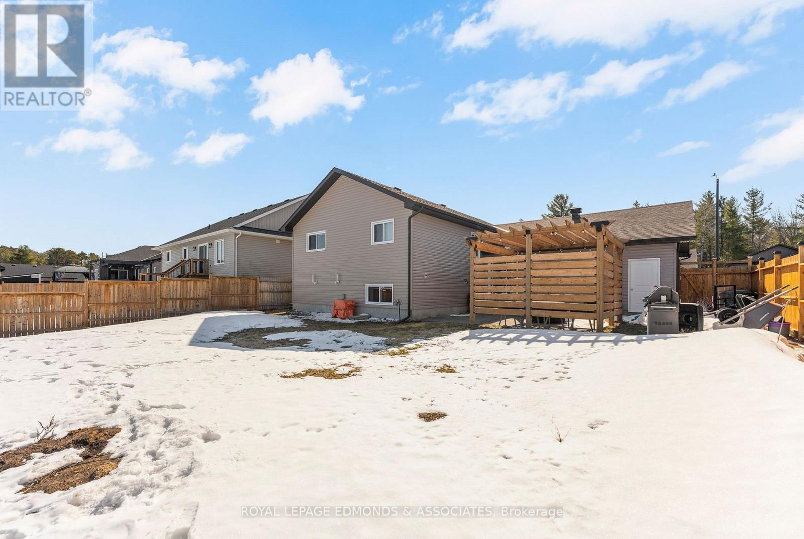 Welcome to this stunning 4-bedroom, 3-bathroom home built in 2023, perfectly situated in one of Petawawa's most sought-after subdivisions. From the moment you arrive, you'll appreciate the modern curb appeal and oversized single garage that offers extra storage and convenience. Step inside to a spacious split-level entry that leads to an open-concept main floor filled with natural light. The kitchen is the heart of the home, featuring stylish quartz countertops, a large center island ideal for entertaining or meal prep, and sleek stainless steel appliances. The adjoining dining and living areas provide the perfect space for family time or hosting guests, all framed by large windows that make the space feel bright and welcoming. The upper level showcases elegant engineered hardwood flooring, adding a warm and refined touch throughout the main living spaces. Continuing on the main floor you'll find a full bathroom, two well-sized bedrooms, and a beautiful primary suite complete with a private ensuite featuring a large walk-in shower. Downstairs, you'll find a generous rec room with a cozy natural gas fireplace and plush carpet underfoot-ideal for movie nights or relaxation. There's also an office or den, a fourth bedroom perfect for guests or family, another full bathroom, and a convenient laundry/utility room. Step outside to your own backyard oasis with a custom pergola, patio area, and a landscaped walkway leading along the side of the home to the front yard. Enjoy the durability and charm of the brand-new 2026 back stone steps, along with a fully fenced yard that provides security and space for children or pets. A convenient BBQ gas hookup on the back patio makes outdoor entertaining simple and enjoyable. This home offers the perfect blend of modern finishes, functional space, and outdoor comfort-move-in ready and waiting for your family to enjoy. 24 hour irrevocable on all offers. (id:64974)