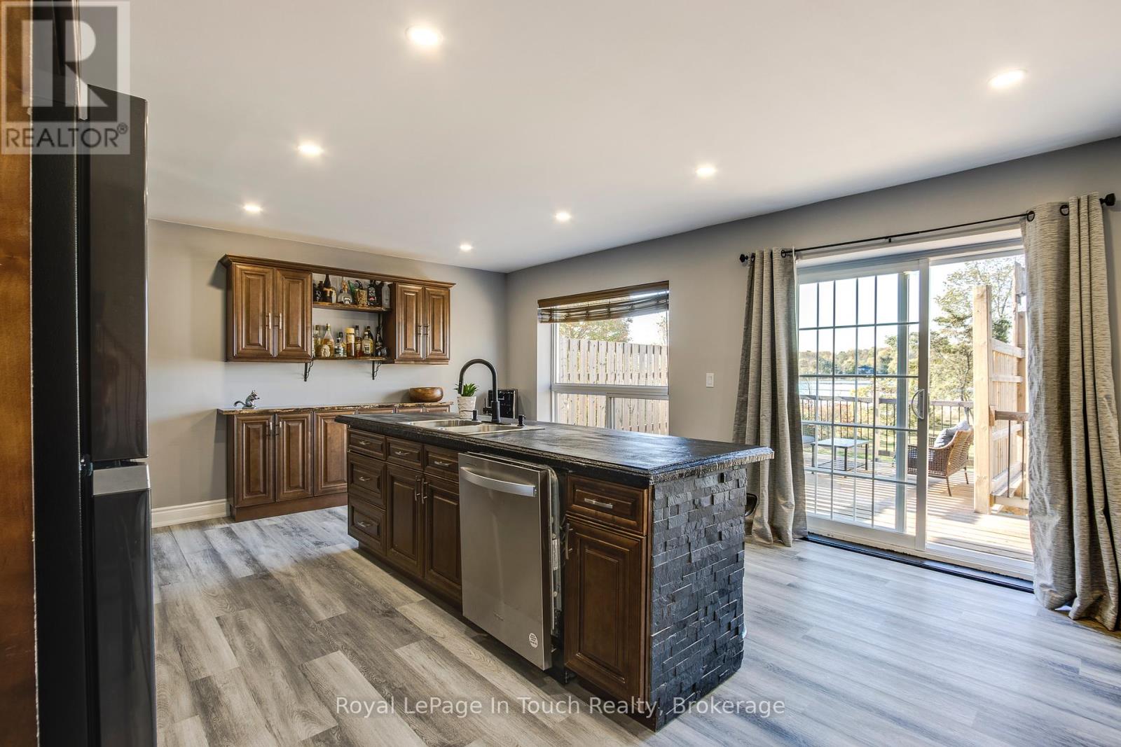 There is nothing better than Georgian Bay Waterfront living!!! From slab to roof this energy efficient custom built ICF waterfront home boasts a panoramic view of Georgian Bay with your own private boat harbour to enjoy miles of boating, fishing, snowmobiling. This home is 6 years new & has over 50 feet of private waterfront. The laser-etched gates will welcome you home to this nature watchers paradise. The covered entrance leads to 2,400+ sq ft of living space with a bedroom and bathroom on each level. The main level features open concept living with a custom kitchen & an abundance of natural light with French doors leading to a large deck with west-s/w exposure so you can entertain with confidence and take in the beautiful sunsets. A spacious main floor bedroom, 4-pc bathroom and den(office/small bedroom) complement this level. The upper level boasts a large family room and bedroom with a new 3-pc ensuite with walk-in shower which offers ideal accommodation for guests or extended family. The basement has a studio style in-law with a bedroom and walkout or use as a family room as an excellent spot for entertaining with room for a pool table or games area then step outside to your expansive backyard which offers potential to be transformed into your dream oasis for BBQs with family and friends. A hallway with kitchenette, 3-pc washroom, laundry/utility room and a walkout to the garage to store all your water toys, tools and recreational gear. Ample parking for family, visitors plus all your recreational vehicles. Relax and enjoy all that nature has to offer in your own gateway to endless summer and winter fun. One minute to Hwy 400 making travel to and from the city effortless. Minutes from shopping, dining, schools, golf, skiing, Trans-Canada trail, Trent/Severn locks. One exit away from Tim Hortons & LCBO & a short drive to Midland, Port Severn, Coldwater, Orillia & Barrie - only 1.5 hours to Toronto. Call today to arrange your own private viewing! (id:64974)