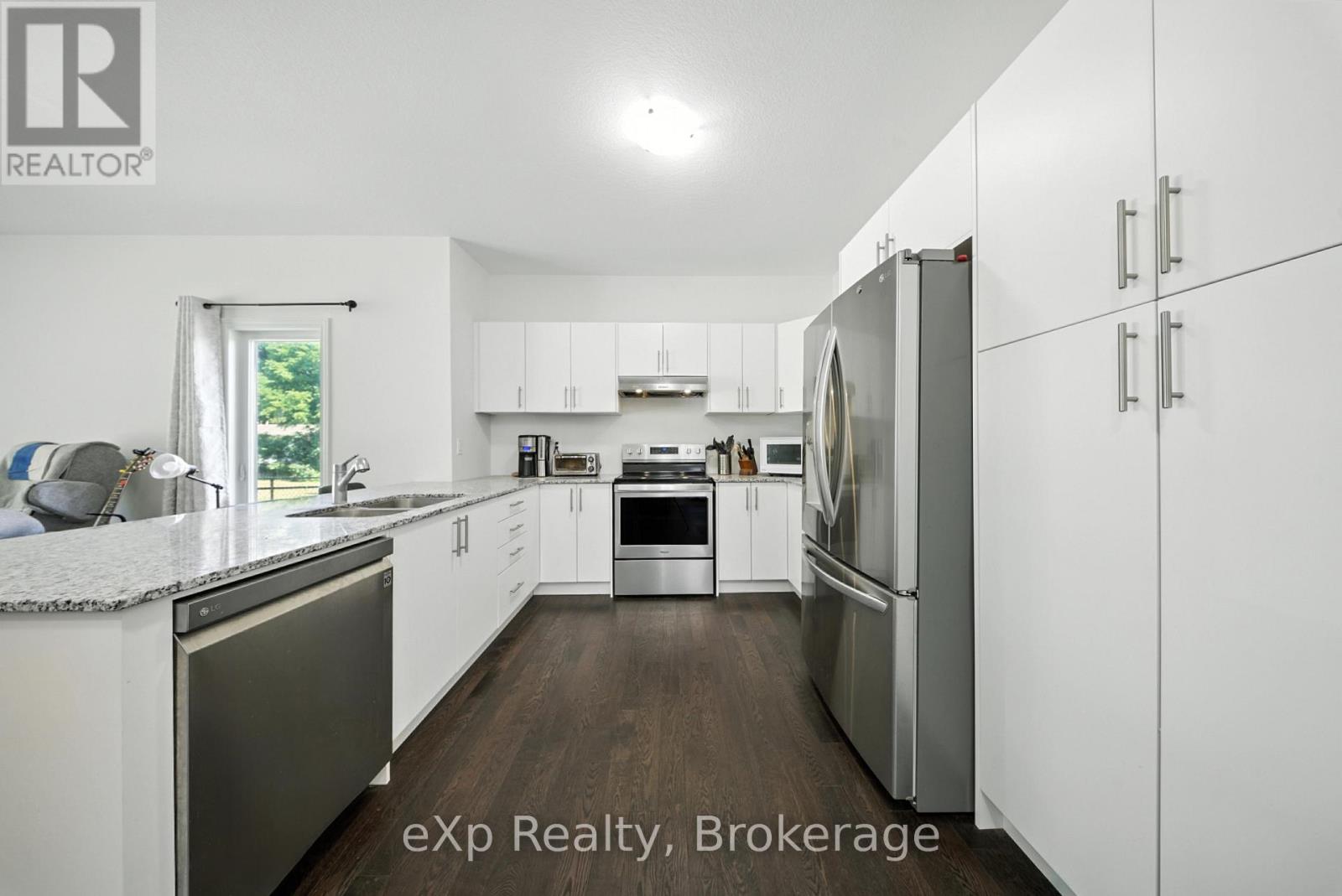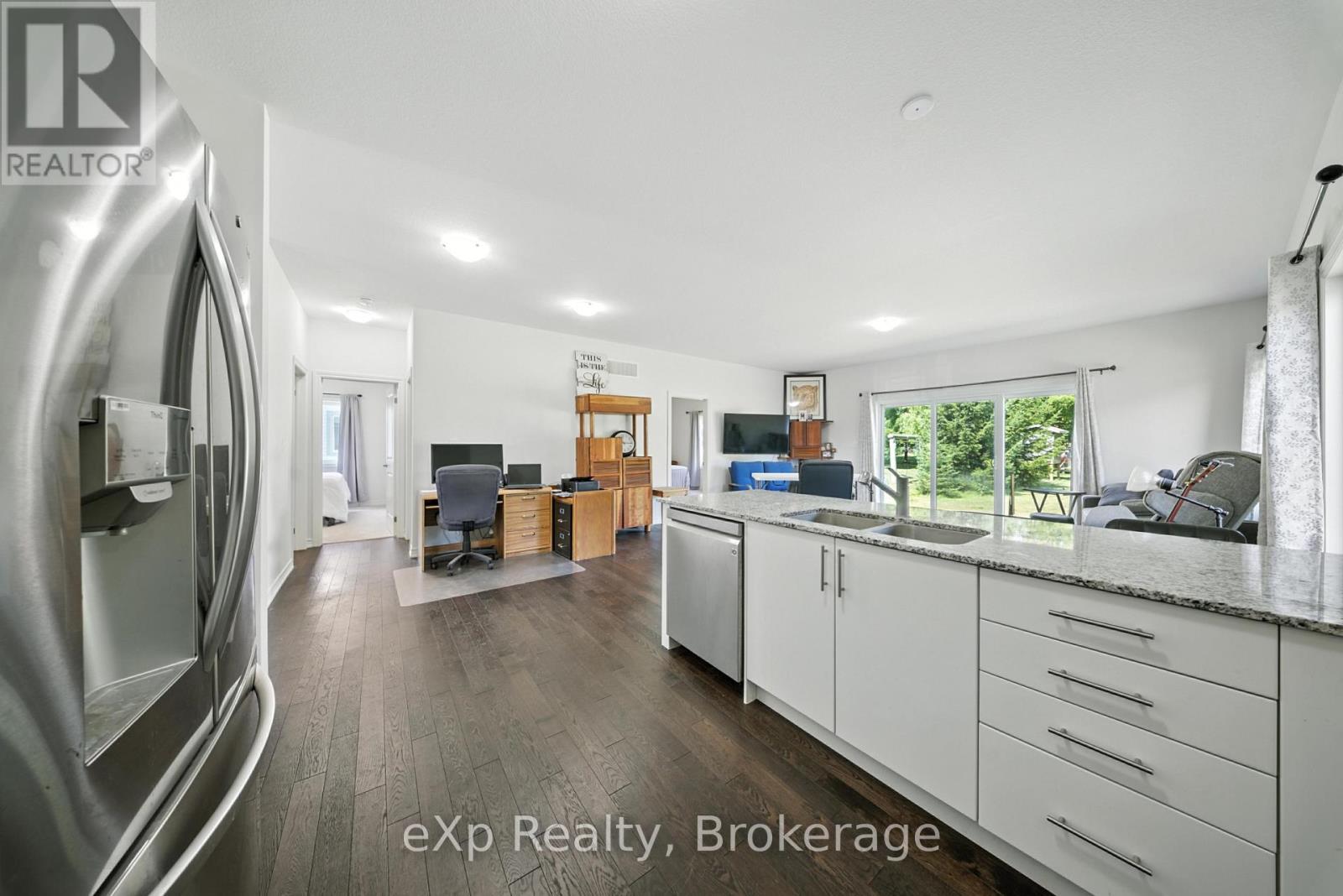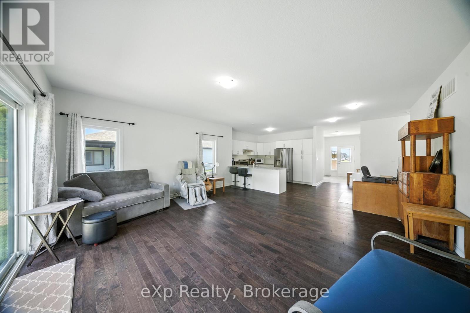 Welcome to 142 Ellen Street in charming Atwood. This beautifully maintained bungalow offers the perfect blend of modern finishes, open-concept living, and small-town tranquility, just minutes from Listowel and an easy commute to Kitchener-Waterloo. Step inside to a bright, spacious main floor featuring hardwood flooring, large windows, and a seamless flow between the kitchen, dining, and living areas. The kitchen boasts crisp white cabinetry, stainless steel appliances, granite countertops, and a generous island that is perfect for entertaining or casual family meals. The primary suite offers a peaceful retreat with a private ensuite featuring dual sinks and a walk-in shower. Additional bedrooms are well-sized and versatile, ideal for family, guests, or a home office. The large basement provides endless possibilities for customization, with large windows allowing for plenty of natural light. Enjoy the outdoors with a deep backyard, perfect for gardening or play. The property backs onto open green space, offering added privacy and scenic views. With an attached double garage, ample driveway parking, and move-in-ready condition, this home is perfect for families, downsizers, or anyone looking for peaceful living without sacrificing convenience. (id:64974)