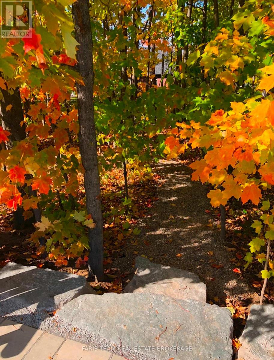 Top 5 Reasons You Will Love This Home: 1) Established on a premium wooded lot featuring over $40,000 in professional landscaping, a beautifully manicured yard with a 6-zone irrigation system, a spacious patio with a gas hookup for effortless outdoor entertaining, and a serene, wooded walking trail that offers natural beauty and peaceful privacy 2) Designed for entertainment featuring a seamless whole-home sound system with premium interior and exterior speakers, creating the perfect ambiance for every occasion 3) Fully finished lower level comprising of an elegantly designed kitchen appointed with black stainless-steel appliances, two spacious bedrooms, including one featuring a small secret room hidden behind a bookcase, a full bathroom, and a separate entrance with direct access from the expansive oversized three car garage, offering the exceptional potential for multi-generational living, guest accommodation, or the perfect entertainment space 4) Impressive main level with a bright and airy kitchen complete with unique granite countertops, a great room with gas fireplace and an oversized walkout to the deck, a separate dining room featuring upgraded wall panelling, cathedral ceilings throughout the foyer, dining room, and great room, and soundproofing in the walls between the great room and bedroom wing 5) Situated in an exclusive community of estate homes, with easy access to Snow Valley and Barrie, making it the perfect blend of luxurious living and everyday convenience. 4,158 fin.sq.ft. (id:64974)