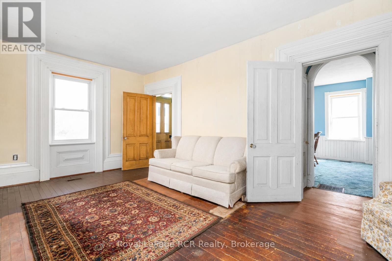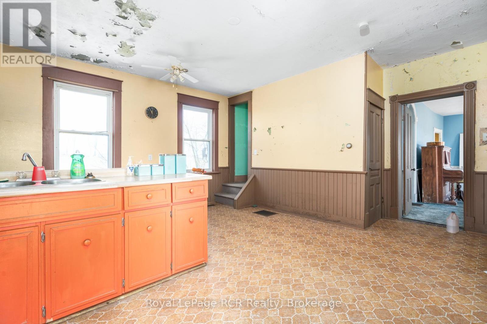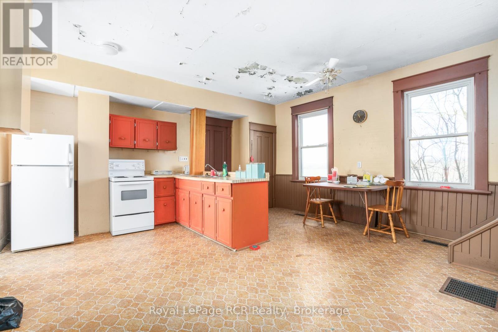 100-acre farm in Normanby Township with approximately 35 acres of workable land, along with forest, a creek, and a century home.The house is solid with a newer metal roof and a practical layout. The main floor includes a large eat-in kitchen, spacious living room, laundry room and a family room with fireplace. Upstairs there are five bedrooms, a 4-piece bathroom, and two staircases. Solid home with some lovely original charcater in the floors and trim but has been vacant for awhile and need your decor upgrades. Outbuildings include an older bank barn, a shed or garage and a smaller shed. Workable land is located at both the front and back of the property. A former laneway could be reopened to provide access to the rear field. The middle portion of the property is lower land with a creek running through it. Properties in this area don't come up for sale often. (id:64974)