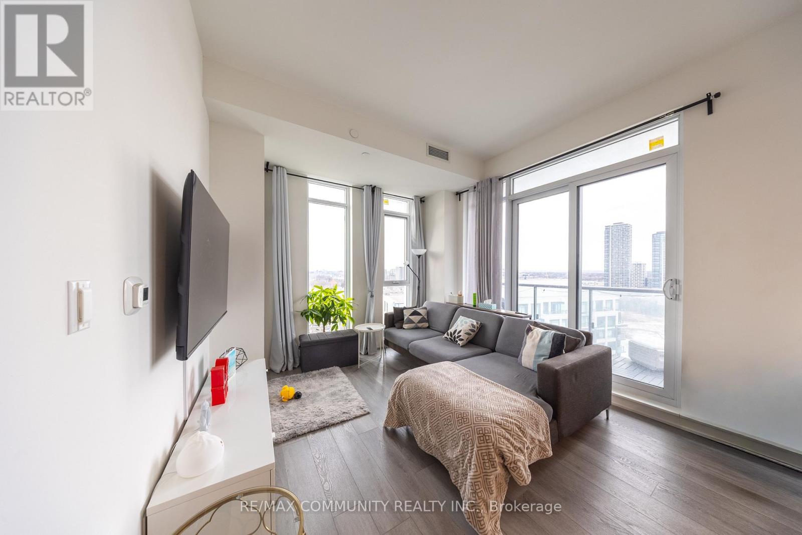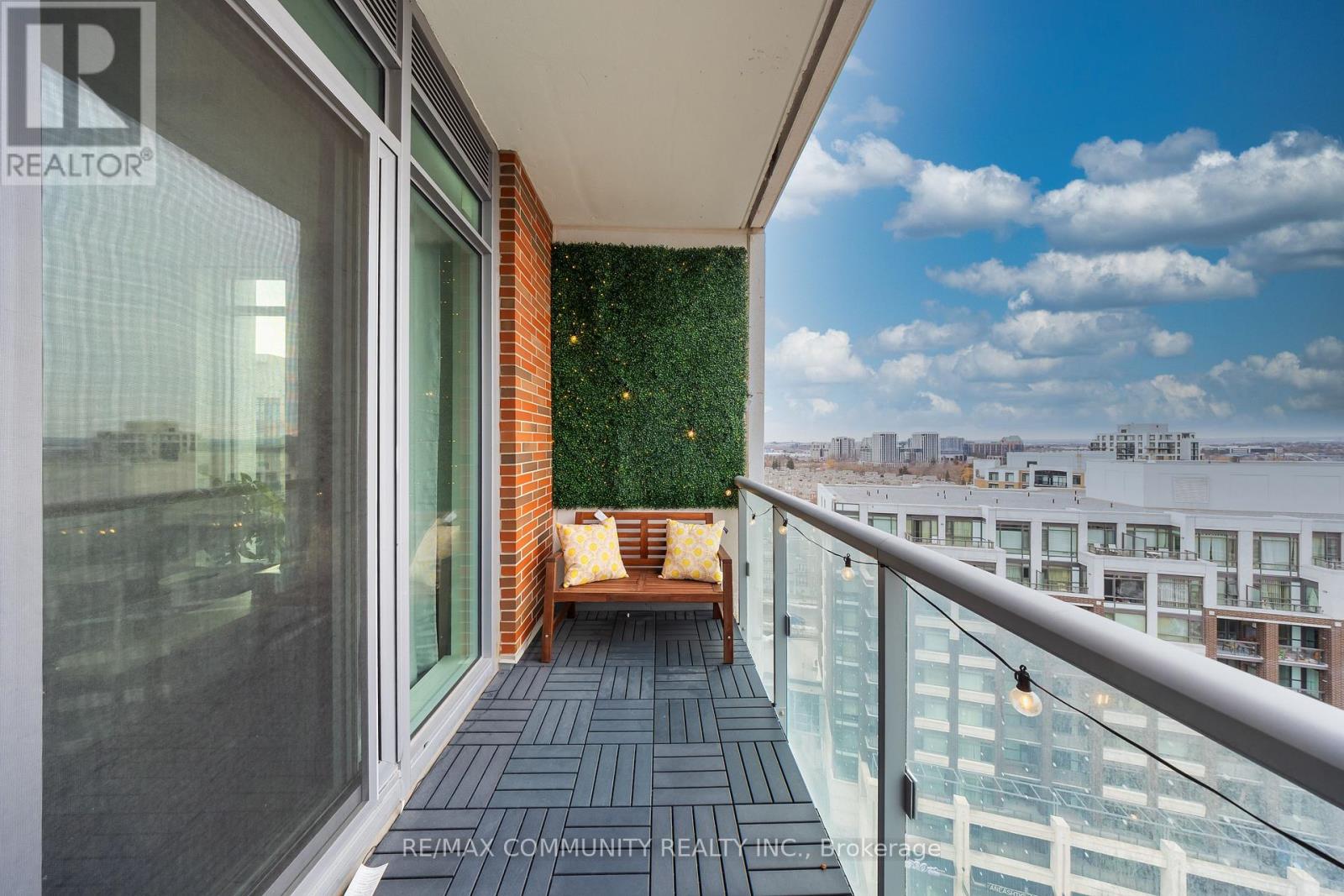 Welcome to the prestigious Gallery Square Condos. This sun-filled corner suite offers two spacious bedrooms and two full bathrooms, designed with a modern open-concept layout. Large windows wrap the unit in natural light. The well-planned living and dining spaces strike the perfect blend of comfort, ideal for both daily living and entertaining guests. The sleek kitchen features integrated appliances, quartz countertops, and a coordinated quartz backsplash, combining contemporary style with practical design. The primary bedroom provides a relaxing escape with a generous closet and a private three-piece ensuite. The second bedroom is also comfortably sized with its own closet, making it perfect for a guest room, family member, or home office. Located in a highly sought-after area, this condo is just steps from the YMCA, GoodLife Fitness, VIP Cineplex, dining options, and retail shops. Easy access to Highways 404 and 407, Viva Transit, and the GO Station makes commuting effortless. One EV parking spot included for added convenience. (id:64974)