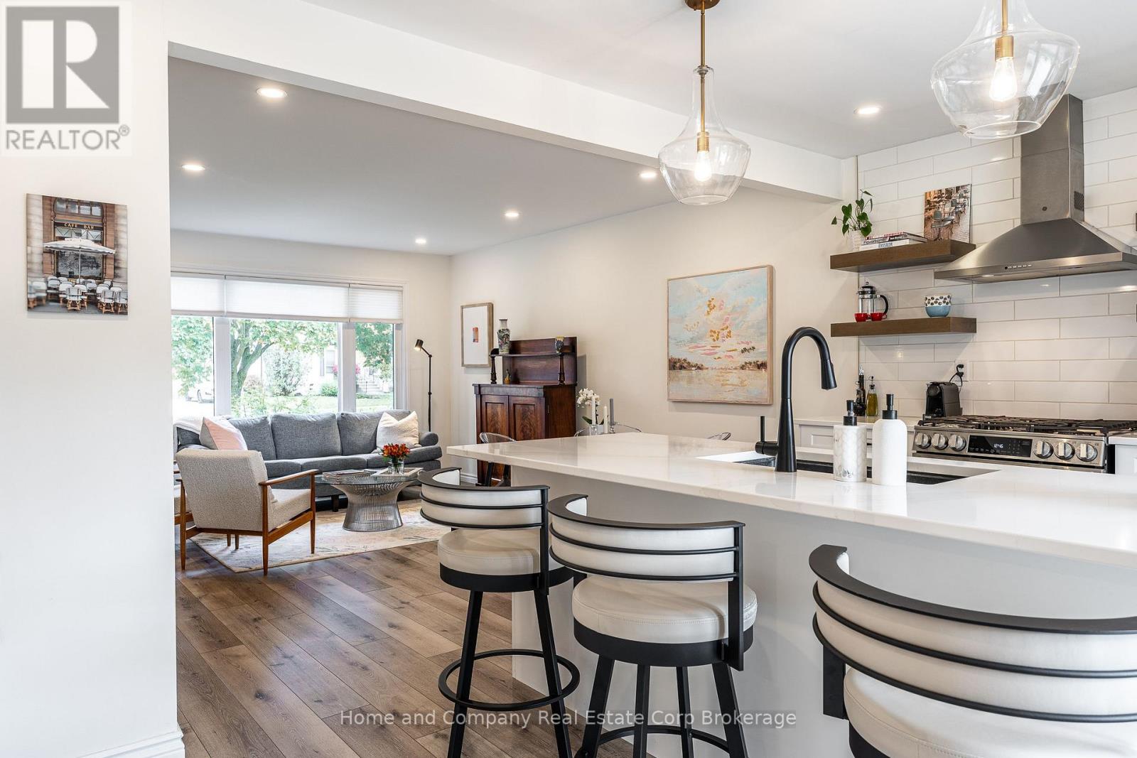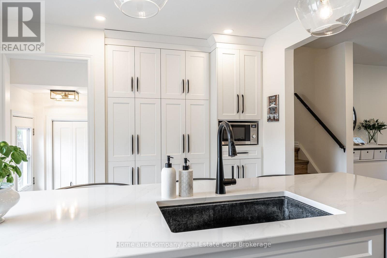 Friends and family will admire your great taste! Welcome to this beautifully maintained four-level sidesplit in picturesque Stratford - a home that perfectly blends comfort, style, and function. Step inside to discover a bright and airy layout that feels inviting on every level. The stunning kitchen is a true cook's haven, featuring a spacious island with built-in bar fridge, Bosch dishwasher, and an impressive five-burner gas stove with regular, convection, slow cook, and air fry settings - all surrounded by abundant cabinetry for effortless organization. Upstairs, you'll find two queen-size bedrooms and one king, and a totally new main bath (Jan 2024). The spacious family room level offers a cozy retreat with its gas fireplace, a 3 pc bath, and home office nook. Just a few steps down, is laundry and more storage than you'd ever expect. Multiple upgrades include a new furnace and A/C (Nov 2023), among others. Outside, you'll appreciate the huge concrete double-wide driveway, carport, and fenced yard complete with two garden sheds and a dedicated patio area - ideal for relaxing or entertaining. Immaculately cared for and thoughtfully designed, this home shines inside and out. With an oversized corner lot and wide open 34' x 74' fenced area, it may be ideal for an accessory dwelling (ADU) for a family member or as an income supplement. Call your REALTOR today to arrange a private viewing. (id:64974)