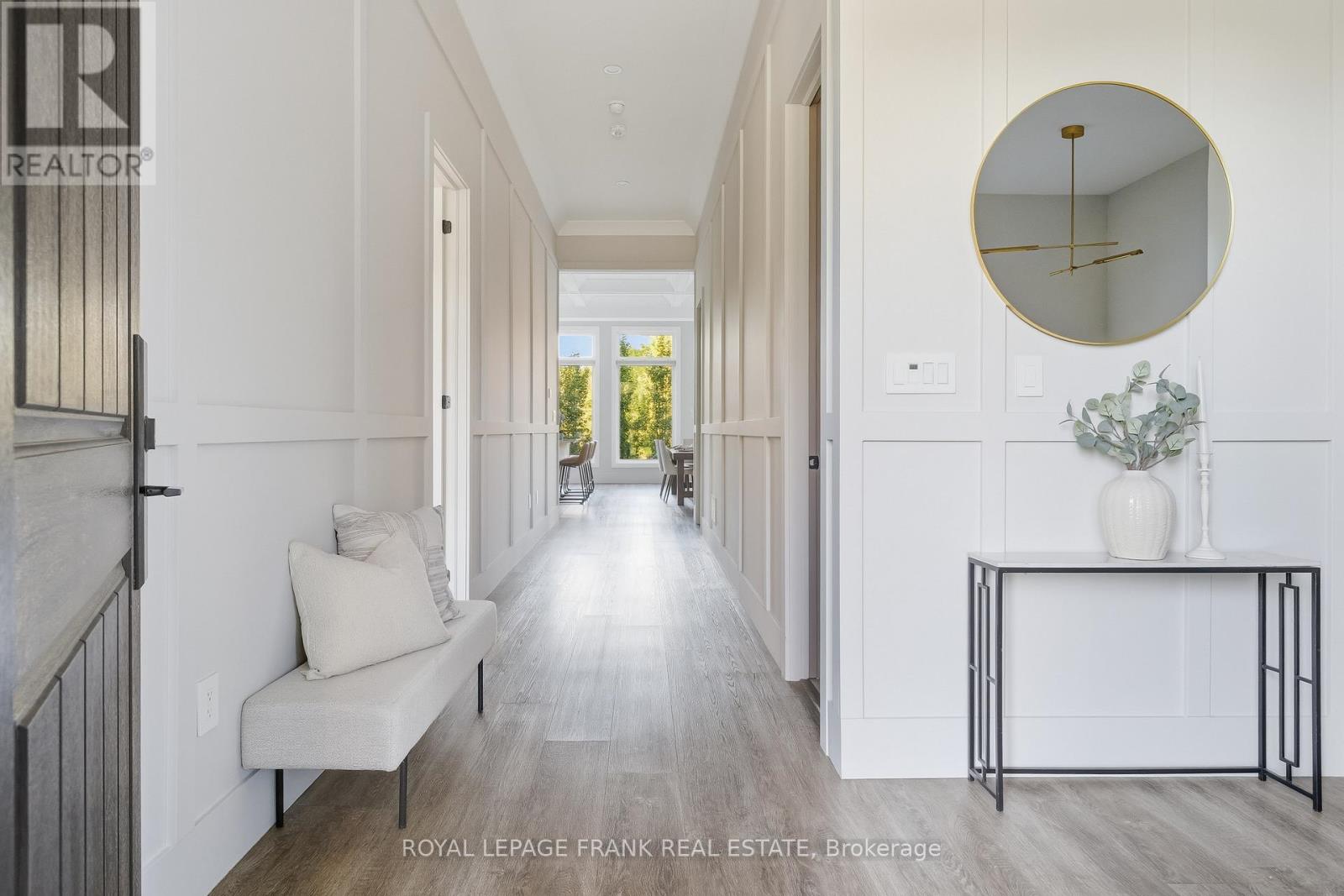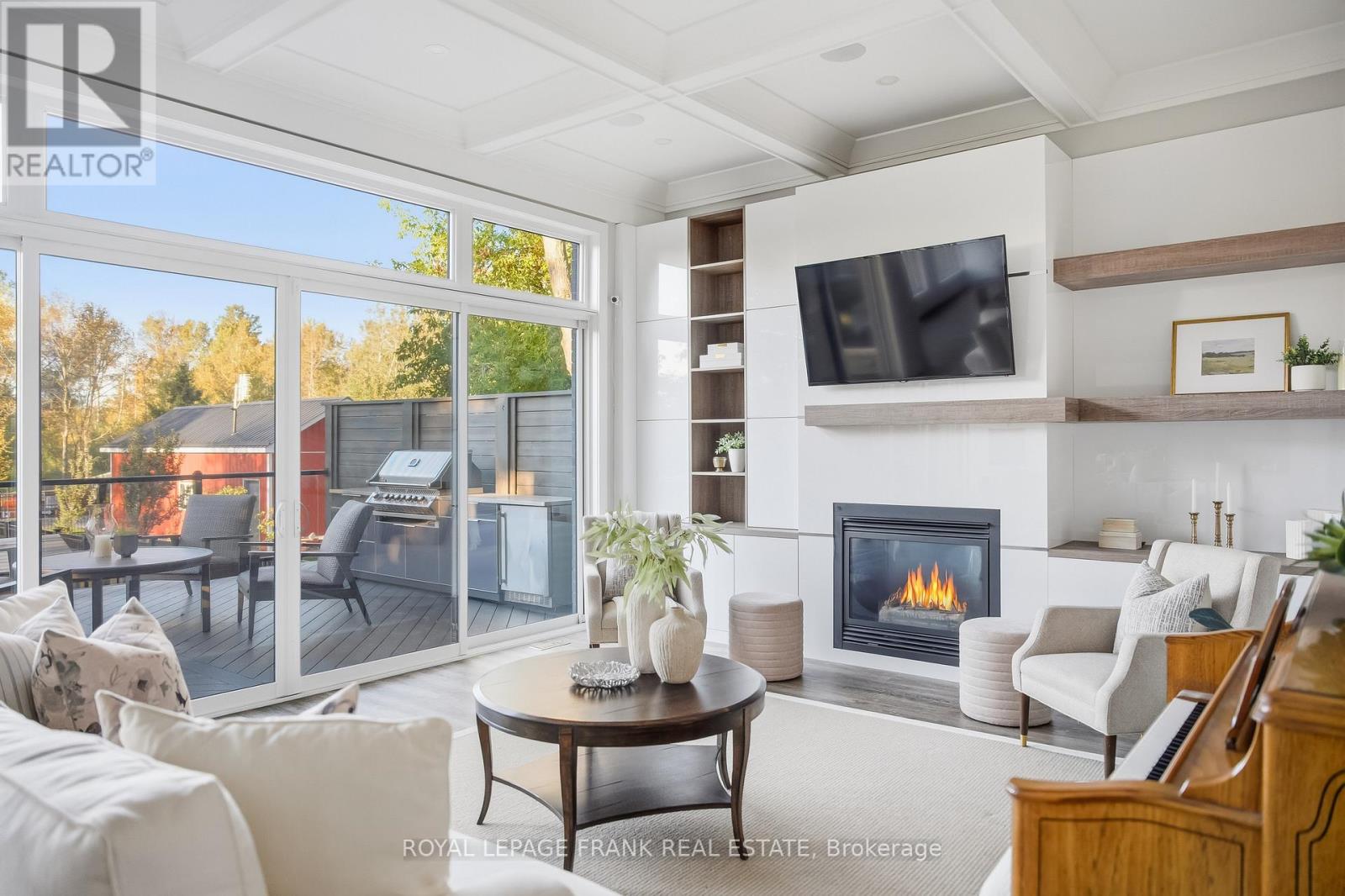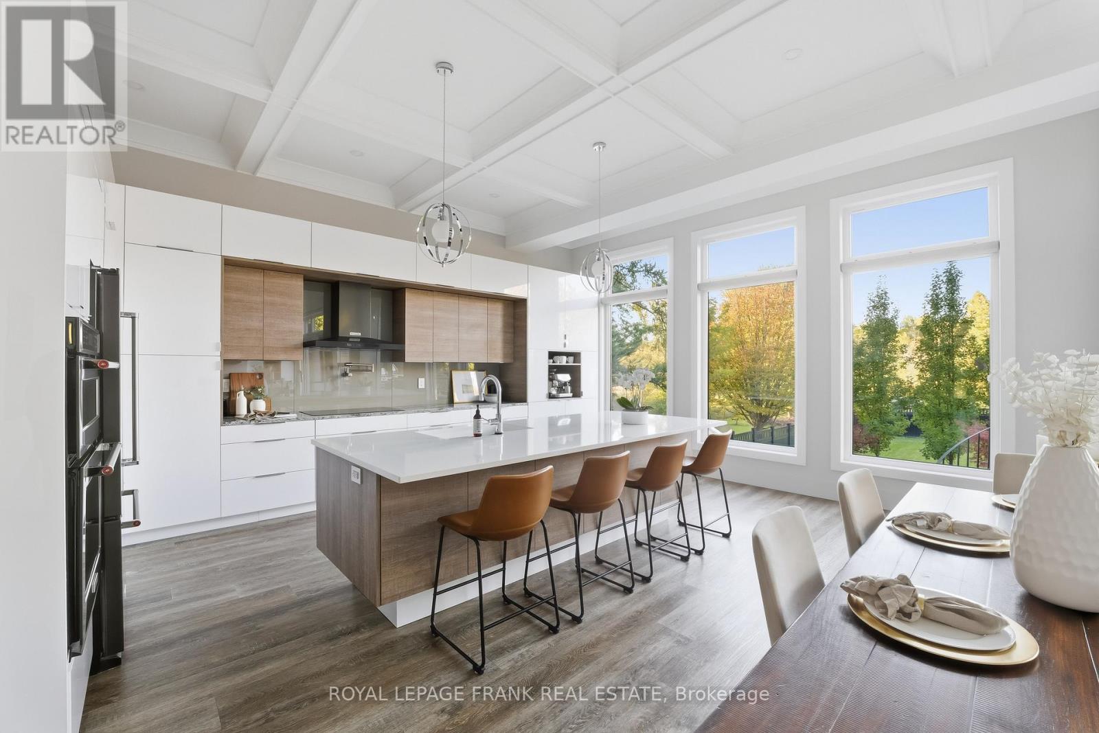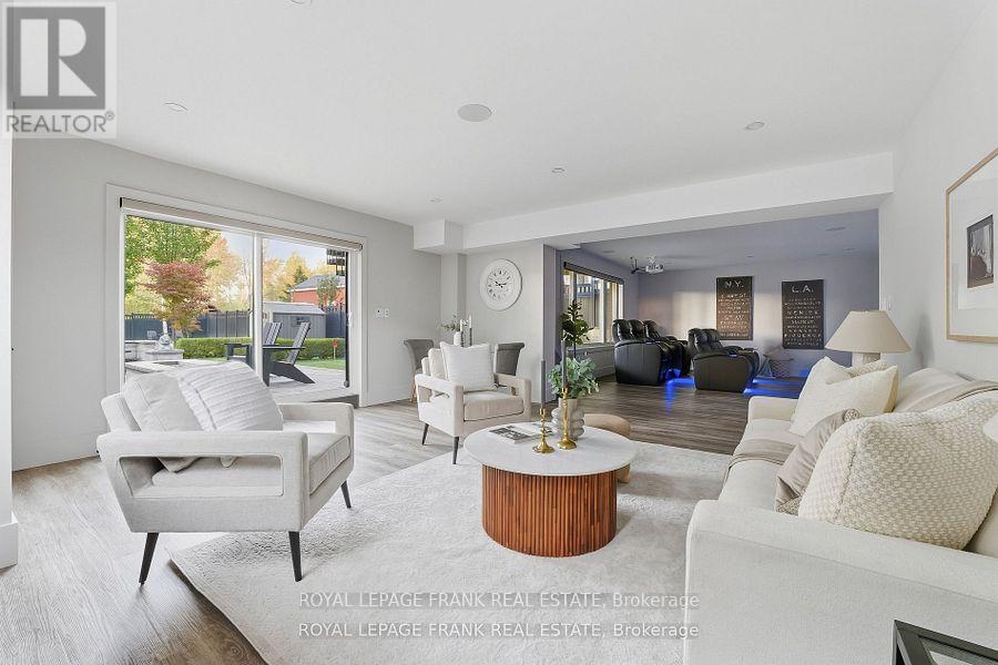 Welcome to an extraordinary custom-built estate offering over 4,000 square feet of luxurious living space on a meticulously landscaped 1.35-acre lot. Originally built in 2018 and enhanced with hundreds of thousands in recent high-end renovations, this home is a flawless blend of sophistication, comfort, and modern design. From the moment you arrive, you'll be captivated by the grand covered porch, new fluted glass entryway, and stunning curb appeal. Inside, soaring vaulted and coffered ceilings, detailed crown moulding, and expansive floor-to-ceiling windows fill the home with light and elegance. The main floor showcases a modern luxury kitchen complete with a massive center island, wall oven, cooktop, pot filler, and coffee bar, all overlooking the serene, private backyard and greenspace beyond. The open-concept living area features a gas fireplace surrounded by custom built-ins and integrated speakers, perfect for entertaining or relaxing. Two main-floor primary sites each offer walk-in closets and spa like en-suites, with the main primary featuring built-in cabinetry, a lavish dressing room, and a magazine-worthy 5-piece ensuite with heated floors and a built-in speaker system. The windows, a four-piece bathroom with heated floors, a theatre room with surround sound and entertainment zones with beautifully landscaped patio featuring a built-in gas fireplace and heated spa pool with waterfall, a putting green, and a grass area enclosed by a high-quality vinyl fence (+/-$70K). Beyond the fenced area is an extra-wide green space with forest. Additional highlights include a luxury laundry/mudroom with quartz counters and custom cabinetry, indoor/outdoor speakers, 200-amp electrical, HRV humidifier, security system with cameras, and a tankless water heater. Conveniently located near all amenities and highways with easy access to Toronto and the airport, this exceptional property offers the perfect balance of luxury, privacy, and convenience. (id:64974)
